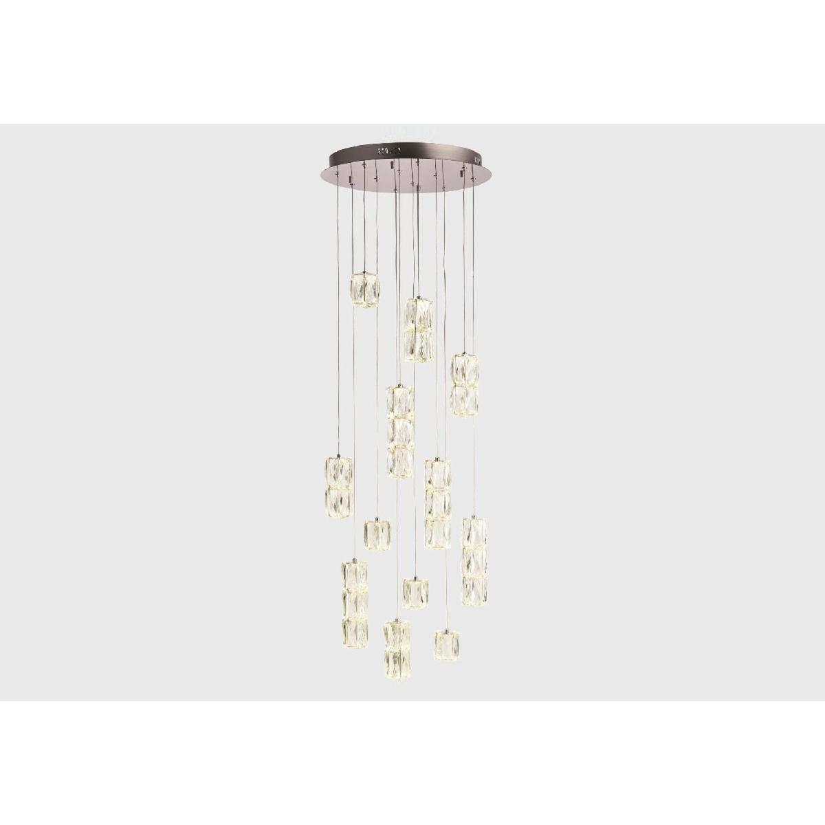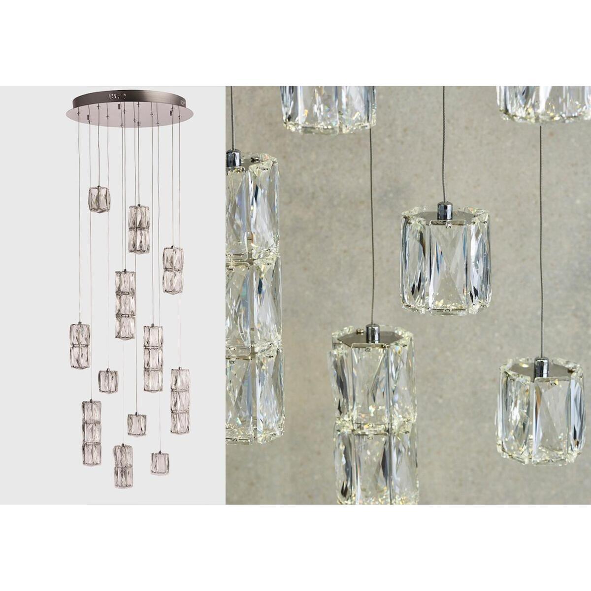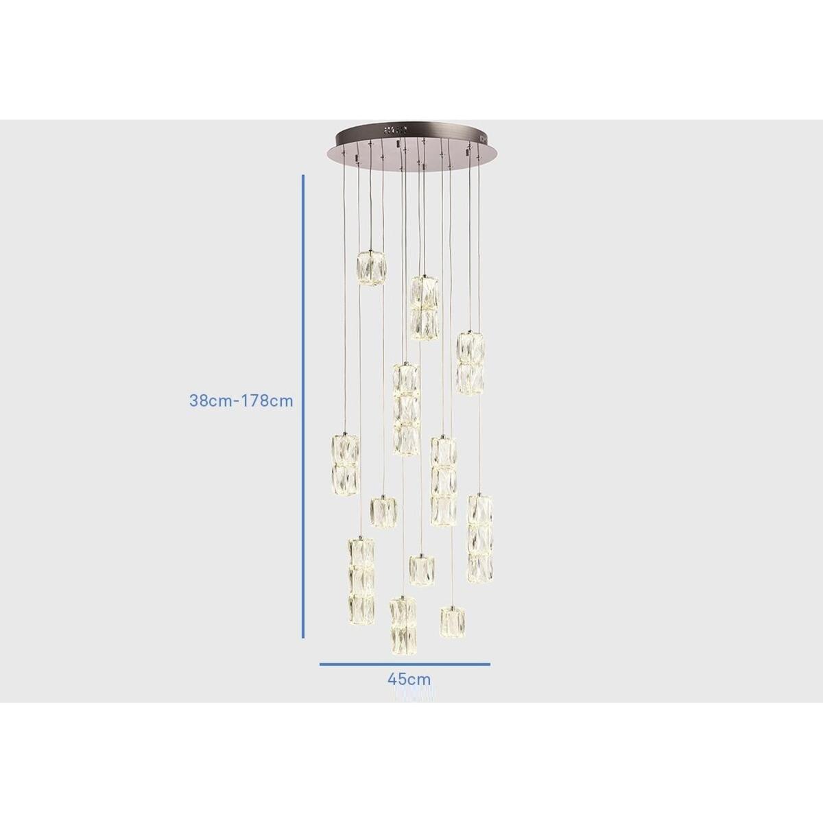Meet our Cova pendant, a design that is all about standing out from the crowd. This statement lighting fitting features an array of faceted glass drops, held by slim metal threads for a sculptural look. The Cova is the key to a luxurious setting - let it float above a spiral staircase or a high-ceiling area for an interior that you could easily see featured in your favourite magazine.