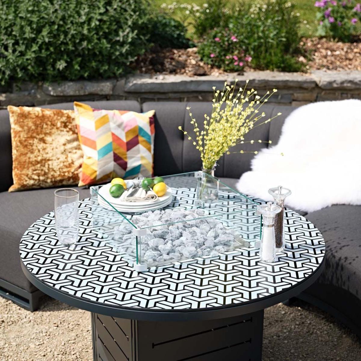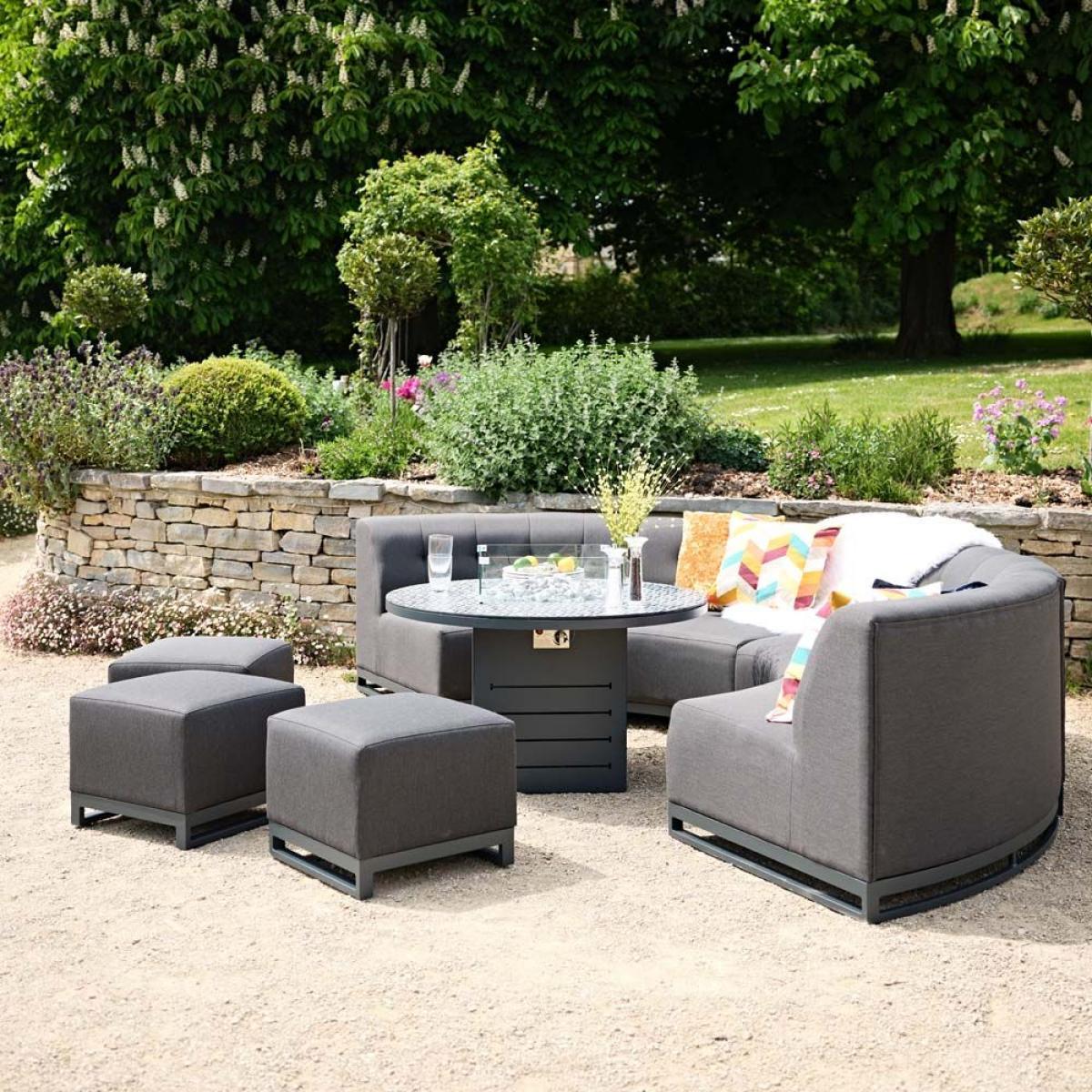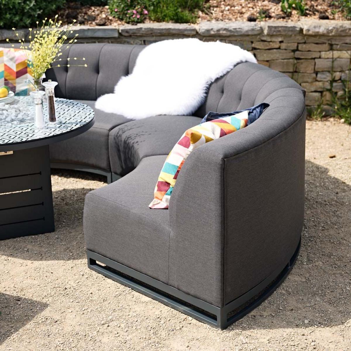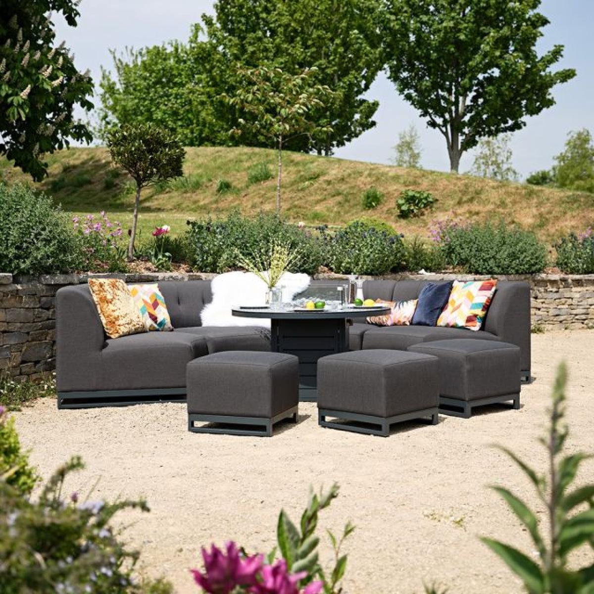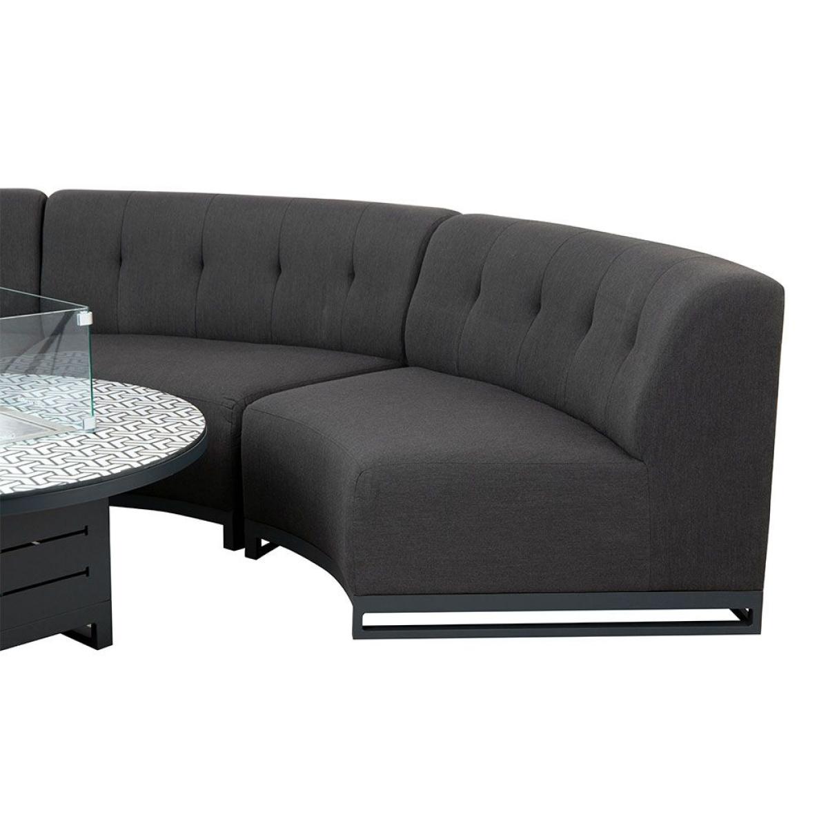 The Cove collection is a premium range that delivers exceptional quality and style. The curved clean lines of the sofas surround a firepit coffee table centrepiece, and finish with three footstools to ensure all your family and friends are catered for. This showstopping set would bring that holiday feel to any home garden and is sure to wow when you entertain. FREE covers worth 245 included Keep your Cove sofa set looking its best with the matching outdoor covers. Dimensions - Curved 2 Seater Section x4: L170cm x W170xm x H77cm Round Coffee Table: L110cm x W110cm x H47cm Fire pit 25cm high Footstool x3: L50cm x W50cm x H43cm Quick dry foam and UV resistant fabric Aluminium rust proof frames5 Year Frame Guarantee Simple self assembly