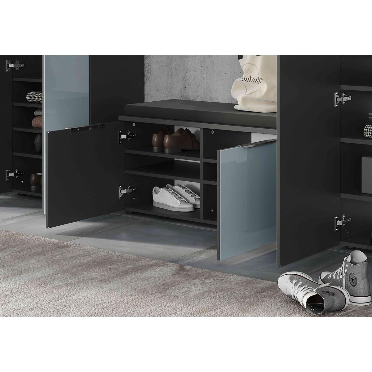 With its sleek opaque glass fronts and on-trend graphite frames, the hallway storage furniture in the Cove range certainly makes an impact – and that’s even before you’ve discovered all of its ingenious design features. Designed to make the most of a smaller hallway, the range has plenty of different hidden storage options for shoes, coats and more, as well as handy bench seating. It’s also built to last with tough and scratch-resistant melamine surfaces that can more than stand up to the rigours of a busy family home. The Cove range is designed and made in Germany, and is a Furniture Village online exclusive. This shoe storage system is also a handy place to tie shoes and kick off boots – especially if you add the coordinating Cove 95 cm bench cushion, available separately. Why you'll love it This shoe bench is both a place to store shoes and a place to put them on. Sleek, ergonomic and space-saving. Silver opaque glass door fronts, graphite frame. Metal edge handles. Smooth and silent soft-close doors. Shock-resistant edges and durable melamine finish. It’s even better with the Cove 95 cm bench cushion, available separately. Made in Germany. A Furniture Village online exclusive. This shoe bench is part of the Cove range. What you need to know Easy self-assembly required, full instructions included. 2 adjustable shelves. Holds up to 12 pairs of shoes. Finished with a tough, scratch-resistant melamine resin coating. Shop the Cove range for a wide choice of modular hallway storage furniture.