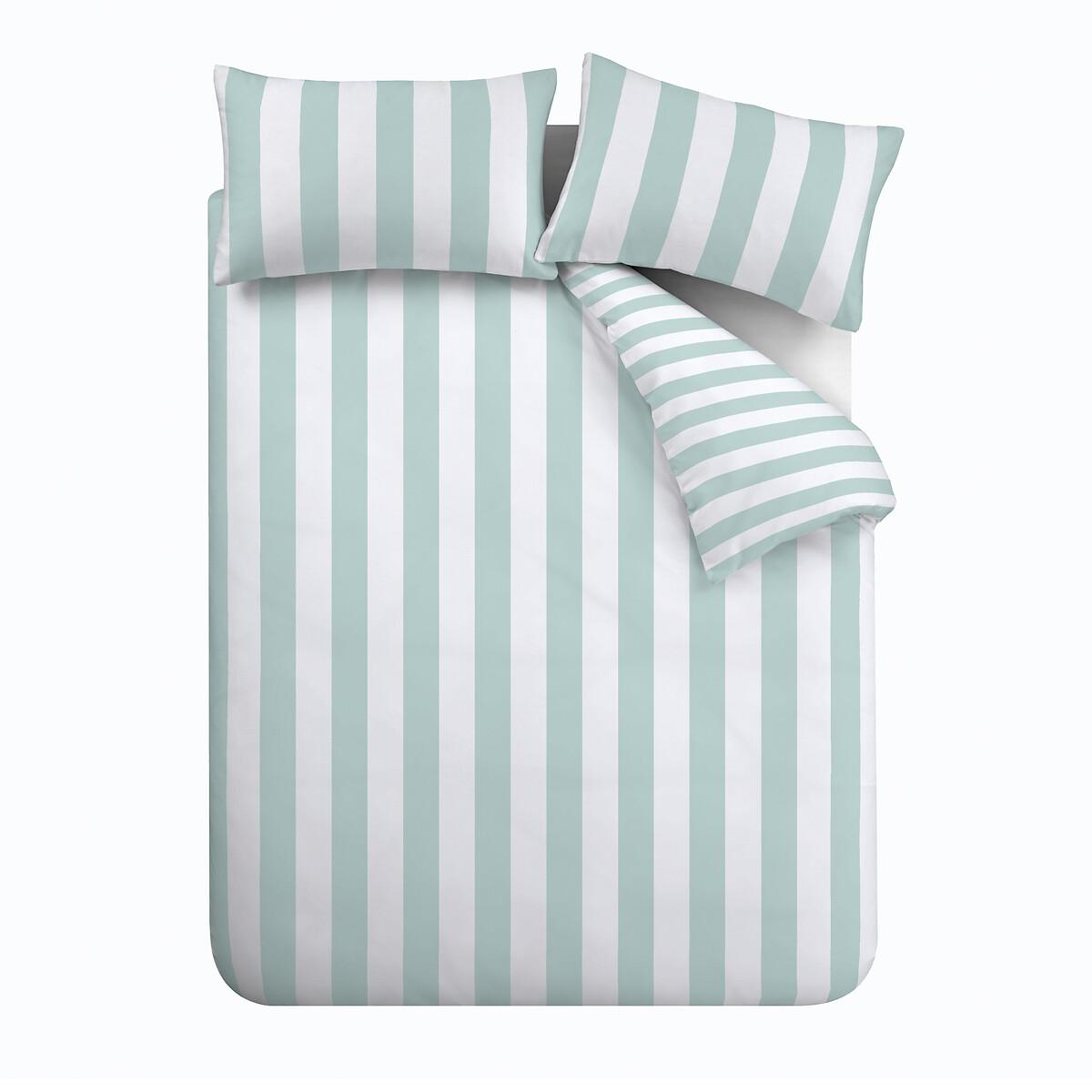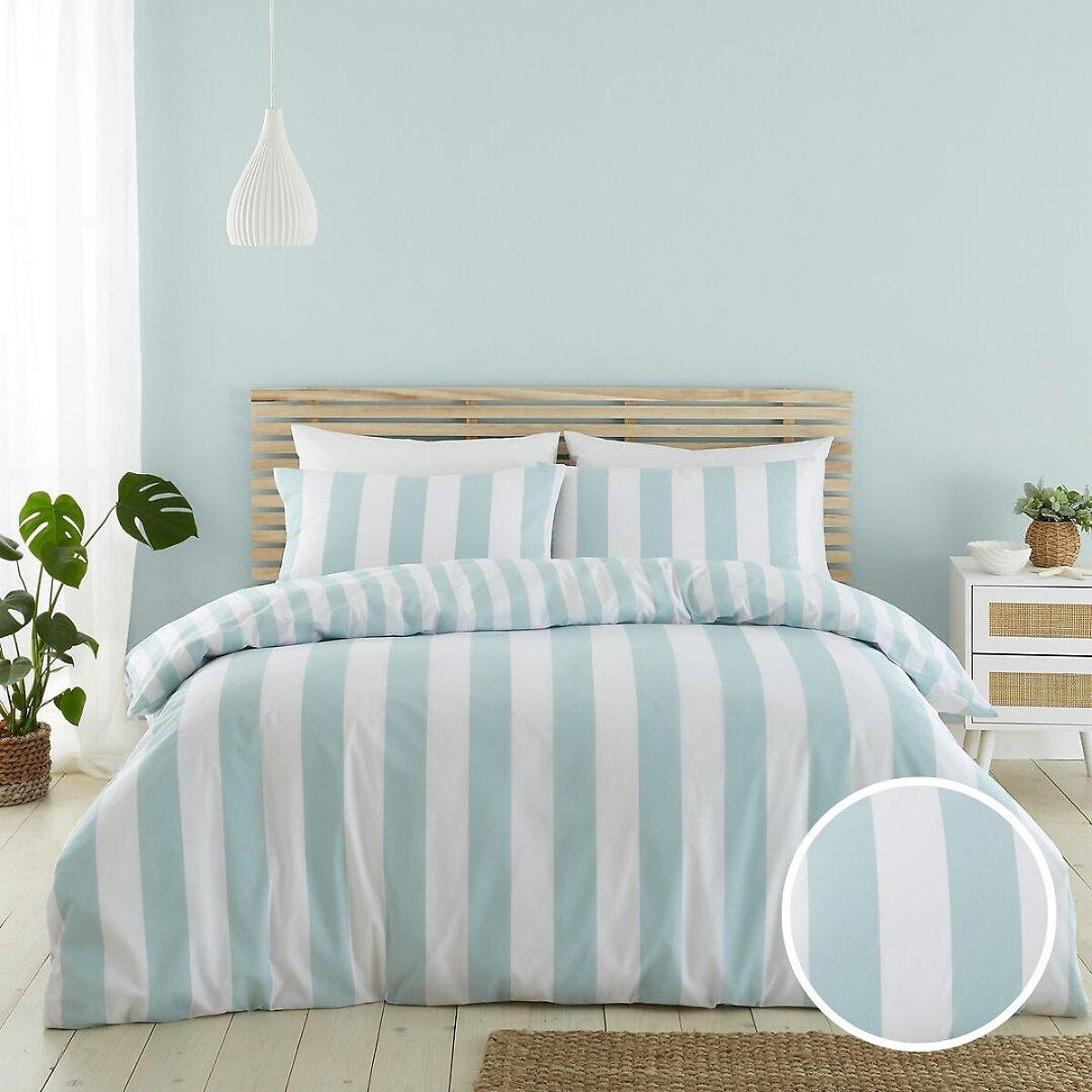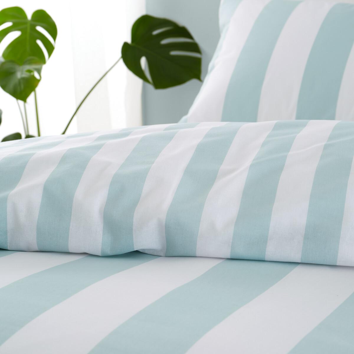 A contemporary twist on classic stripe, wide vertical bands in captivating contrasting blue and white tones transform your bedroom into a serene oasis. Fully reversible with a simple smaller ribbon allows you to effortlessly switch up your style in seconds. Created from easy-care recycled polyester and soft responsibly sourced cotton, blended together for everyday use. Made to quality and human-ecological safety standards, in accordance with MADE IN GREEN by OEKO-TEX®.52% Polyester 48% Cotton. Sizes available: -135x200cm (Single)-200x200cm (Double)-220x230cm (King)This product will be dispatched by one of our trusted suppliers. You’ll be contacted by their selected courier about your delivery. TURNE01