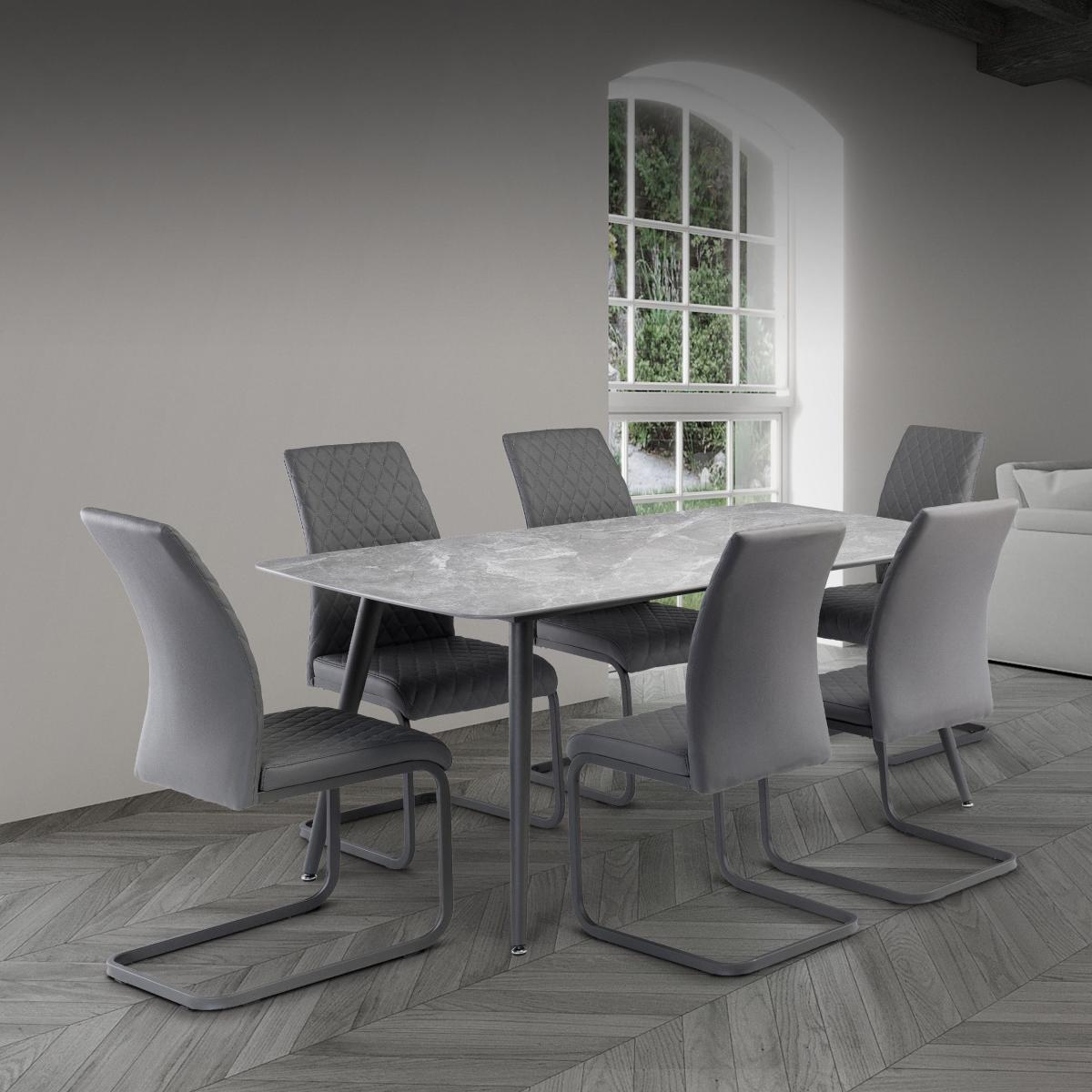 Covelo 6 Seater Rectangular Dining Table, Grey Sintered Stone Grey