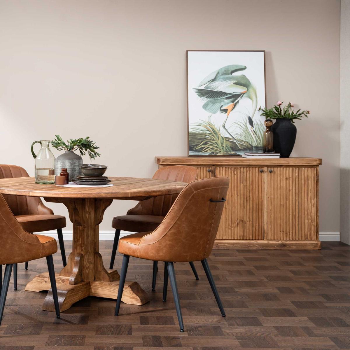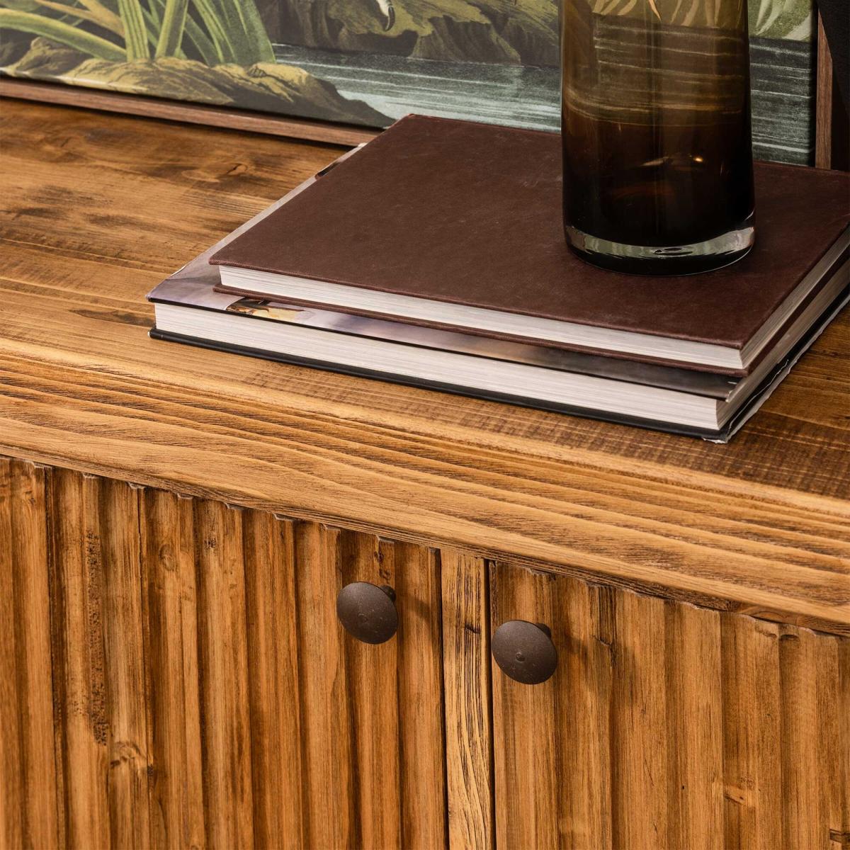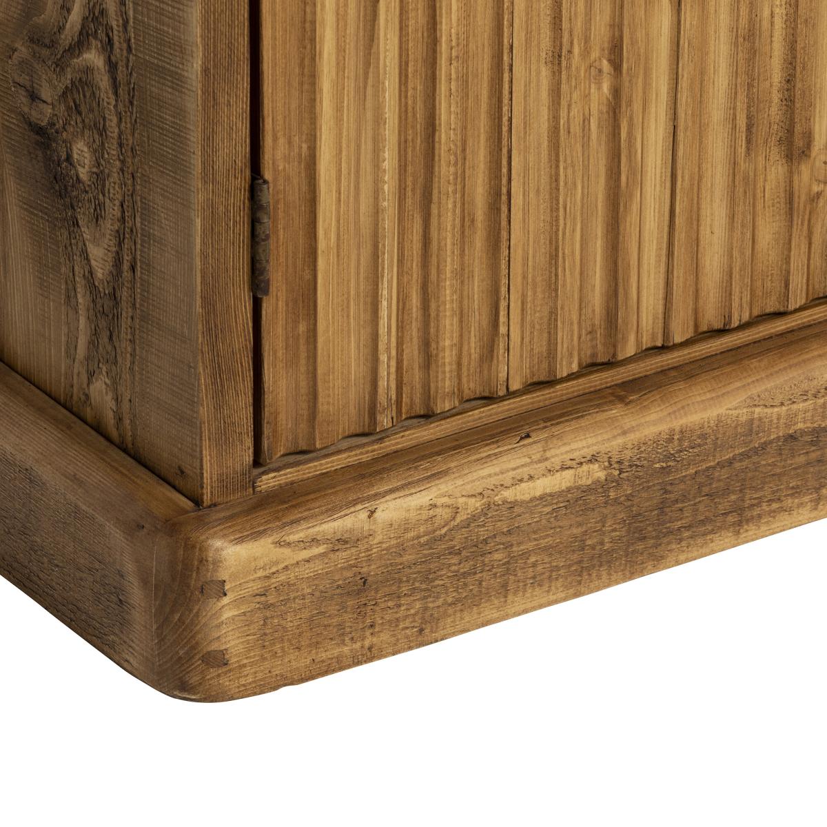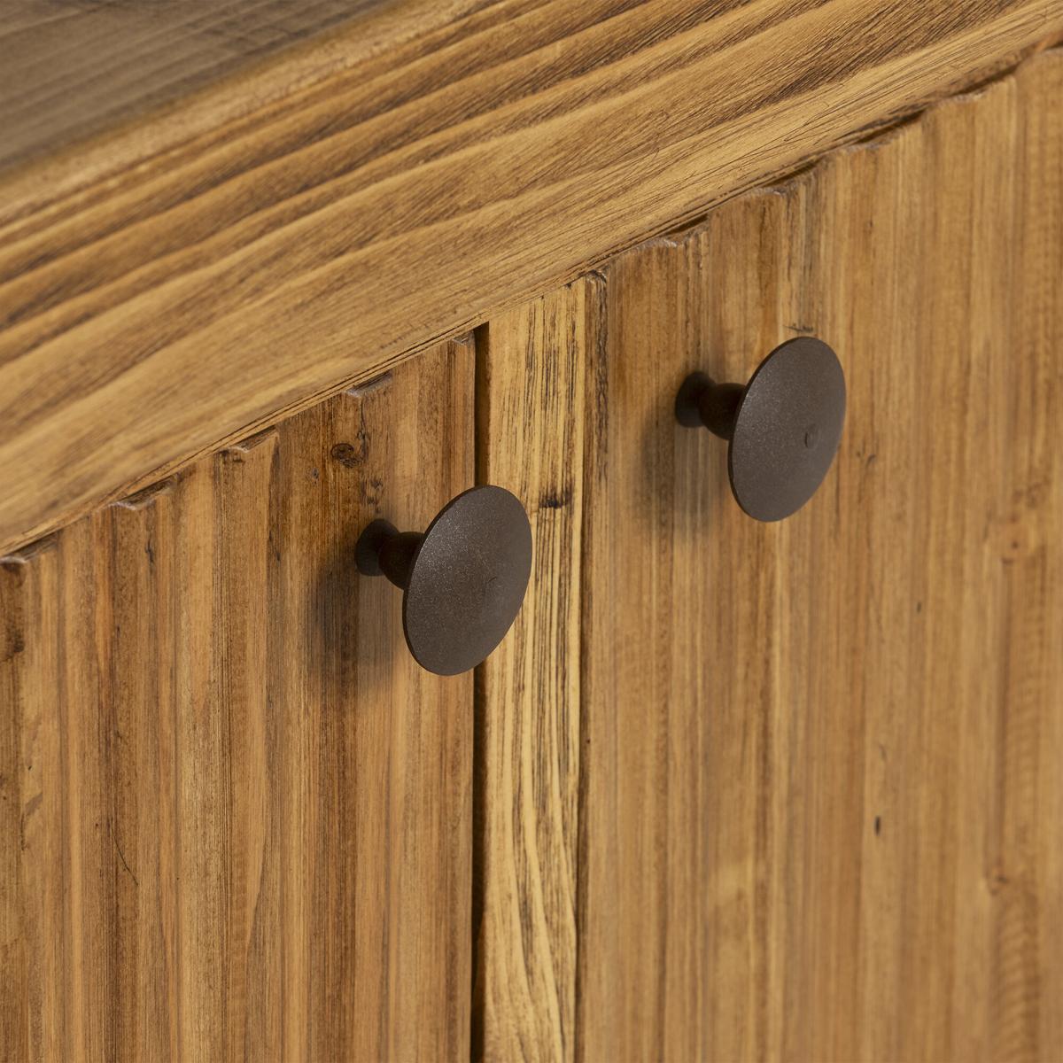 Crafted from the venerable and storied timbers of reclaimed conifer, the Reclaimed Wood 3 Door Sideboard breathes new life into your dining space with rustic splendour. Each aged plank, seasoned by time and nature, showcases the enchanting beauty of repurposed wood, its rich, weathered patina a testament to the journey of years gone by. The sideboardrsquo;s three doors, sturdy yet gracefully designed, open to reveal ample storage, making it as functional as it is beautiful. Every grain and knot whispers a tale of history, lending unique character and charm to this exceptional piece. This sideboard is more than just furniture; it is a tapestry of naturersquo;s artistry and human craftsmanship, a symbol of sustainability, and a warm, rustic embrace for your home