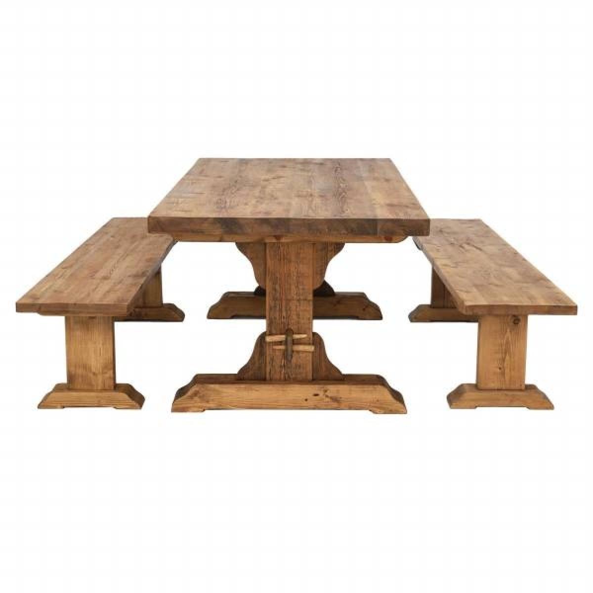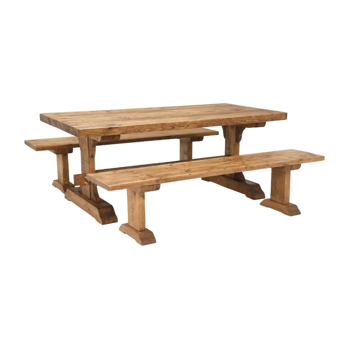 Design. The perfect rustic touch for dining areas and large kitchens, the Covington dining set offers a stunning focal point and a simple way to transform your space. Complete with the Covington Dining Table and 2 Covington Benches, this practical set is full of character, crafted from reclaimed conifer timber, and provides stylish and spacious seating for up to 6. Slipping with ease into both cottage-chic decors and homes with industrial vibes, the Covington’s classic pedestal style base brings a traditional edge to any interior.