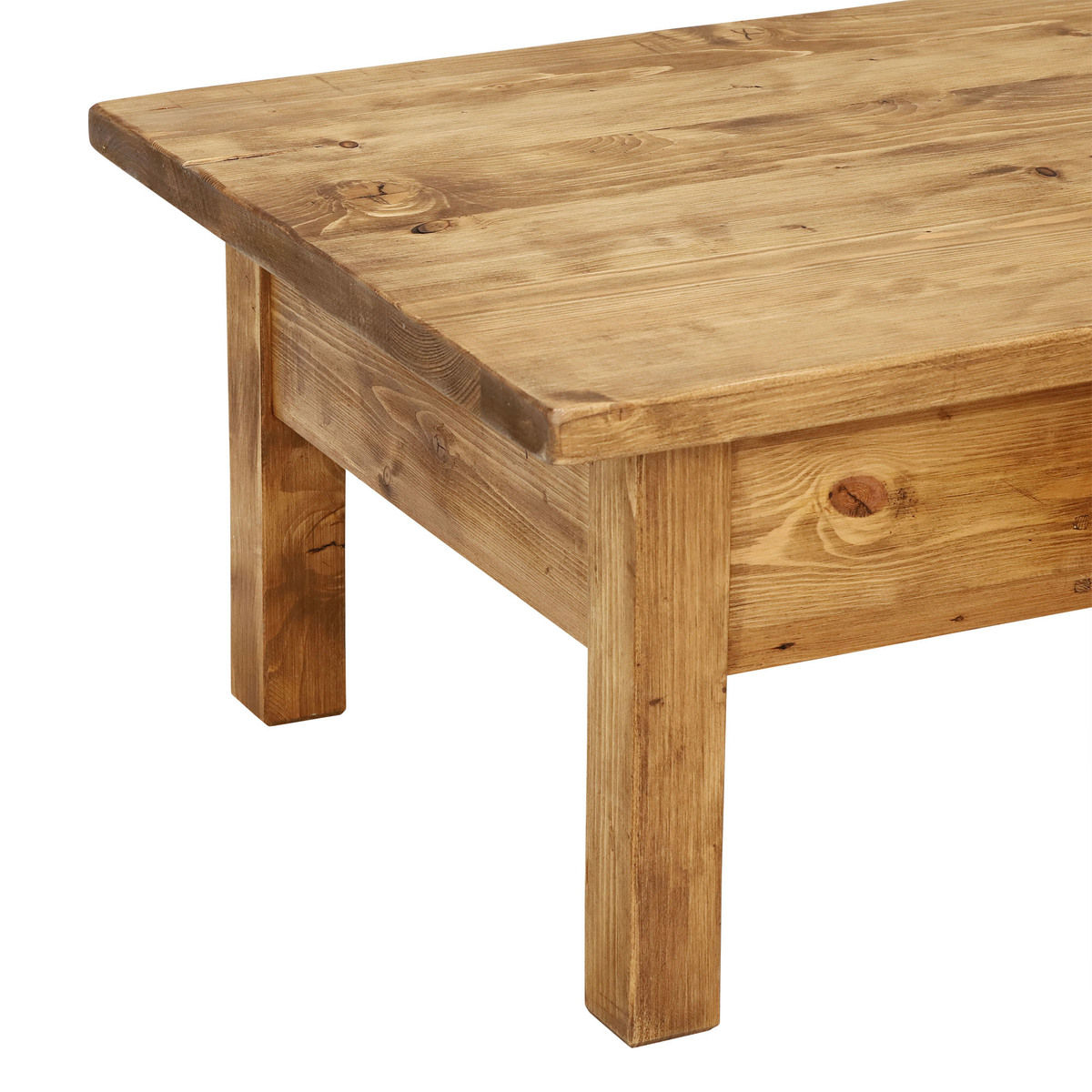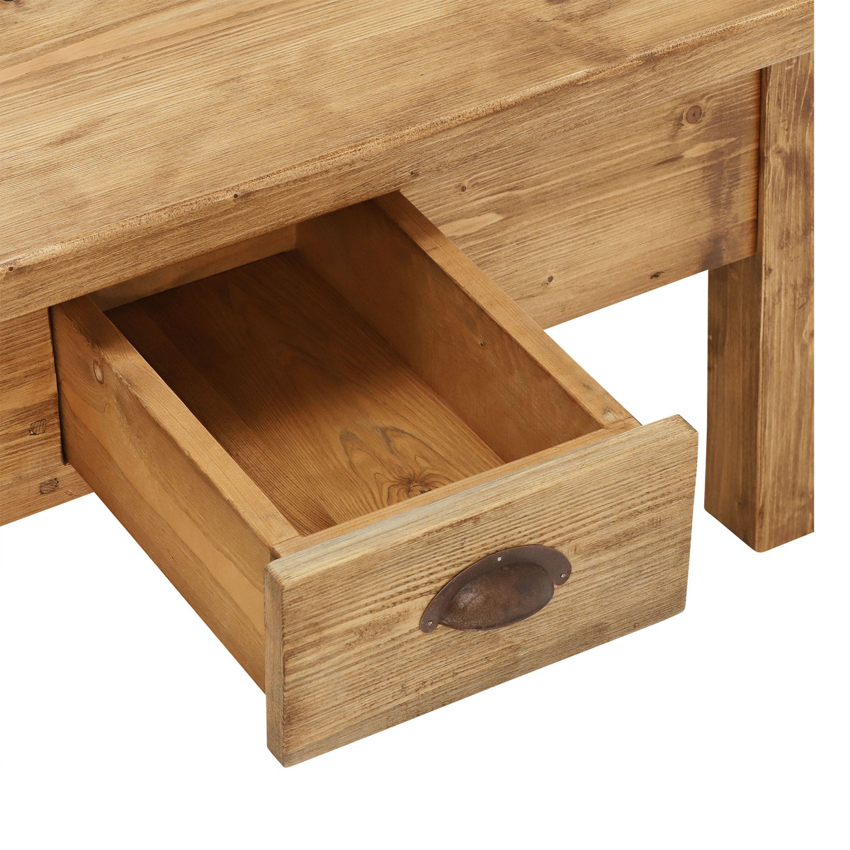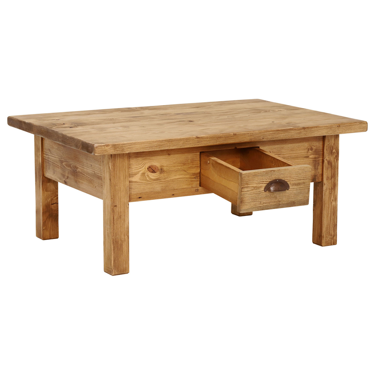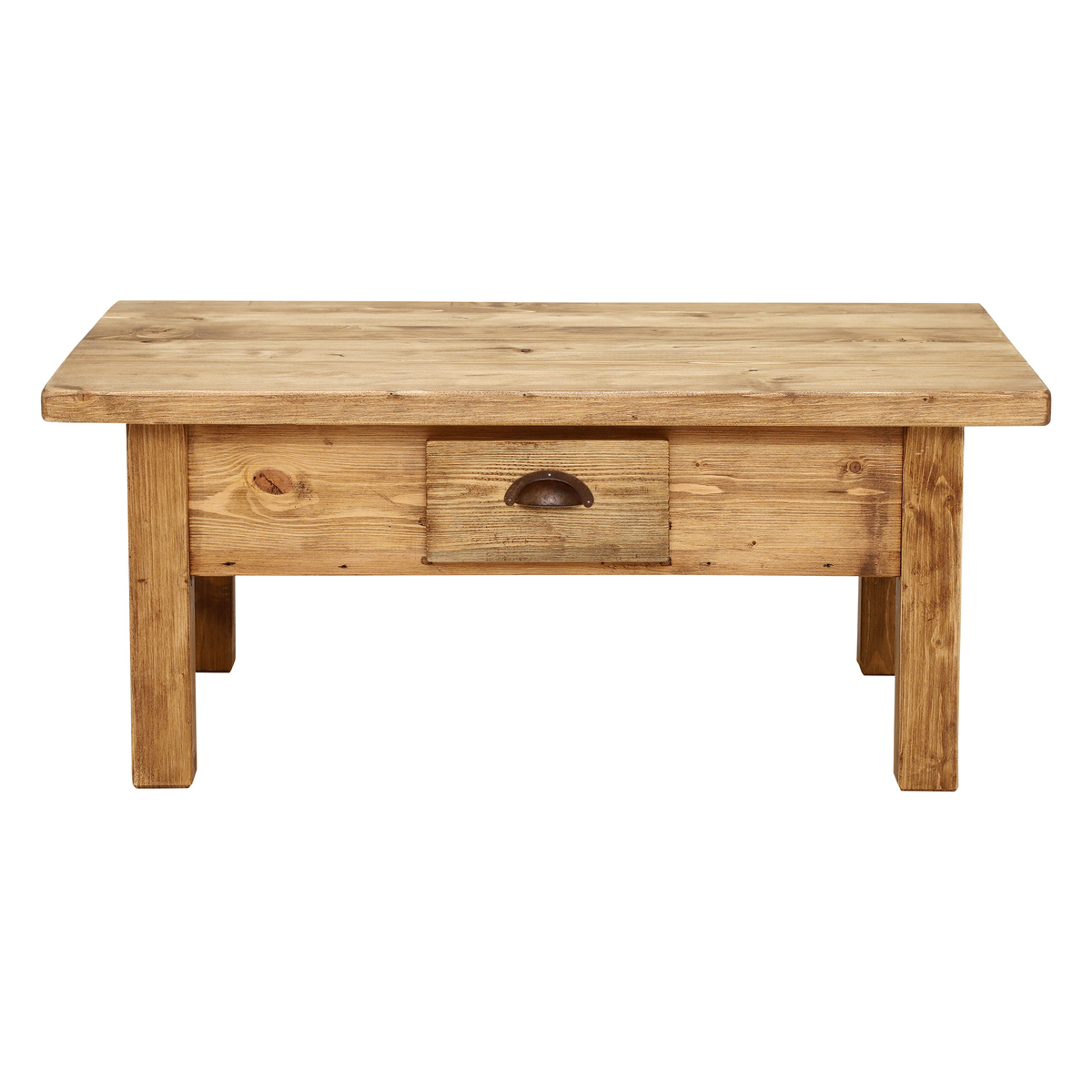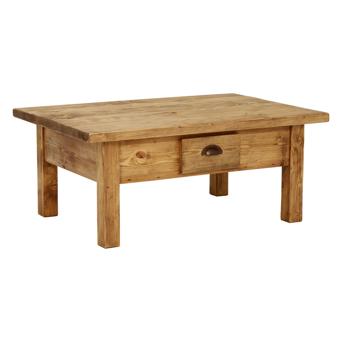 With its chunky shape, natural finish and overhanging top, the Covington reclaimed wood coffee table embodies countryside chic style. Featuring a generously sized surface space, it looks stunning when dressed up with accessories, whilst the handy drawer provides essential storage for remote controls, coasters and more. Beautifully crafted from reclaimed and old conifer timbers, each table displays stunning markings and signs of its past life. Equally at home in traditional, modern or industrial interiors, it brings rustic charm to any living room.