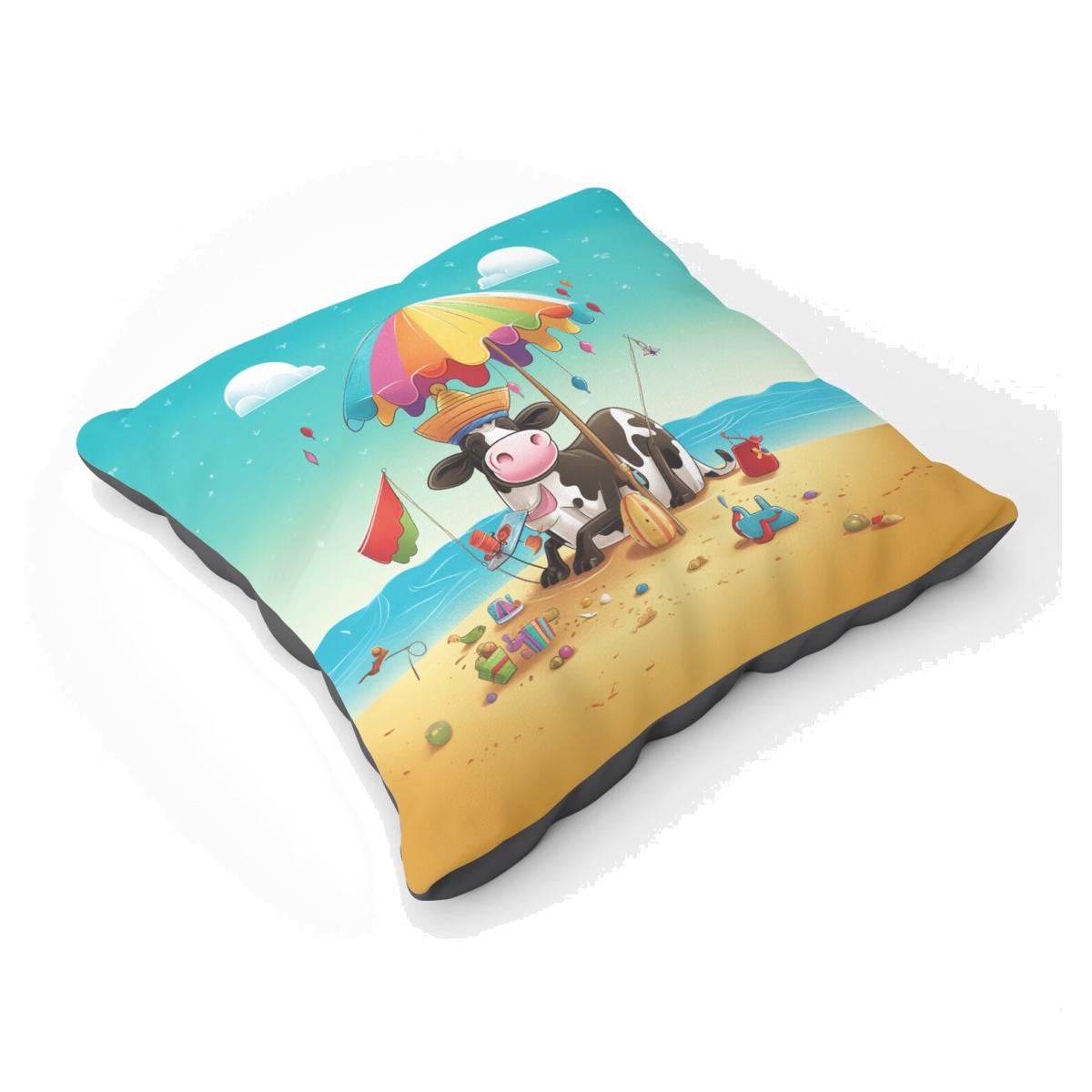 Cow On A Beach Holiday Floor Cushion - Yellow