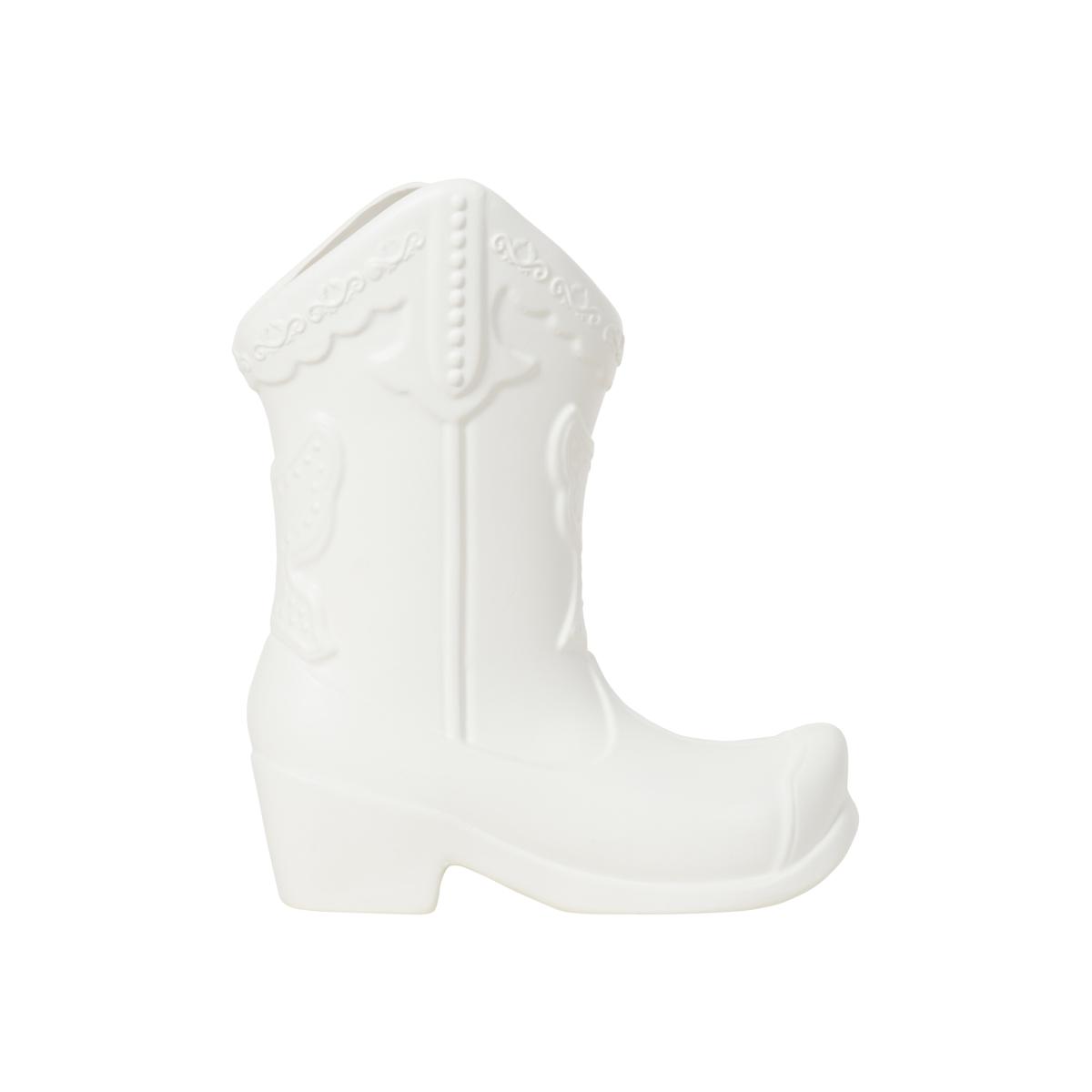 I love this little cowboy boot vase because it introduces a playful, quirky element to any space. Its white finish makes it versatile enough to suit both modern and country-inspired interiors, from kitchens and scandi-style shelves to eclectic living rooms. It’s perfect for styling with fresh or dried flowers - short stems work best to keep the silhouette clear and impactful. For a more curated look, group it alongside other vases and decorative objects to create an eye-catching vignette. Its unexpected shape also makes it a conversation piece, so it works well as a stand-alone accent on a side table or mantel.