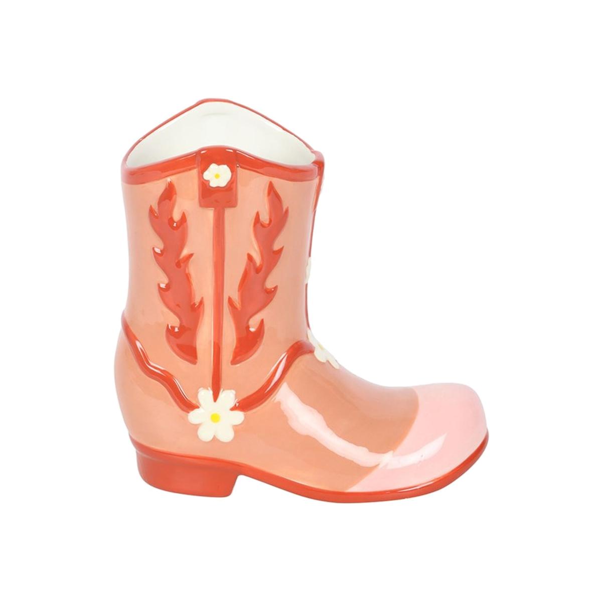 Add some yee-haw energy to your space with this pink cowboy boot flower vase. Ideal for any cowgirl at heart, its a unique accent piece that combines current trends with functionality.