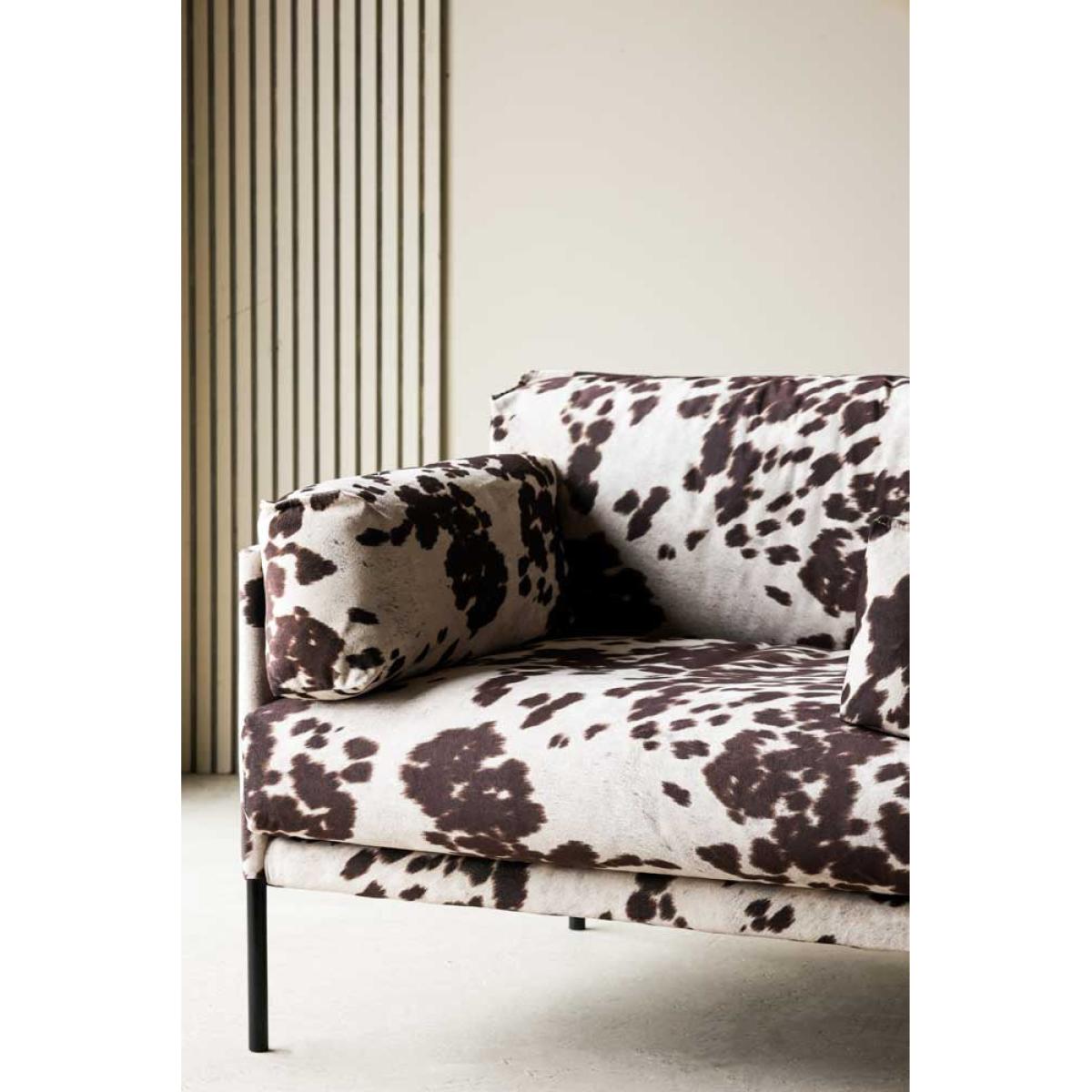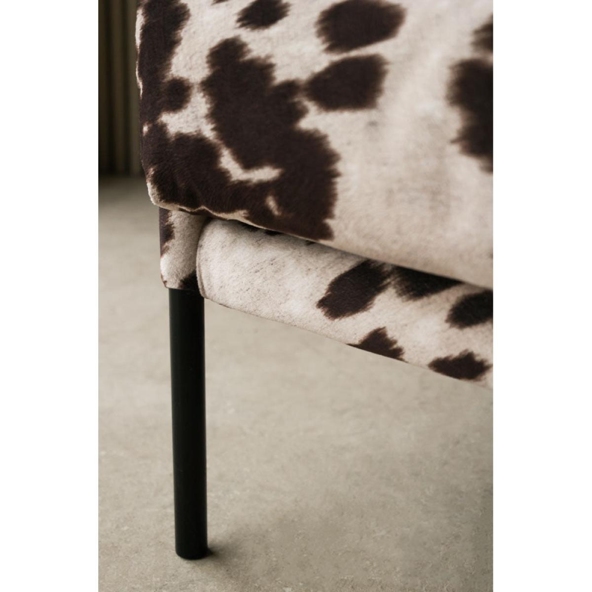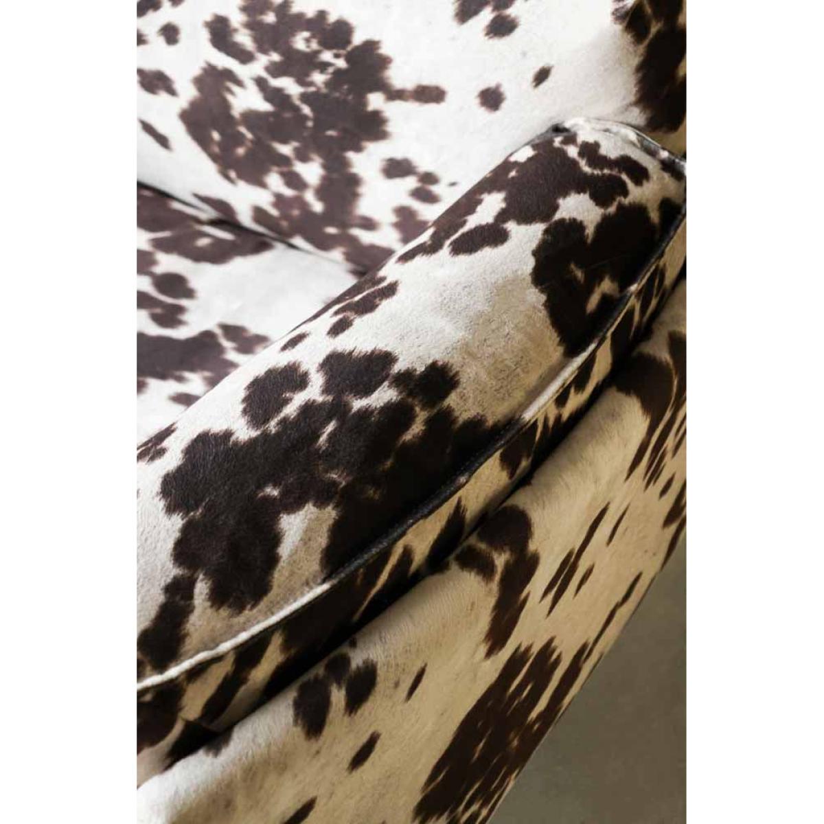 Cosy up in style with the Cowhide Patterned Armchair. Inspired by Western cowboy culture, this fabulous occasional chair reinvents vintage Americana for the modern home. A hero velvet armchair for your living room or bedroom, the clever upholstery fabric creates an incredibly realistic take on natural cowhide. Perfect for embracing saloon style without introducing an animal product to your home, the luxe lounge chair is guaranteed to become the centre of attention in any space. With a low-pile velvet that is soft and cosy, the cowhide pattern occasional chair provides a sumptuous spot for rest and relaxation after a long day. Whether styled in the corner of your bedroom or introduced to your living room as the wow factor feature, this chair is the main event for both maximalist and minimalist spaces. - Brown and white cowhide pattern velvet armchair - Measures:H82cm x W107cm x D94cm - Made from polyester velvet
