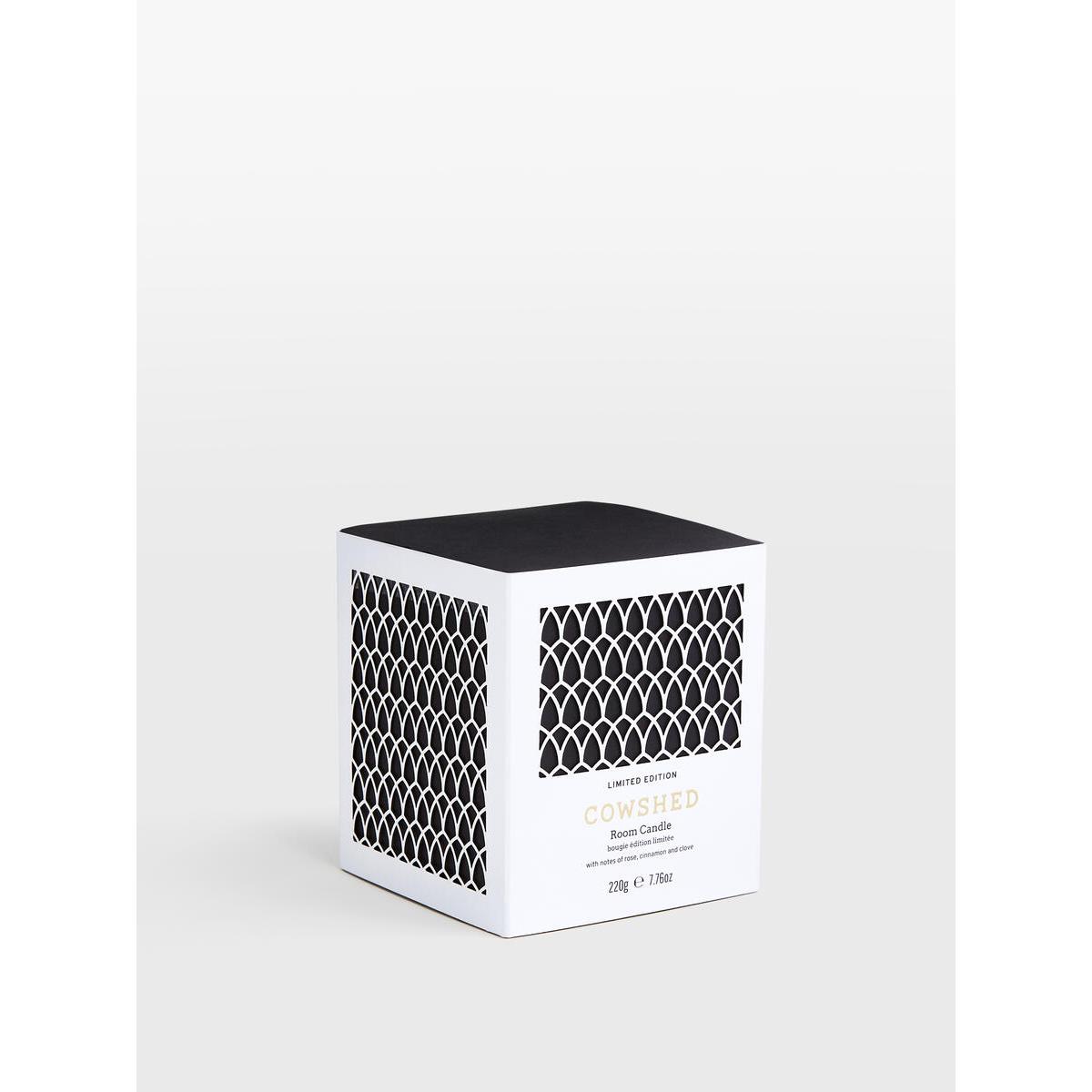 Our limited-edition Winter room candle features our newmonochrome packaging with a laser-cut front and contemporarygeometric pattern. The candle blends Rose, Neroli and Ylang-Ylangessential oils with Cinnamon and Clove to fill the air with awarming floral fragrance - an easy way to create a cosysetting. Winter room candle 220g. Approximate burn time: 40 to 45 hours. Limited-edition packaging. Rose, Neroli and Ylang-Ylang essential oils. 100% natural soy wax and Egyptian cotton wick. Free from GMM, pesticides, and herbicides. Made in England. Suitable for vegetarians. Used in every Soho House and Cowshed spa.
