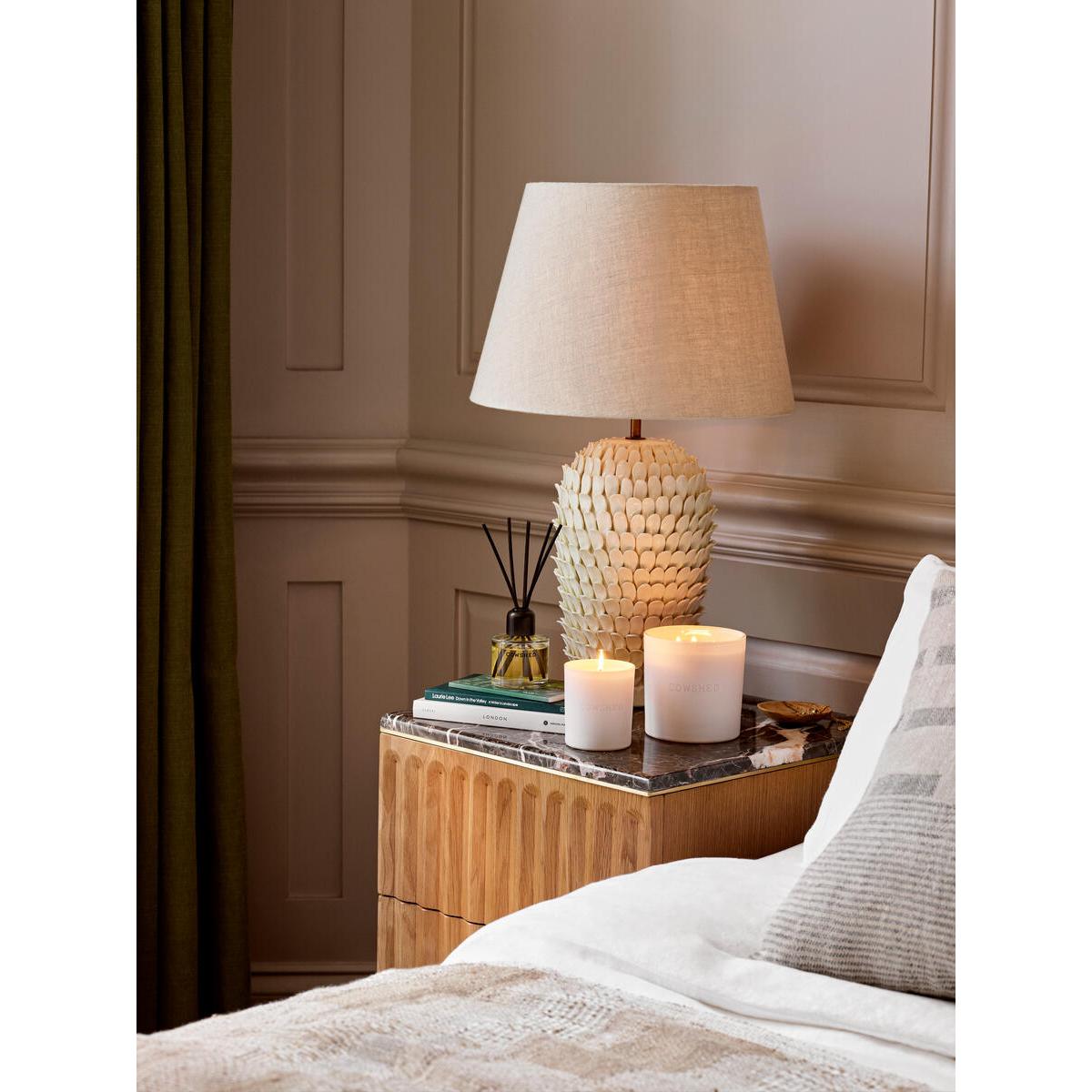 I love this candle for adding a sense of calm and warmth to a variety of interiors. Its minimalist design makes it versatile, working well in both contemporary and more traditional spaces. I particularly recommend placing it on a neutral coffee table or open shelving to create a relaxed, inviting atmosphere. For practical styling, group it with other natural textures like woven baskets or vintage ceramics to enhance its soothing vibe. The large size also makes it ideal for creating a cosy ambiance in living rooms or bedrooms-just ensure it’s placed on a heat-resistant surface and away from direct drafts to get the most from its calming scent and glow.