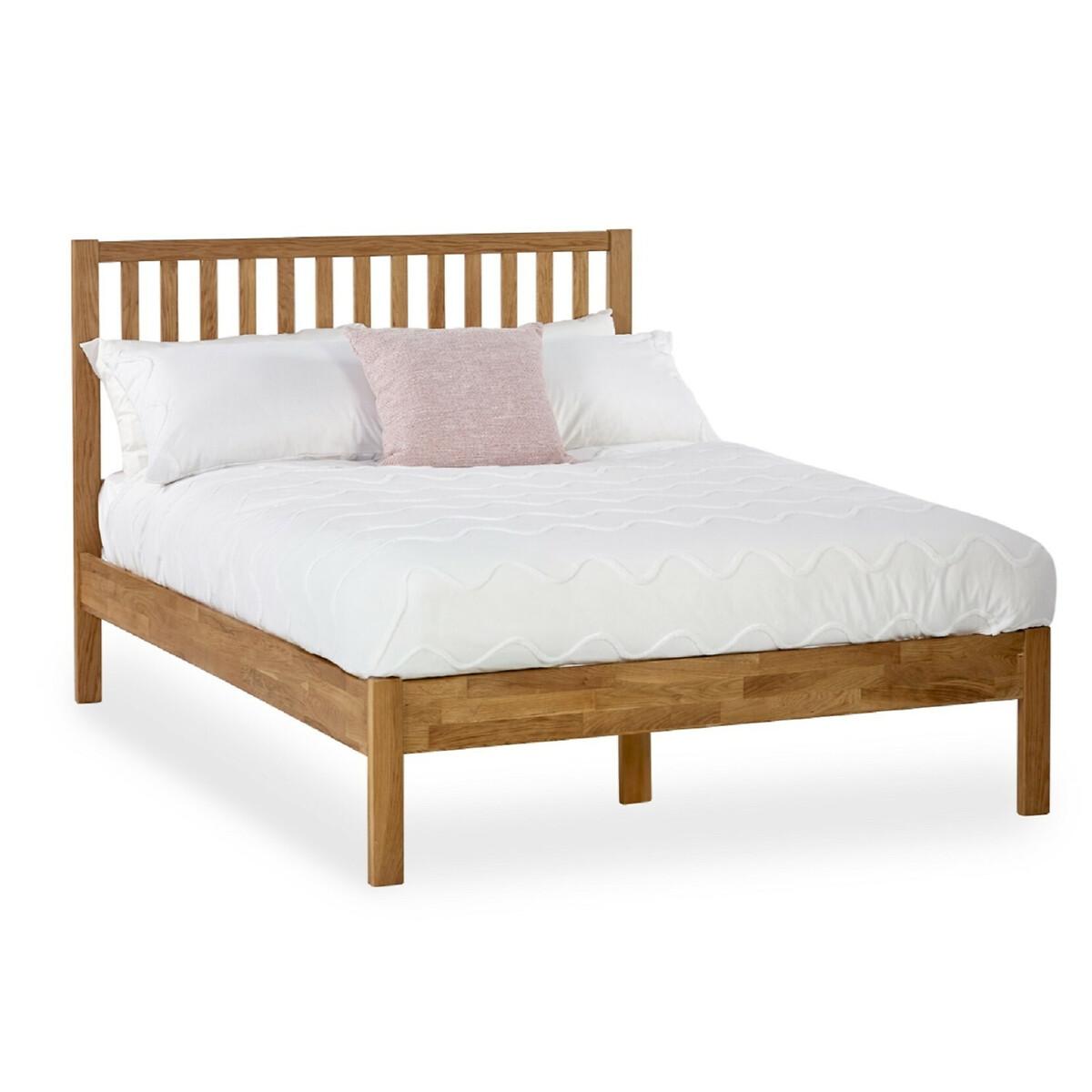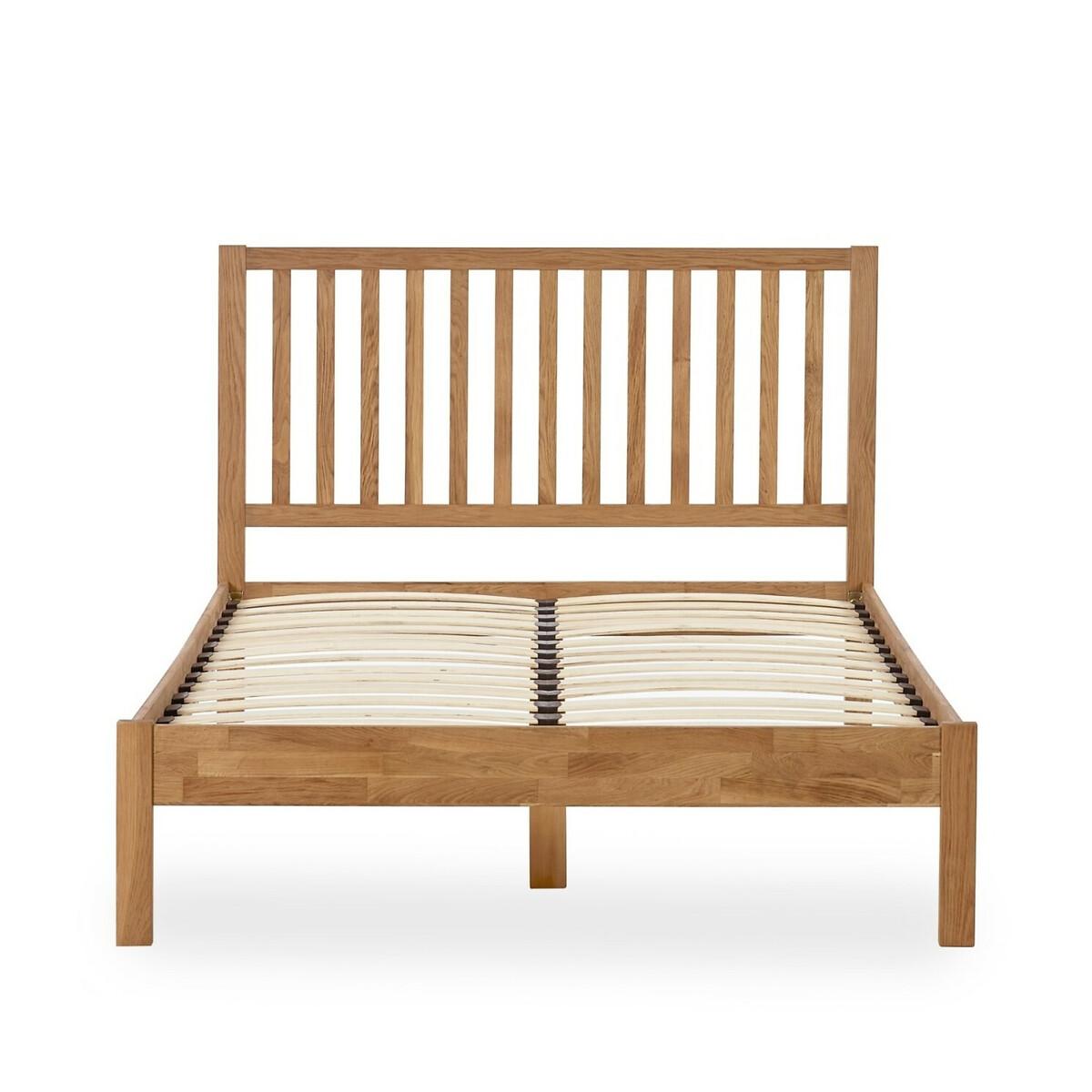 Elevate your bedroom with the Coxhead Bed, seamlessly blending comfort and style. Crafted from solid oak with a warm finish, this bed features a stunning paneled oak headboard that adds an element of elegance and texture to your space. Its clean, simple lines offer versatility, allowing it to harmonize beautifully with both modern and traditional decor. Designed for durability and long-lasting comfort, assembly is quick and straightforward, so you can enjoy your new bed with ease. Product details• Solid oak construction• Panelled headboard• Full assembly required• 1 Year manufacturers warranty. Product Composition - 99% wood, 1% metal. Product Dimensions Double 145 cm x 196 cm x 110 cm , Weight - 31.4 KGKing 160 cm x205 cm x110 cm , Weight - 34.3 KGPackaged Dimensions. Double:Package Dimensions - 153 cm x 119 cm x 9 cm, Weight 17.8 kg. King:Package Dimensions - 190 cm x 167 cm x 9 cm, Weight 21.5 kg. This product will be dispatched by one of our trusted suppliers. You’ll be contacted by their selected courier about your delivery. Please note: this product cannot be delivered to all Offshore Islands, Northern Ireland or Republic of Ireland.