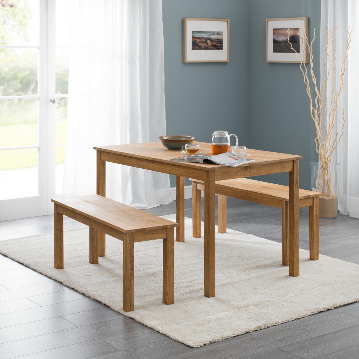 The Coxmoor Oak Bench is crafted from Solid White Oak with a durable oiled finish. Bringing a classic and timeless design into your home, suitable for a wide variety of decor. Ideal for use with the Julian Bowen Coxmoor Rectangular Dining Table and co-ordinating Coxmoor Collection.