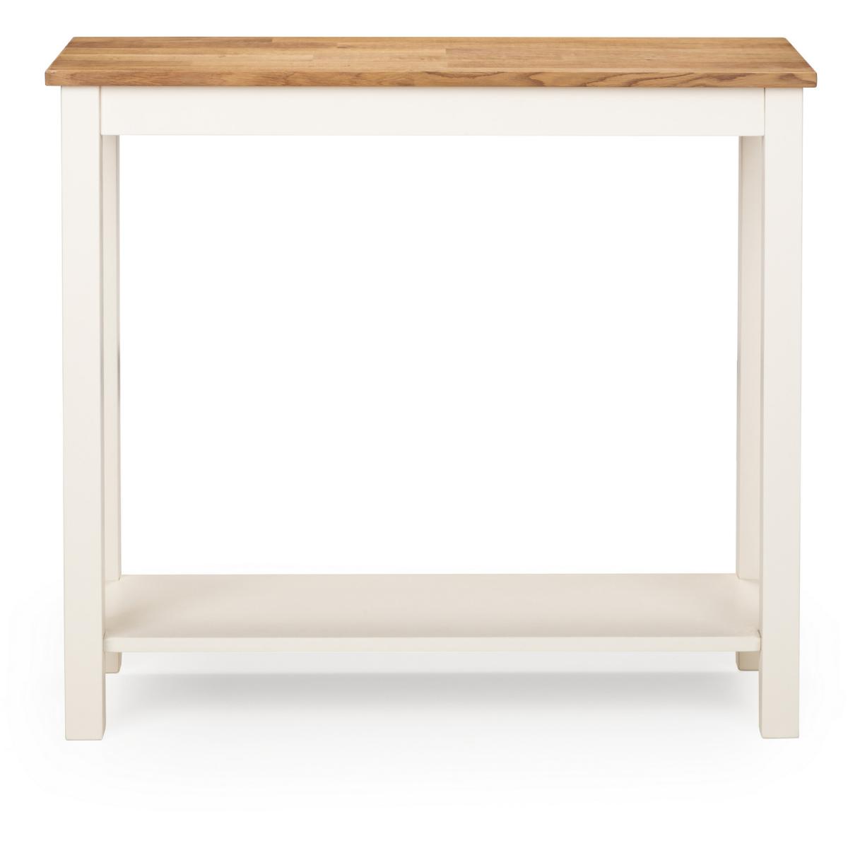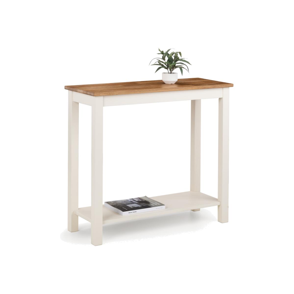 I’m a big fan of the Coxmoor console for its clean lines and the timeless contrast between the ivory base and natural oak top. Its narrow profile makes it ideal for hallways, behind sofas or even as a slim dressing table in a bedroom, and it slots effortlessly into modern farmhouse, coastal or Scandi-inspired schemes. Keep styling simple: a round mirror or set of framed prints above helps define the space, while a pair of table lamps or sculptural vases add height and interest. Use the lower shelf for woven baskets, a stack of coffee-table books or a couple of storage boxes to keep clutter at bay.