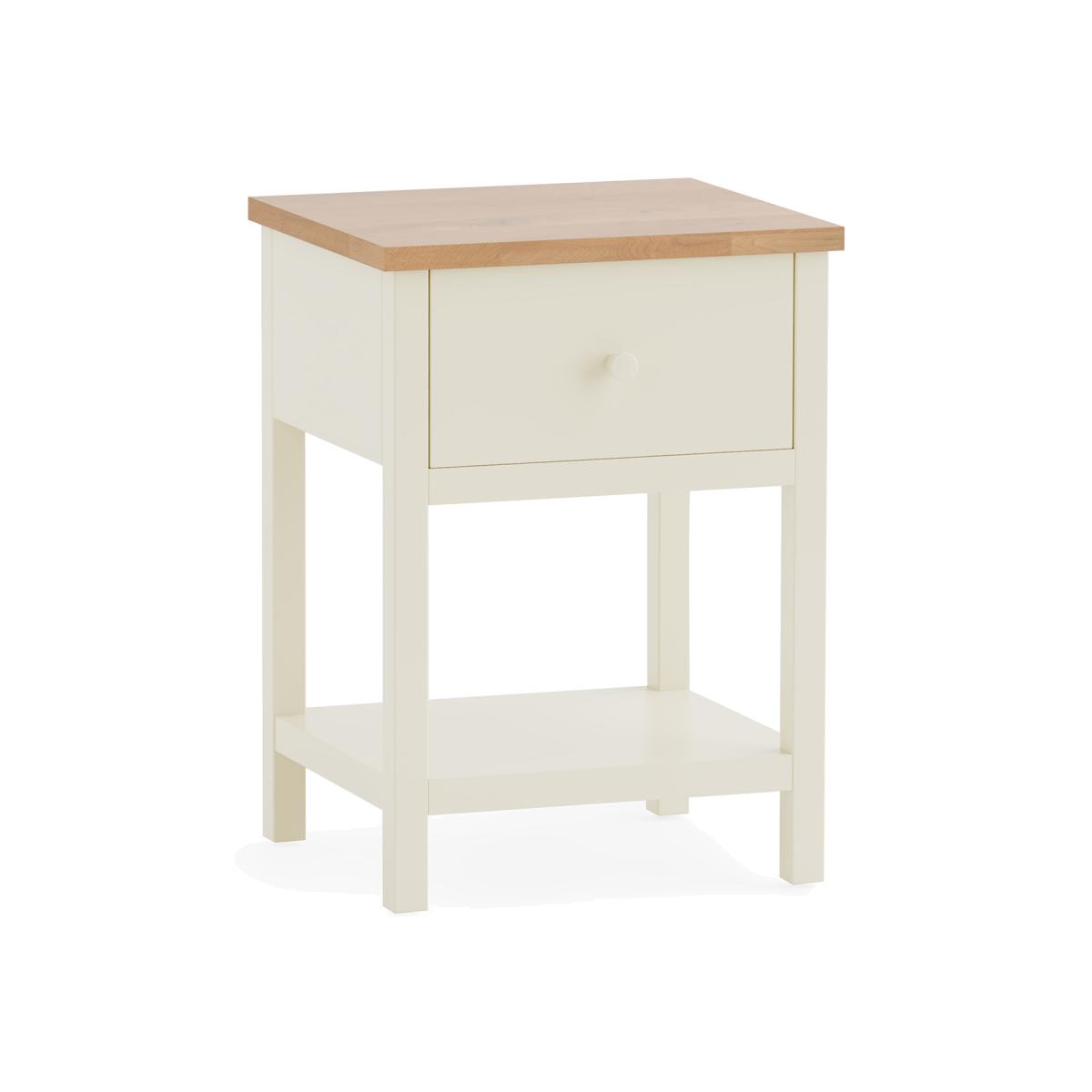 Elevate your bedroom with the Coxmoor 1 Drawer Bedside in a beautiful oak finish, blending timeless style with practicality. The compact design features a single drawer with a knob handle for keeping essentials close at hand, along with an open shelf for additional storage or display. The warm oak tones paired with the soft ivory frame create a versatile piece that complements a variety of dcor styles. Whether its for your nighttime reads or bedside accessories, this bedside table offers both elegance and convenience in one sleek piece. Minimal assembly required for quick setup.