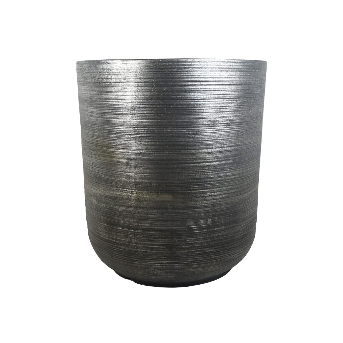 Coya Silver Ridged Planter Large Composite Plant Pot - Grey