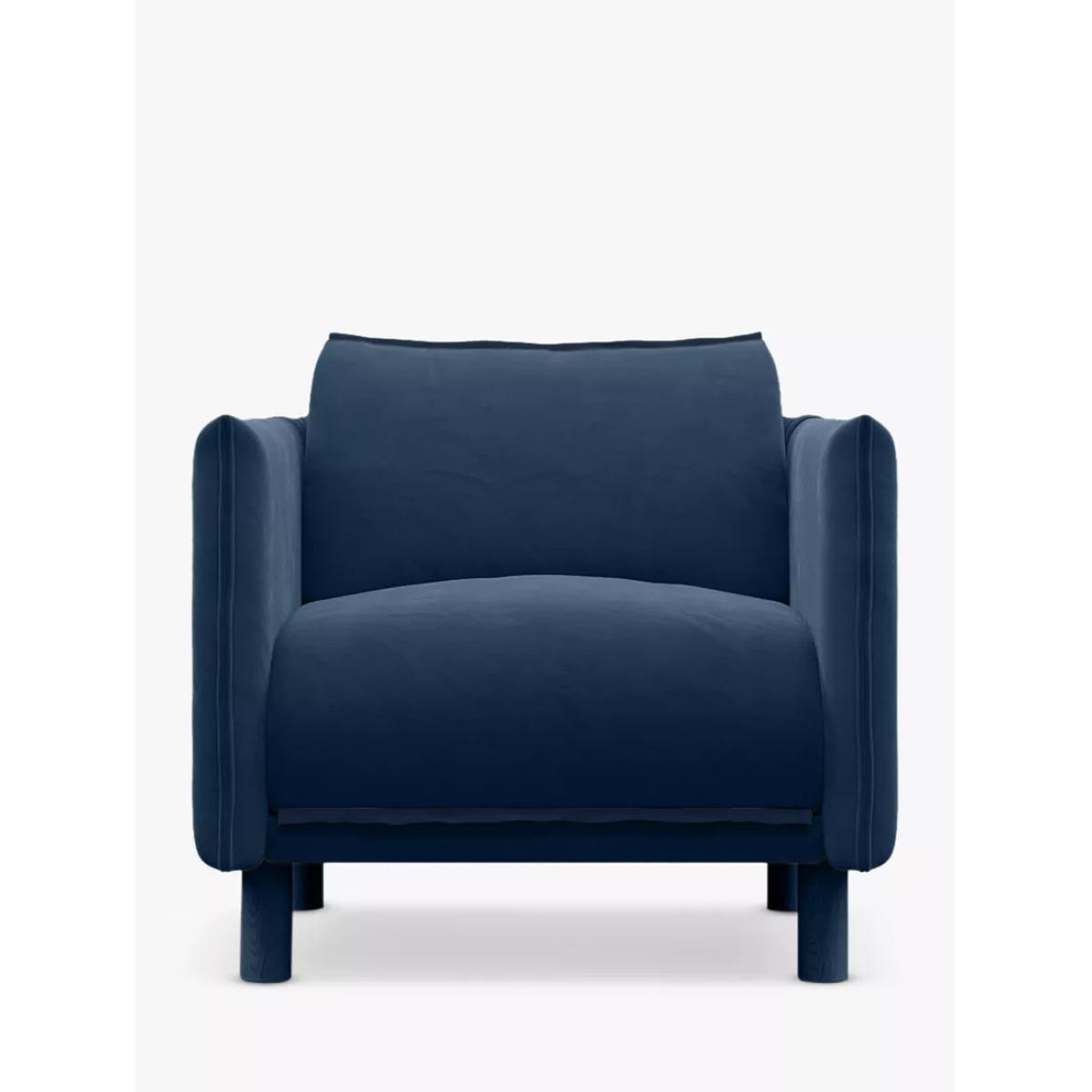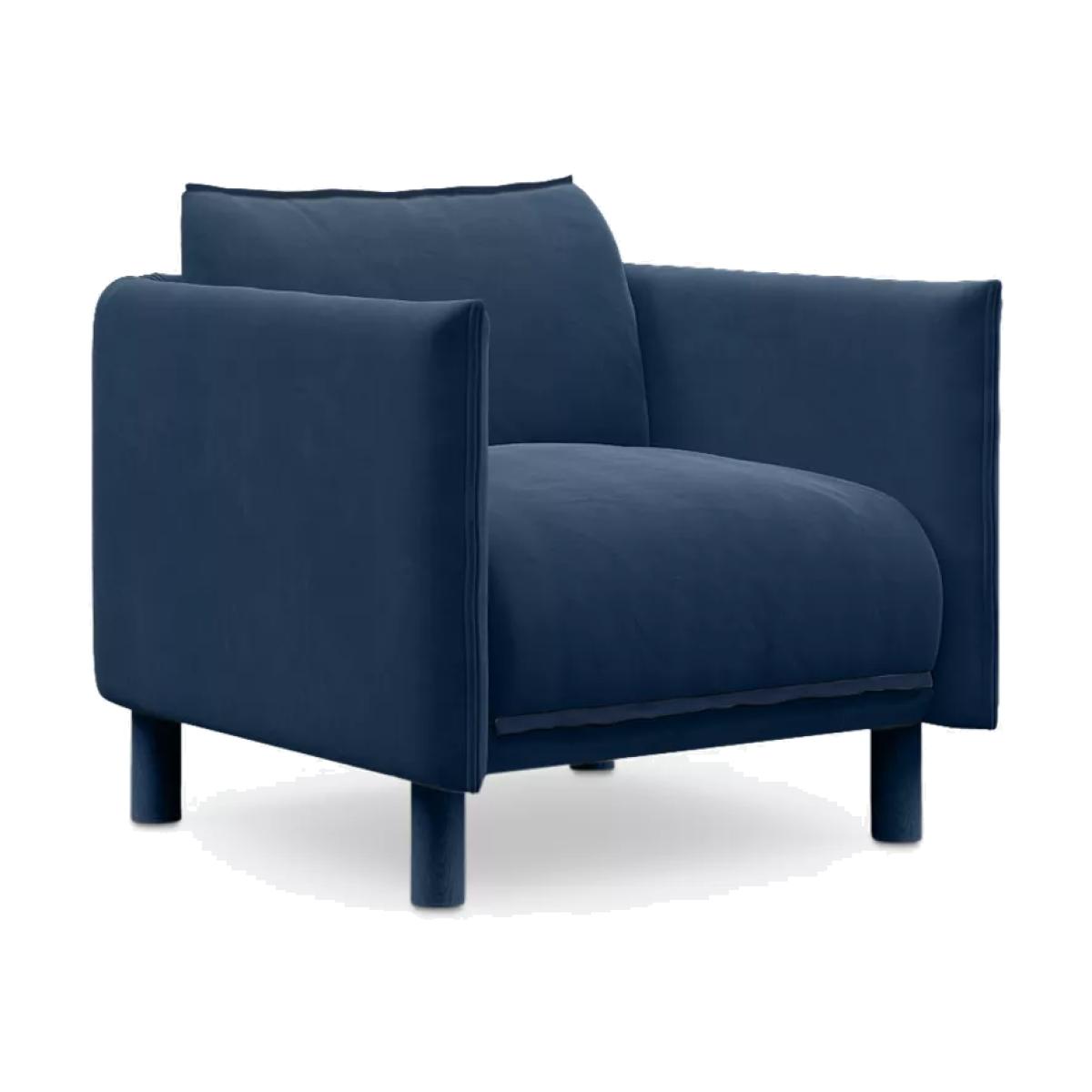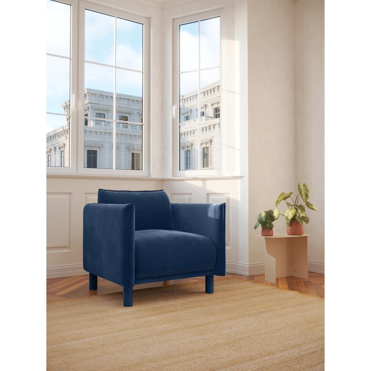 I especially rate the Cozmo chair for its clean lines and plush velvet upholstery - it slots straight into contemporary or mid-century inspired rooms and makes a snug reading corner feel instantly pulled together. The slender cylindrical legs and squared arms give it a modern, uncluttered look, while the generous seat promises real comfort. Styling tip: team it with a slim metal or marble side table and a minimal floor lamp, then layer a textured throw or contrasting cushion to break up the solid colour. Warm neutrals - think linen, ochre or soft greys - balance the deep blue, or pair it with a monochrome scheme for a more graphic finish.