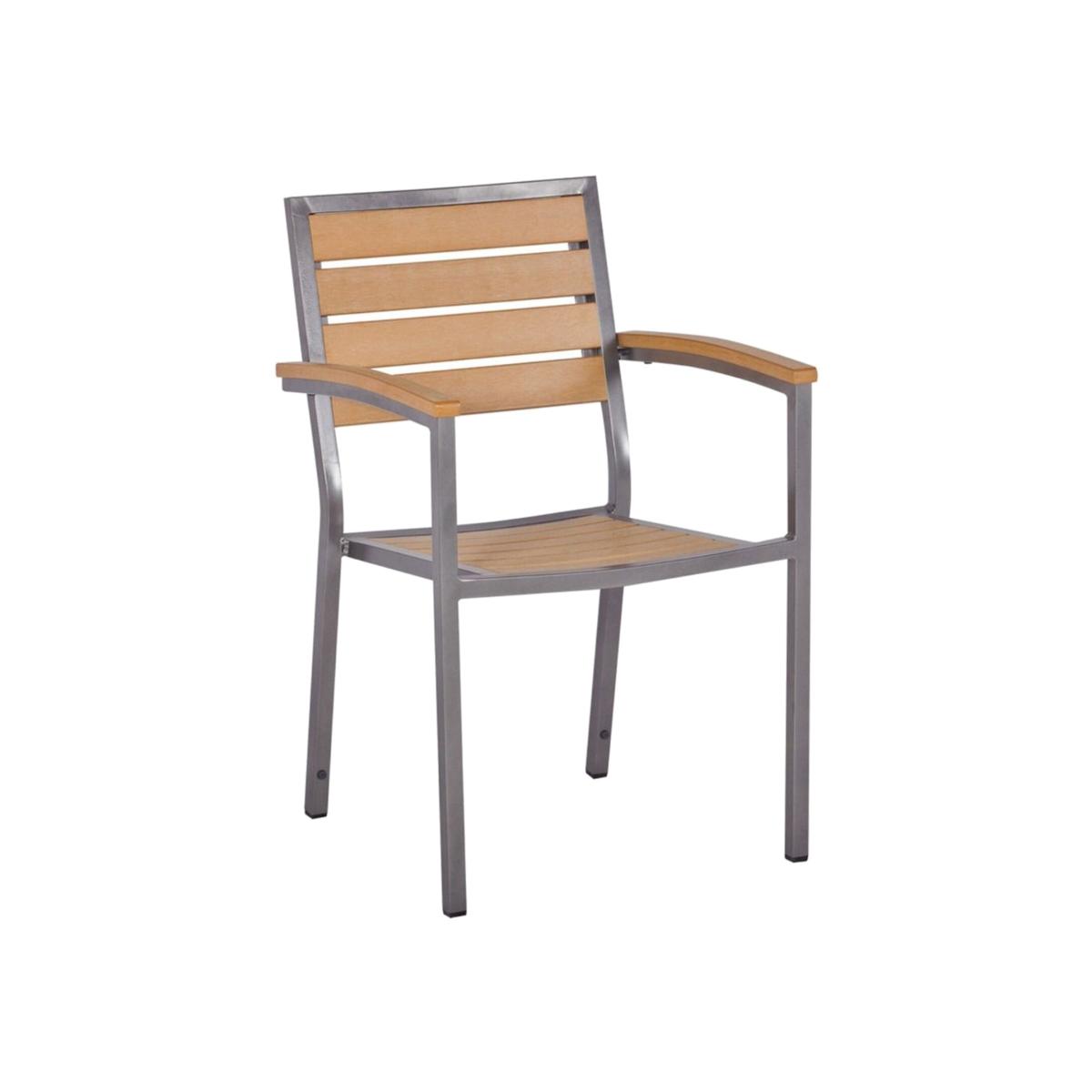 Designed for both style and sustainability, our Syn-Teak Dining Chair offers the perfect blend of natural aesthetics and modern resilience. Crafted with our exclusive Syn-Teak synthetic timberwhich uses recycled materialsand paired with a durable aluminium frame, this chair is built to withstand the elements while maintaining its elegant wood-look finish. Virtually maintenance-free and weather-resistant, the Syn-Teak Dining Chair is an ideal addition to any outdoor dining space, combining eco-conscious design with long-lasting comfort and performance.