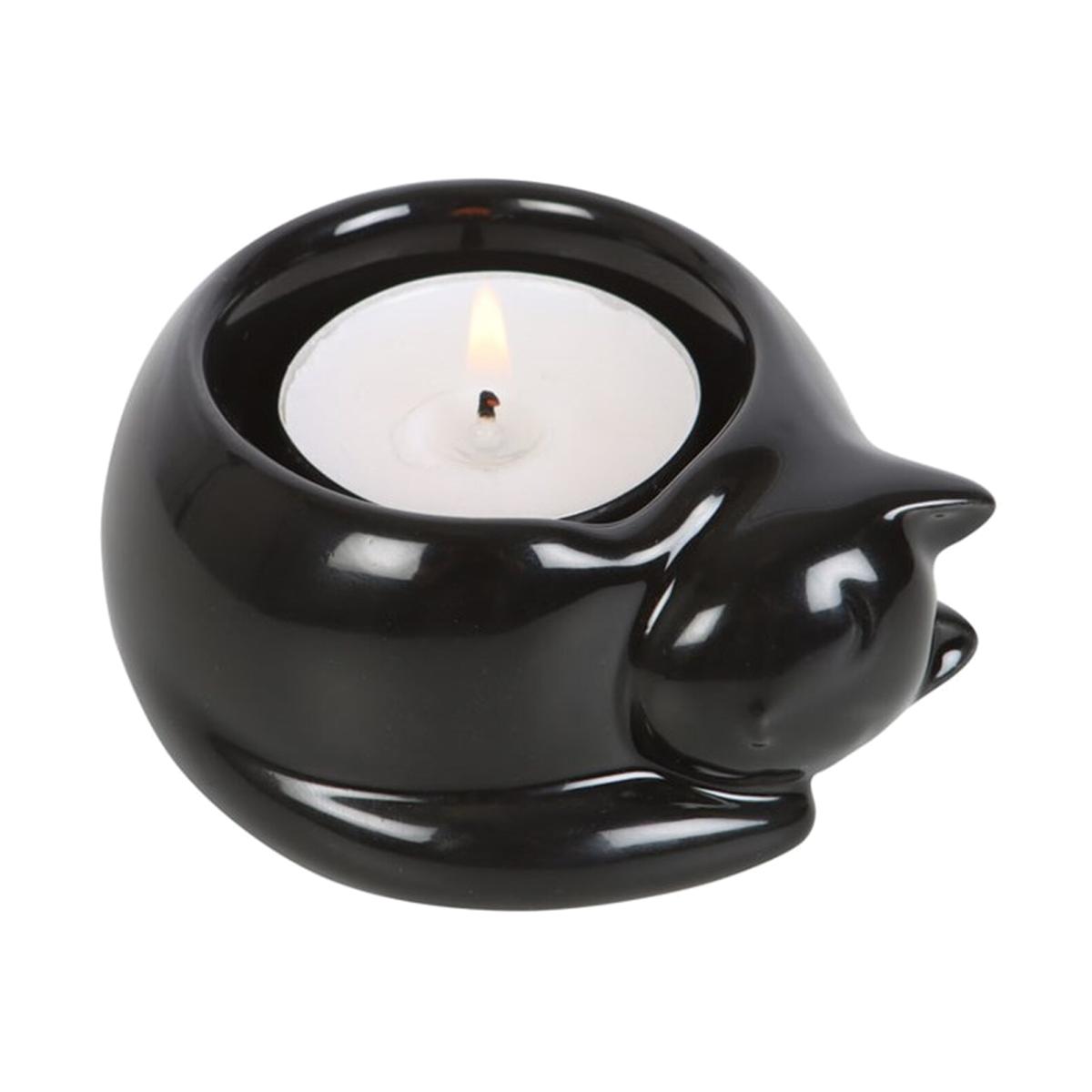 Curled up and cosy around the flame of the tealight, this black cat candle holder is perfect for creating snuggle spaces at home. With a smooth, black gloss finish this cute home decor accessory looks adorable as a standalone ornament when it's not in use.