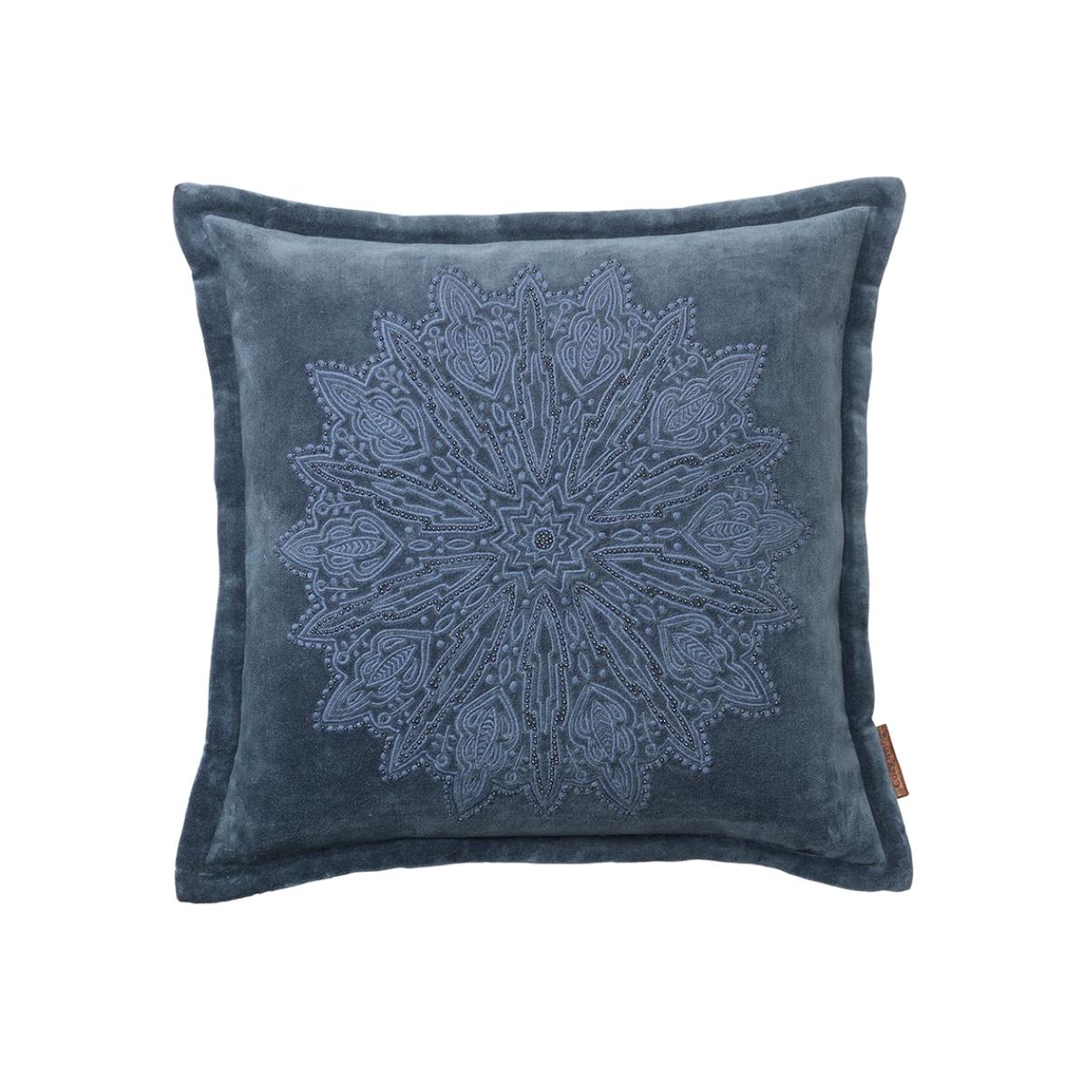 Cozy Living 45x45cm Velvet Cushion with Mandala Embroidery in Royal Blue