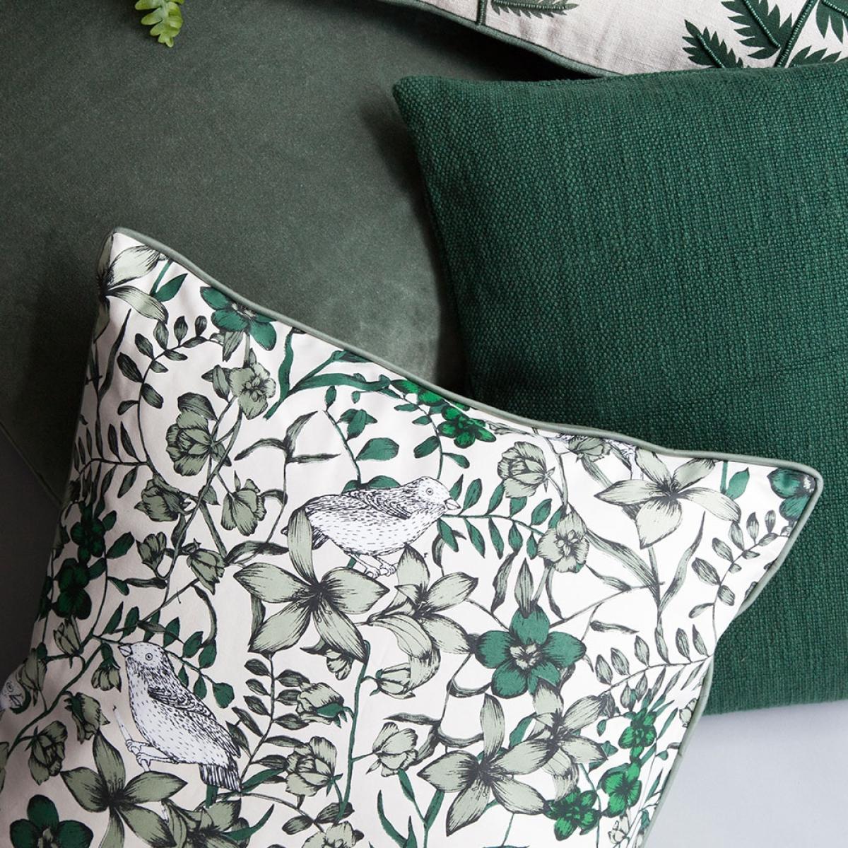 This cushion offers a charming, nature-inspired touch that works particularly well in rustic, country, or transitional interiors. I love it because the floral bird print adds visual interest without overwhelming subtle, calming palettes. It pairs nicely with neutral sofas or armchairs, especially in soft greys or muted tones, and can be layered with textured throws for a relaxed, inviting look. Practical styling tips include mixing it with plain cushions to highlight its intricate design or using it to bring a touch of woodland charm to a bed or window seat. Ultimately, it’s a versatile piece that helps create a cosy, welcoming space with a touch of natural elegance.