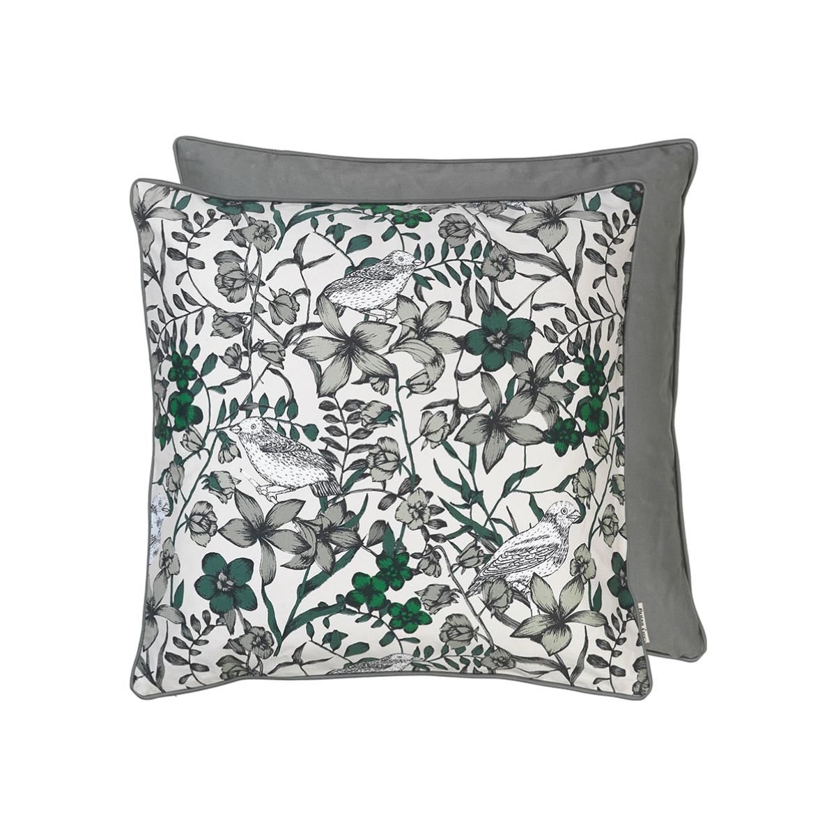 Cozy Living 50x50cm Floral Bird Print Cotton Cushion in Dove