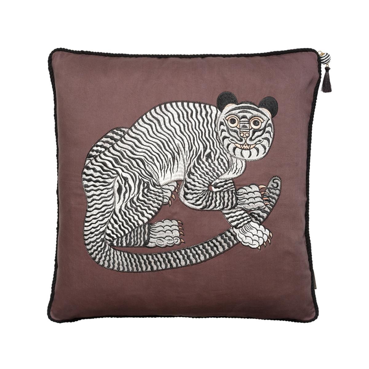 This cushion is a great way to add subtle texture and a bit of playful character to both modern and traditional interiors. The taupe tone is versatile, blending well with neutral palettes or contrasting nicely against darker shades. I love how the embroidered tiger detail brings an unexpected point of interest without overpowering the space. It works particularly well on sofas or beds in cosy living rooms, schemes that favour earthy tones, or eclectic styles. For styling tips, pair it with other textured cushions in complementary shades or add a throw to create a layered, inviting look. It’s practical enough to be a daily-use piece that also acts as a statement detail.