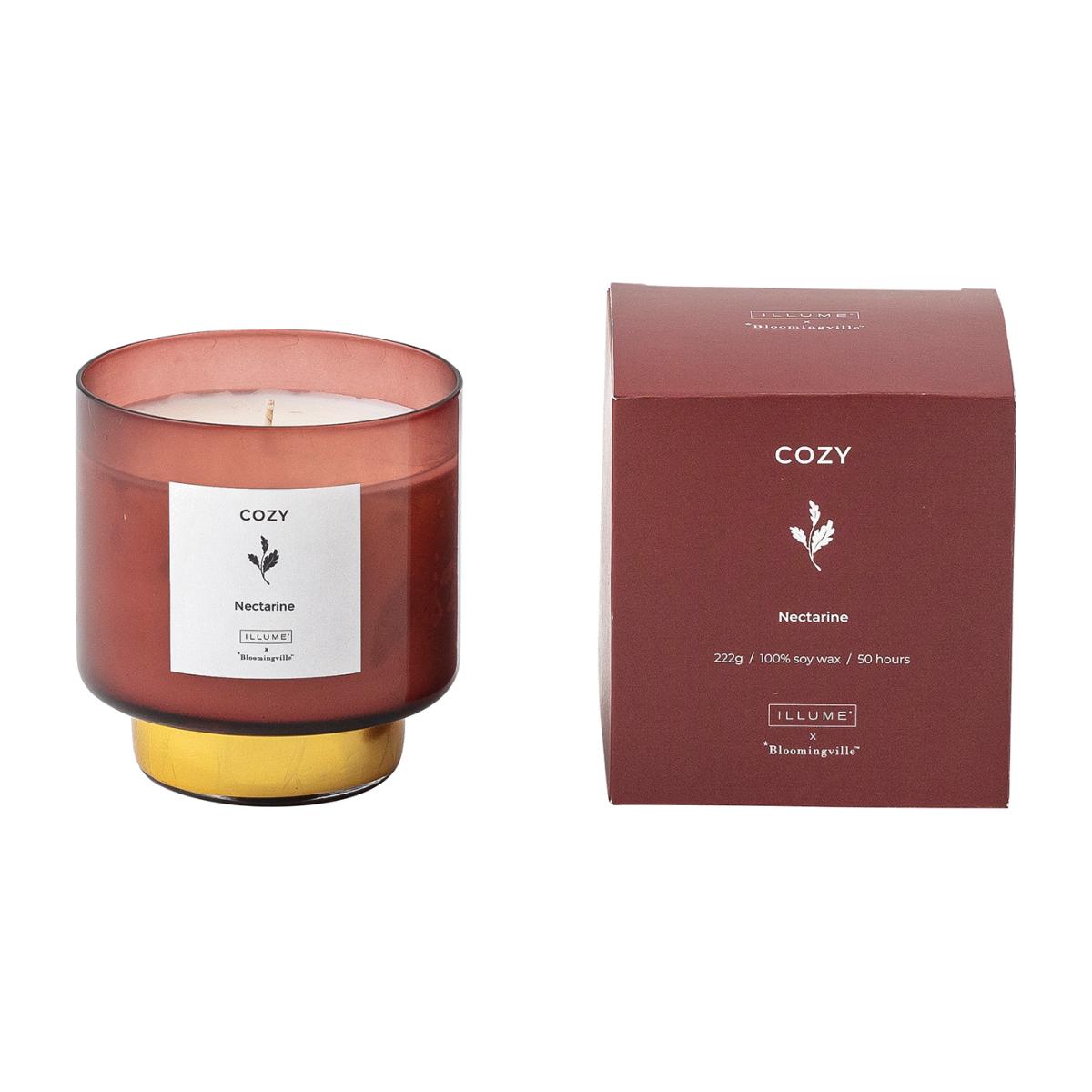 The Cozy Nectarine scented candle from Illume x Bloomingville has a charismatic and warm scent that envelopes the user. Cozy Nectarine has a floral and feminine scent that includes top, key and base notes, just like a perfume. The top notes of nectarine and plum are the first thing you smell when the candle is lit. Once those notes have settled, the key notes will captivate you with Turkish rose and violet leaves. The base notes of patchouli and sandalwood come last and linger long after the other scents.
