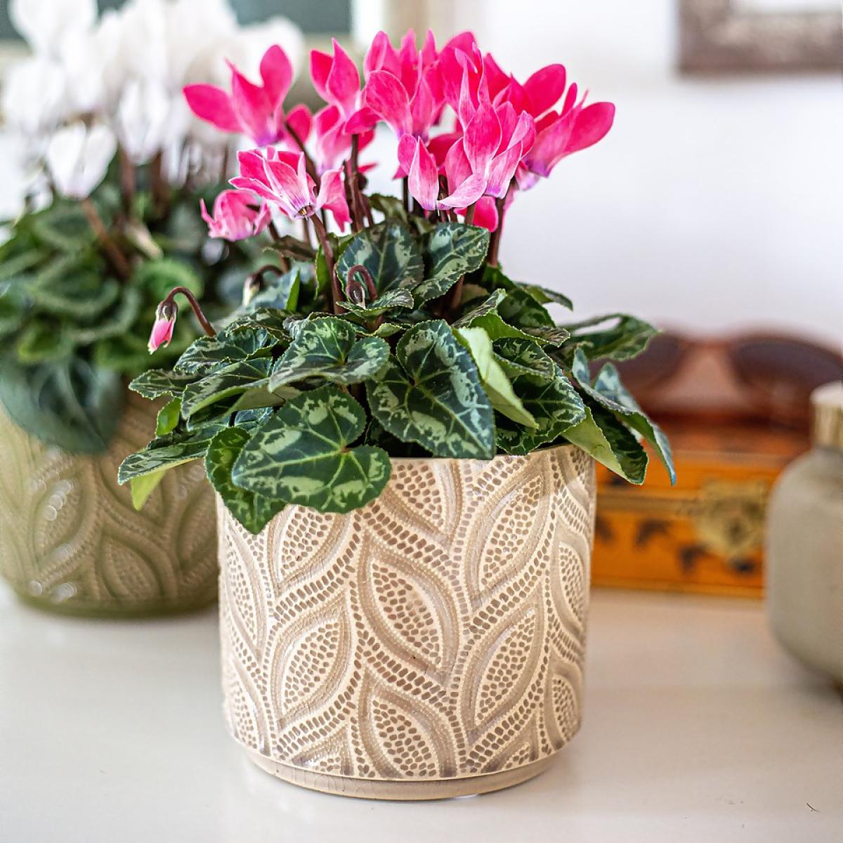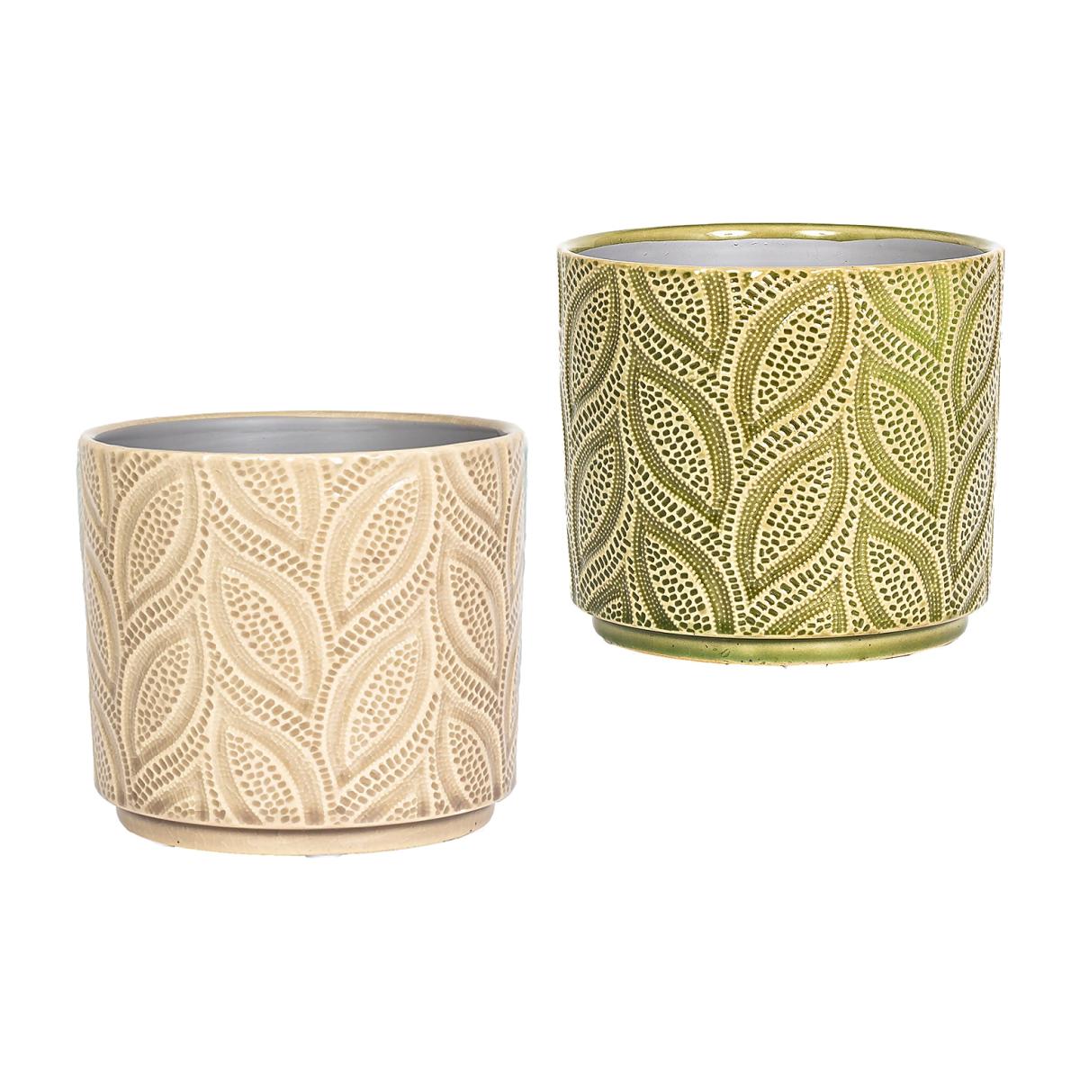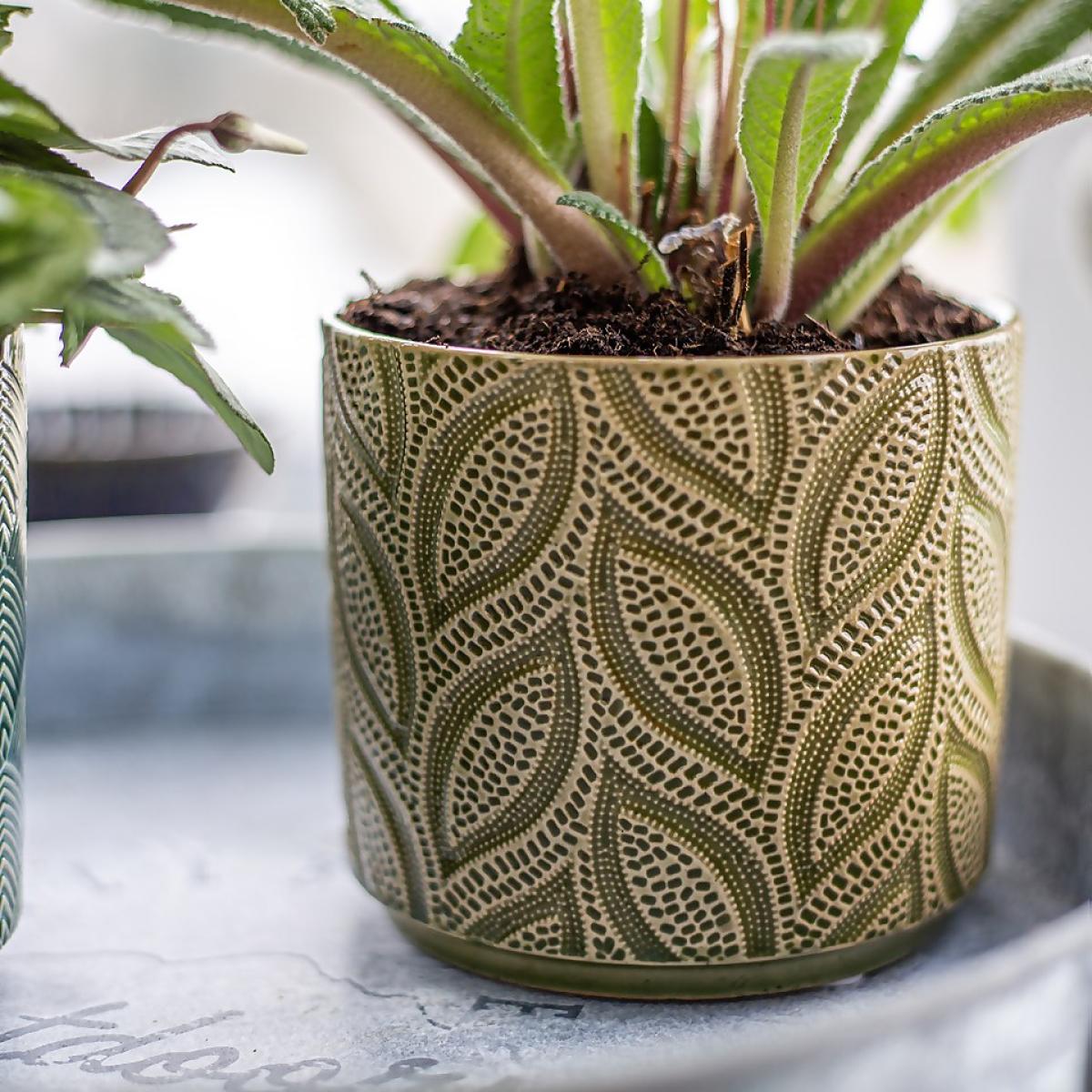 Add some colour to your home with this beautiful embossed pot. The subtle ridges hold the glaze during firing to create the varying colour intensities, which enhances the design and gives a distinctive finish. A stylish addition to any home.