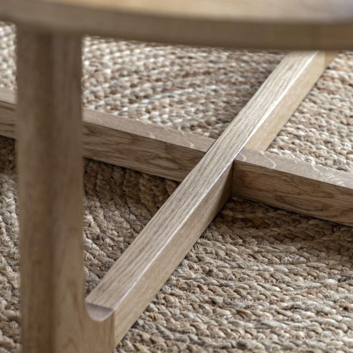 Crafted from the finest oak and structural oak veneers where practical, this beautiful coffee table offers elegant design, with its simple round top and beautifully shaped underframe. The wood has a lovely natural finish. The table is also available in a smoked oak finish, and matching pieces are available.