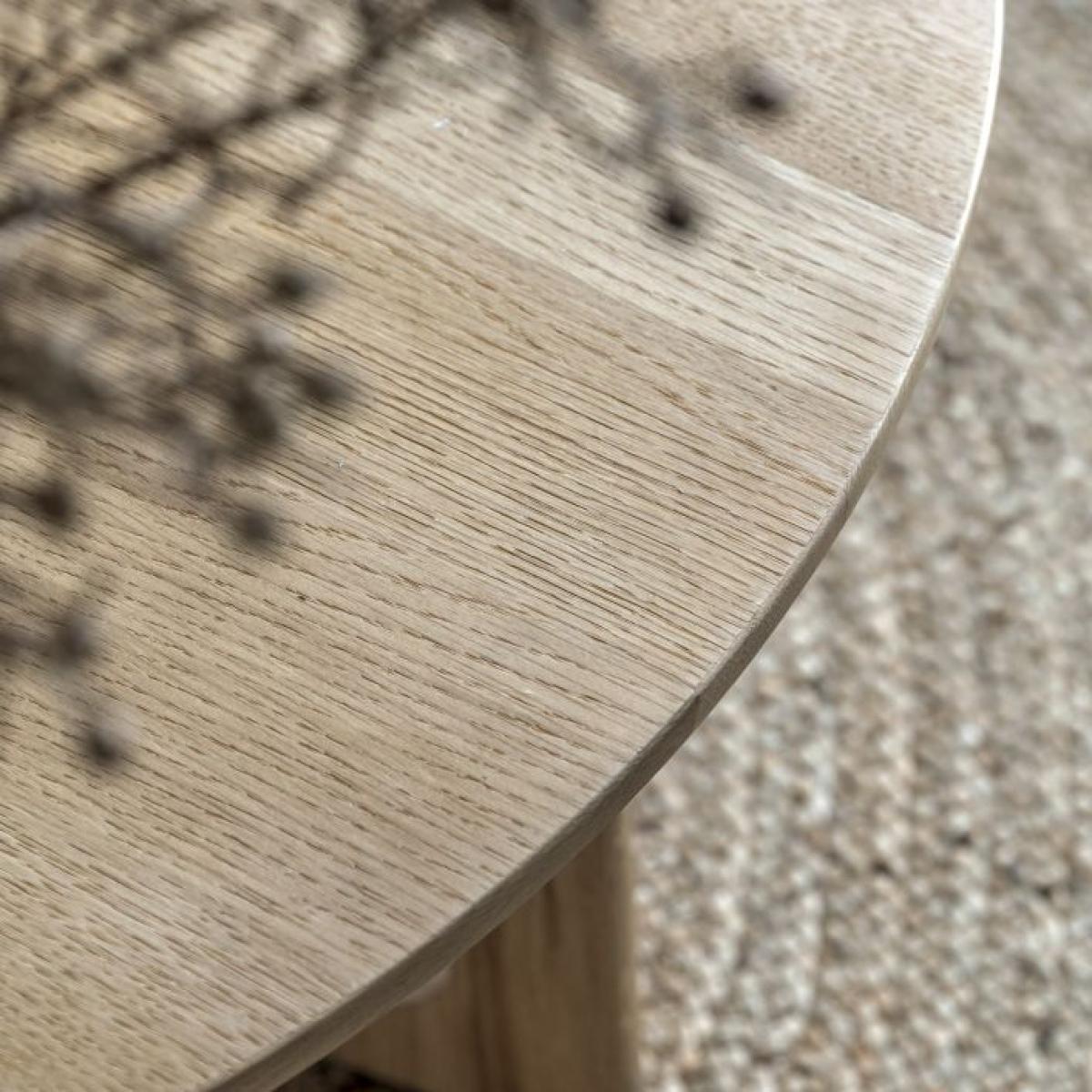 I love this oak round table because of its clean, natural aesthetic that easily complements both modern and rustic interiors. It works well in open-plan living spaces, adding warmth without overpowering the room's design. Stylistically, it pairs beautifully with neutral tones or muted colours and can be dressed up with a few well-chosen accessories like a vase or candles. Practical tips include keeping the tabletop clutter-free for a sleek look, or layering with textured textiles and greenery to add visual interest. Its simplicity makes it versatile enough to suit different decor styles, from Scandinavian minimalism to boho chic.