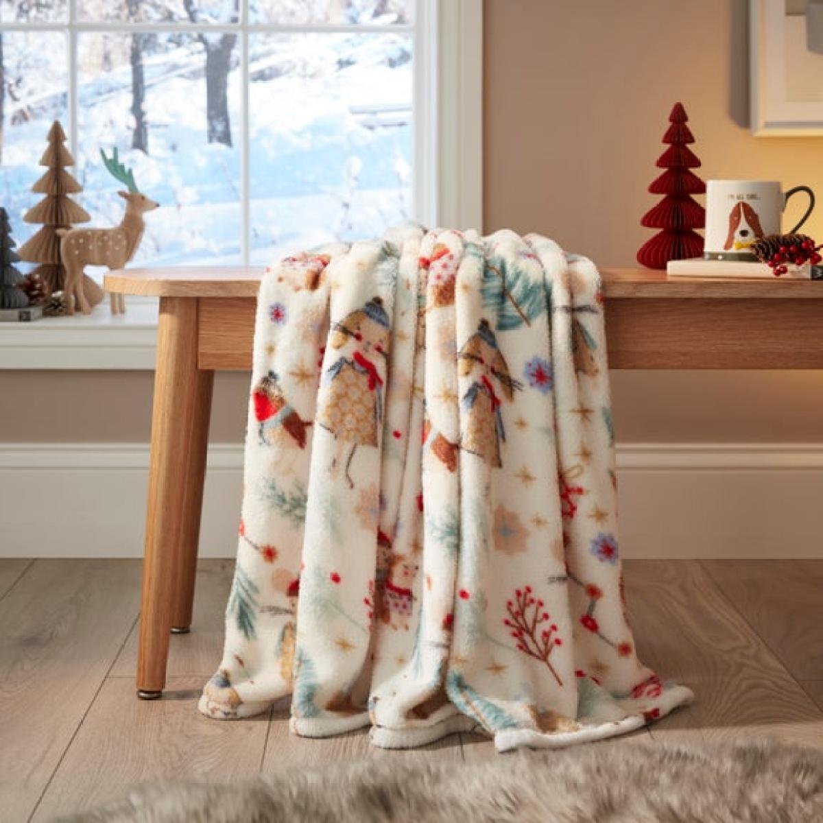 * Soft fleece fabric * Warm and cosy feel * Festive printed design Get cosy this Christmas with this fleece throw, finished with a festive print that brings a seasonal touch to your space. Soft to the touch and warm to wrap up in, it’s great for chilly evenings on the sofa or adding an extra layer to your bed. Whether you’re watching a film or enjoying a quiet moment, it’s made for comfort.