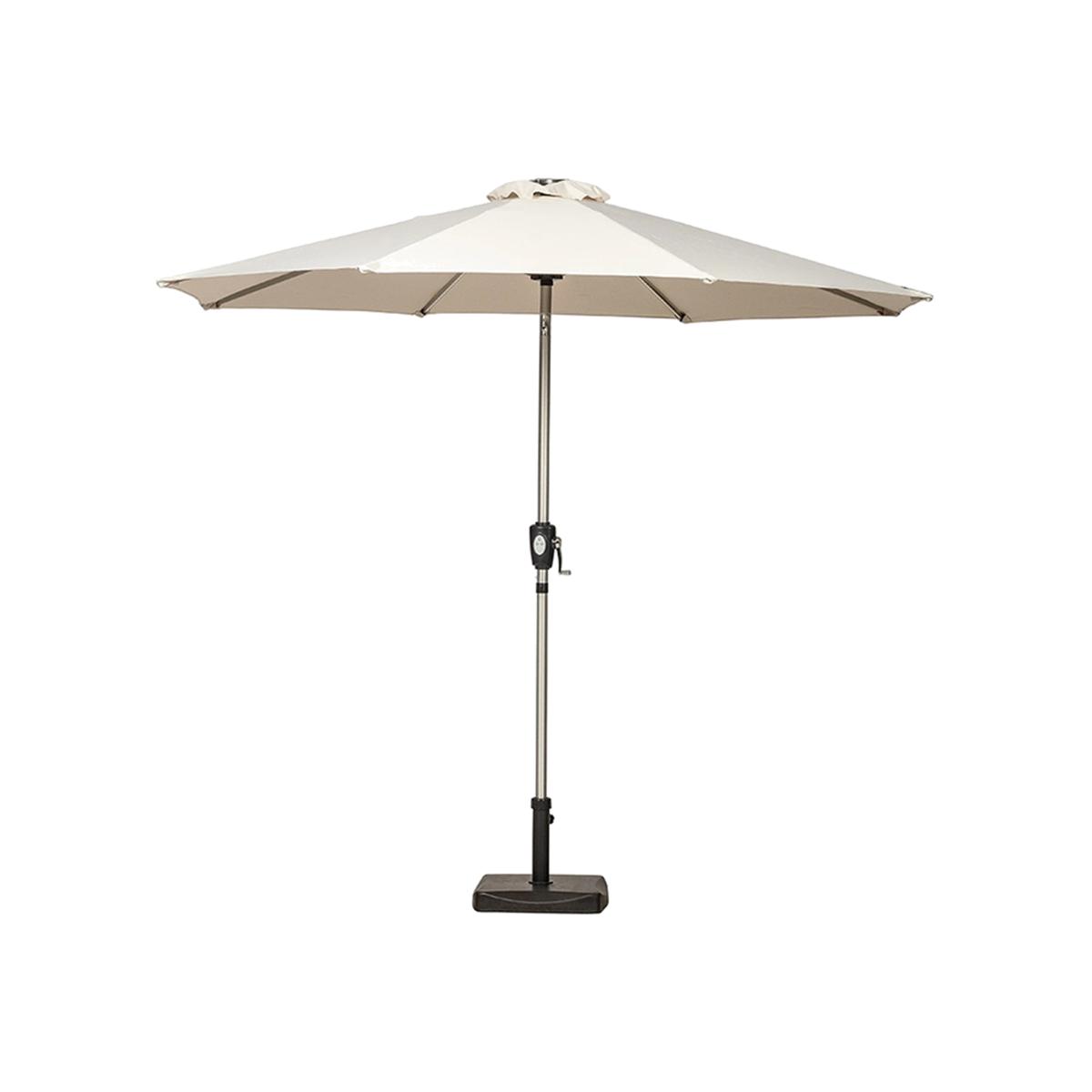 The 2.7m Ivory Crank and Tilt LED Strip Parasol can be used within your dining tables or as a free standing parasol provided you use a weighted base (not included) to keep the parasol in place. This product features an easy to operate crank and tilt system which will help you to adjust the canopy position when required. The frame includes an array of integrated LED lights so that you can use it into the evening. Material:Polyester Fabric Aluminium Pole
