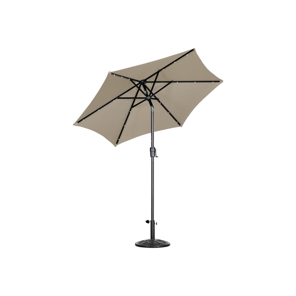 This crank and tilt parasol is a must-have for every garden! Featuring a spacious 2.7m canopy, the umbrella is waterproof and fade resistant, so you can keep shaded from the sun and dry in the rain. The solar panel is built into the top of the parasol to save you the hassle of repositioning the panel and so your parasol gets constant sunlight. These solar powered lights can be easily activated by flicking the power on button built into the durable, powder coated steel frame. Designed with ease in mind this parasol is easily opened and closed by winding the crank handle and is tilted when you simply press the button at the top of the pole. This solar powered parasol is effortless to assemble and disassemble and is built with a handy air vent to help the air circulate and keep you cool during those hot summer days!