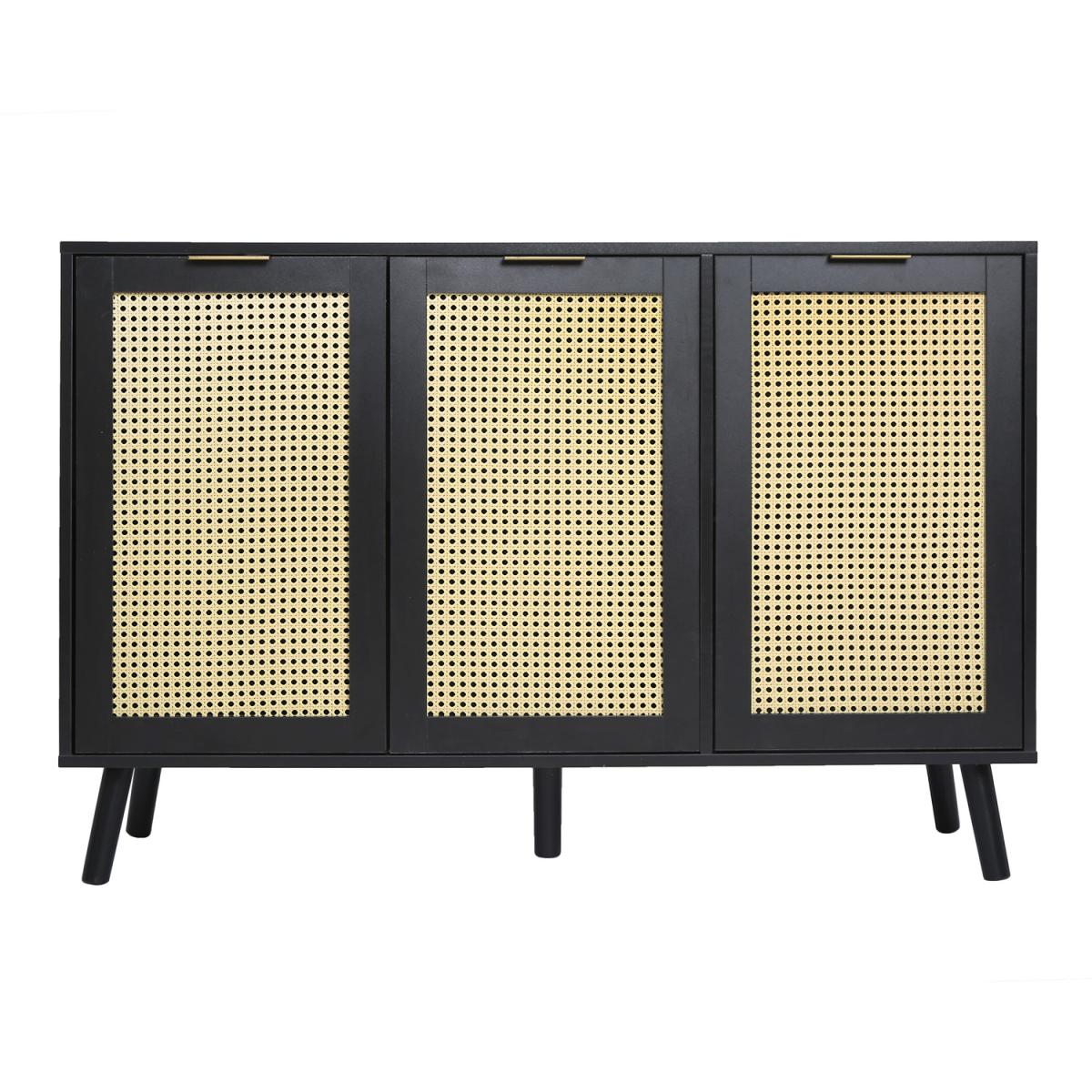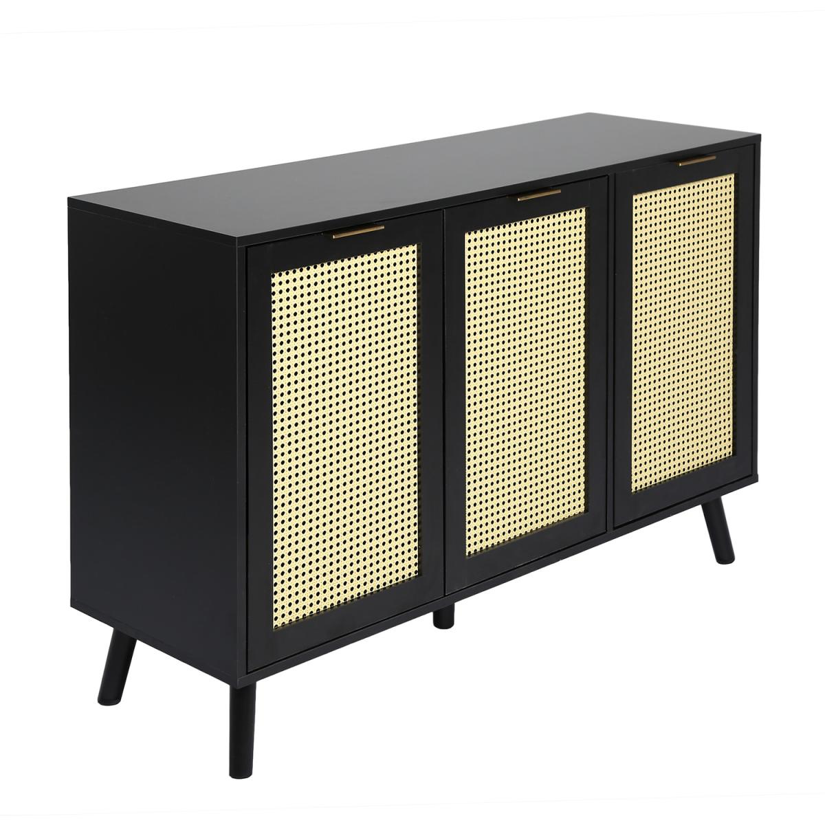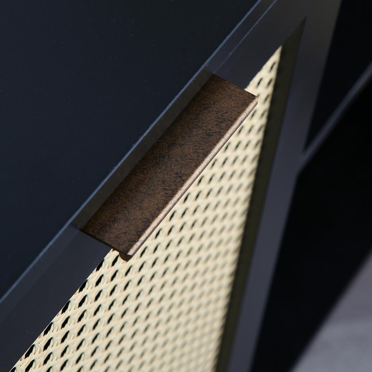 The Craven sideboard offers you plenty of storage without compromising on style. With natural cane doors and a contrasting black painted finish, this sideboard will look great in any living space. Craven is a 3-door sideboard with natural cane doors and a black painted finish. The Craven works well in living rooms and dining rooms, providing storage for items such as dining crockery or spare blankets. It features three internal shelves for storing board games or storing spare blankets, making it a versatile piece of furniture. This 3-door cabinet has an innovative space-saving design with enough room to contain as many items as possible. It is a convenient and beautifully crafted furniture that can help declutter your indoor space. This cane cabinet is particularly sturdy in nature, with three doors that allow you to maximise its use. It is a piece of multi-purpose furniture that can serve several indoor or domestic uses. With its solid construction and weight-bearing capacity, it is able to contain high loads. Additionally, the three doors come fitted with quality wear-resistant hinges that facilitate the opening and closing of the cabinet.