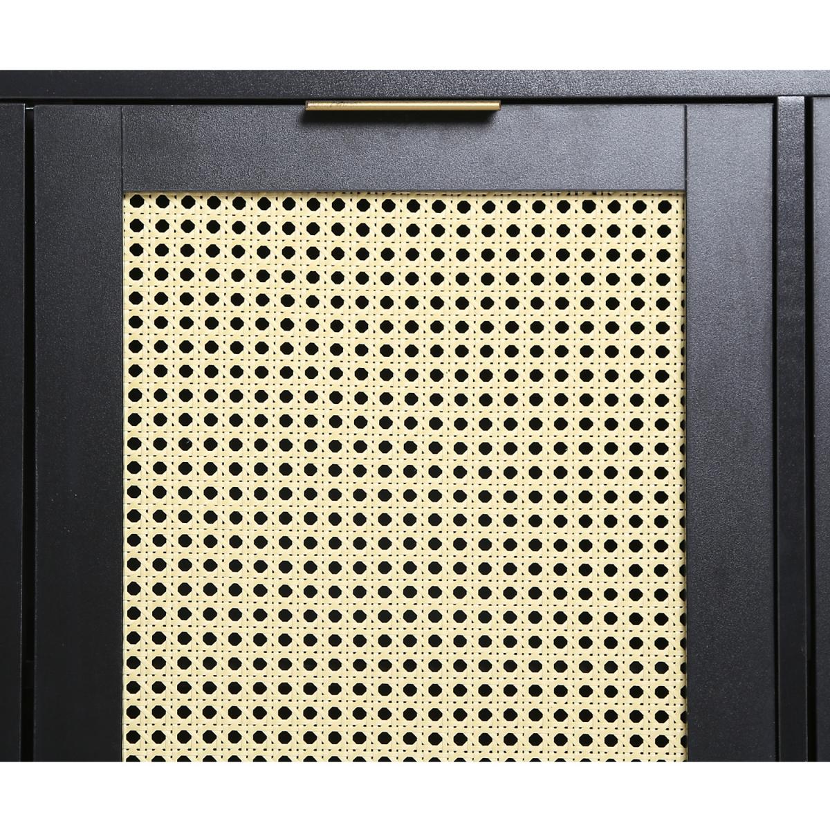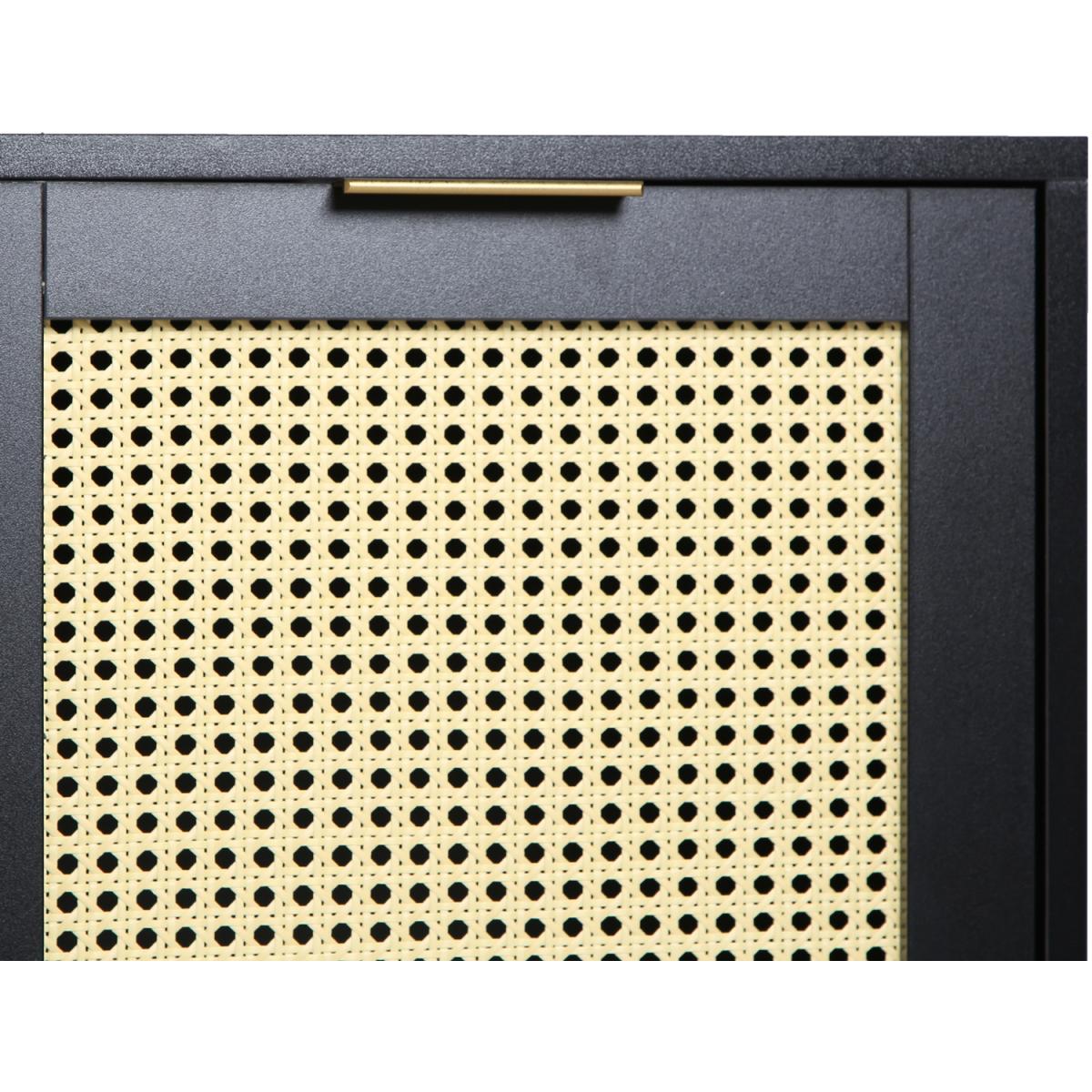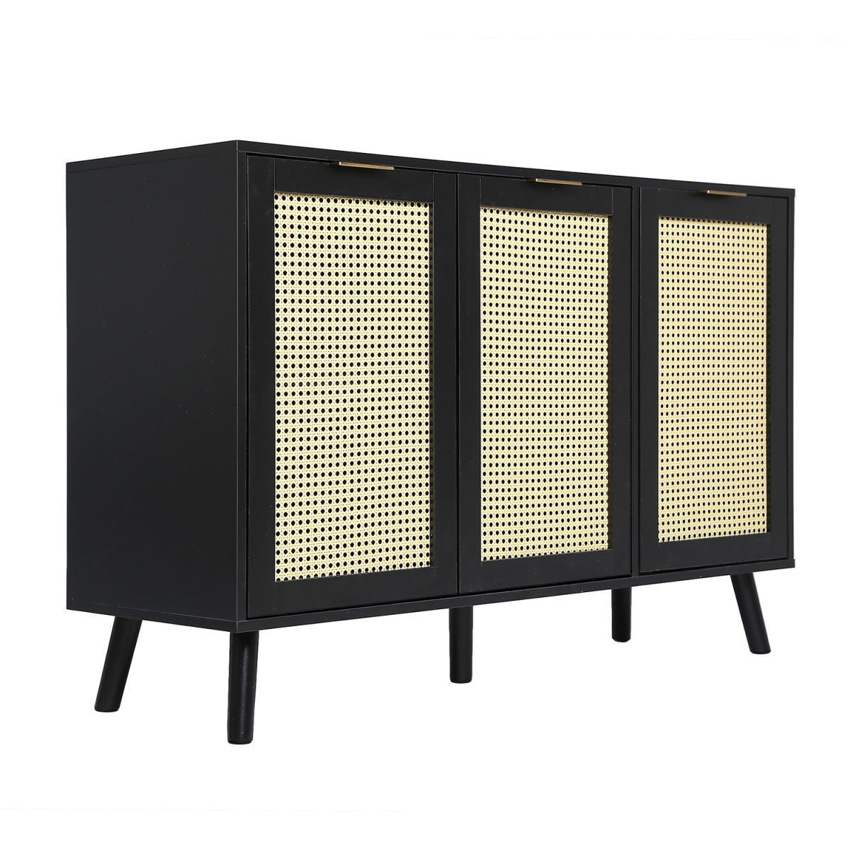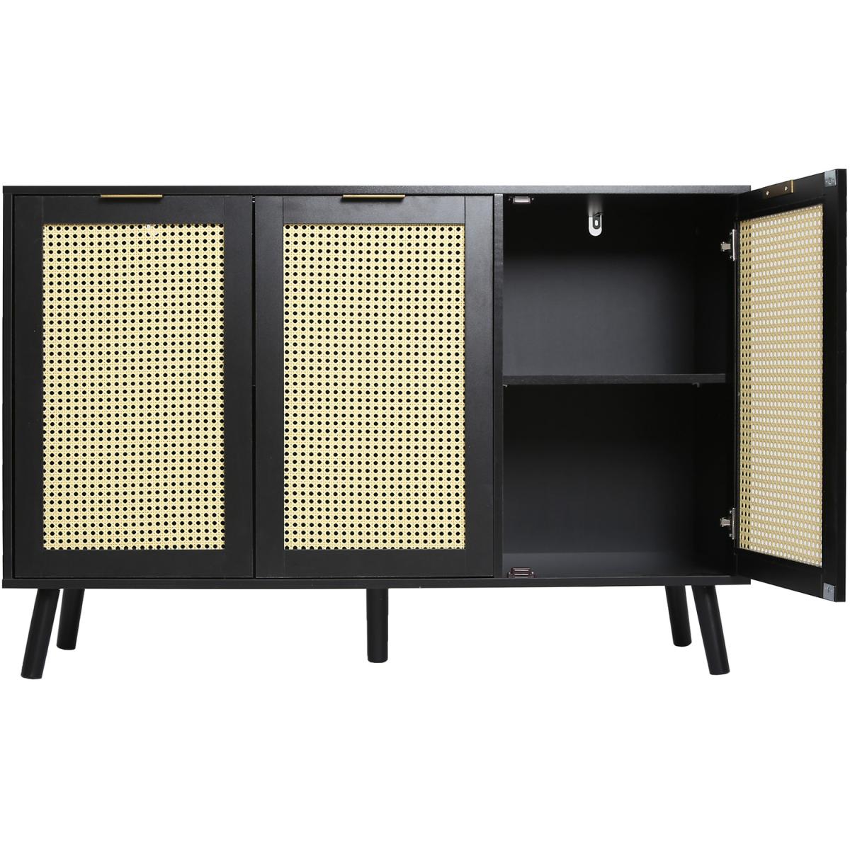 The Craven sideboard offers you plenty of storage without compromising on style. With natural cane doors and a contrasting black painted finish, this sideboard will look great in any living space. Craven is a 3-door sideboard with natural cane doors and a black painted finish. The Craven works well in living rooms and dining rooms, providing storage for items such as dining crockery or spare blankets. It features three internal shelves for storing board games or storing spare blankets, making it a versatile piece of furniture. This 3-door cabinet has an innovative space-saving design with enough room to contain as many items as possible. It is a convenient and beautifully crafted furniture that can help declutter your indoor space. This cane cabinet is particularly sturdy in nature, with three doors that allow you to maximise its use. It is a piece of multi-purpose furniture that can serve several indoor or domestic uses. With its solid construction and weight-bearing capacity, it is able to contain high loads. Additionally, the three doors come fitted with quality wear-resistant hinges that facilitate the opening and closing of the cabinet.
