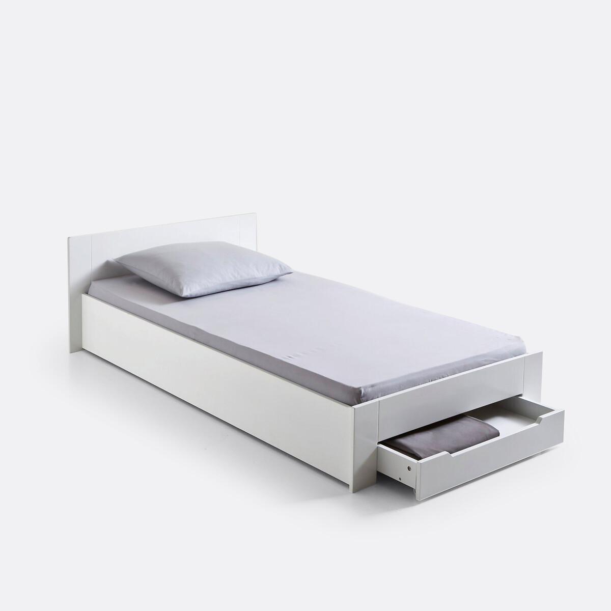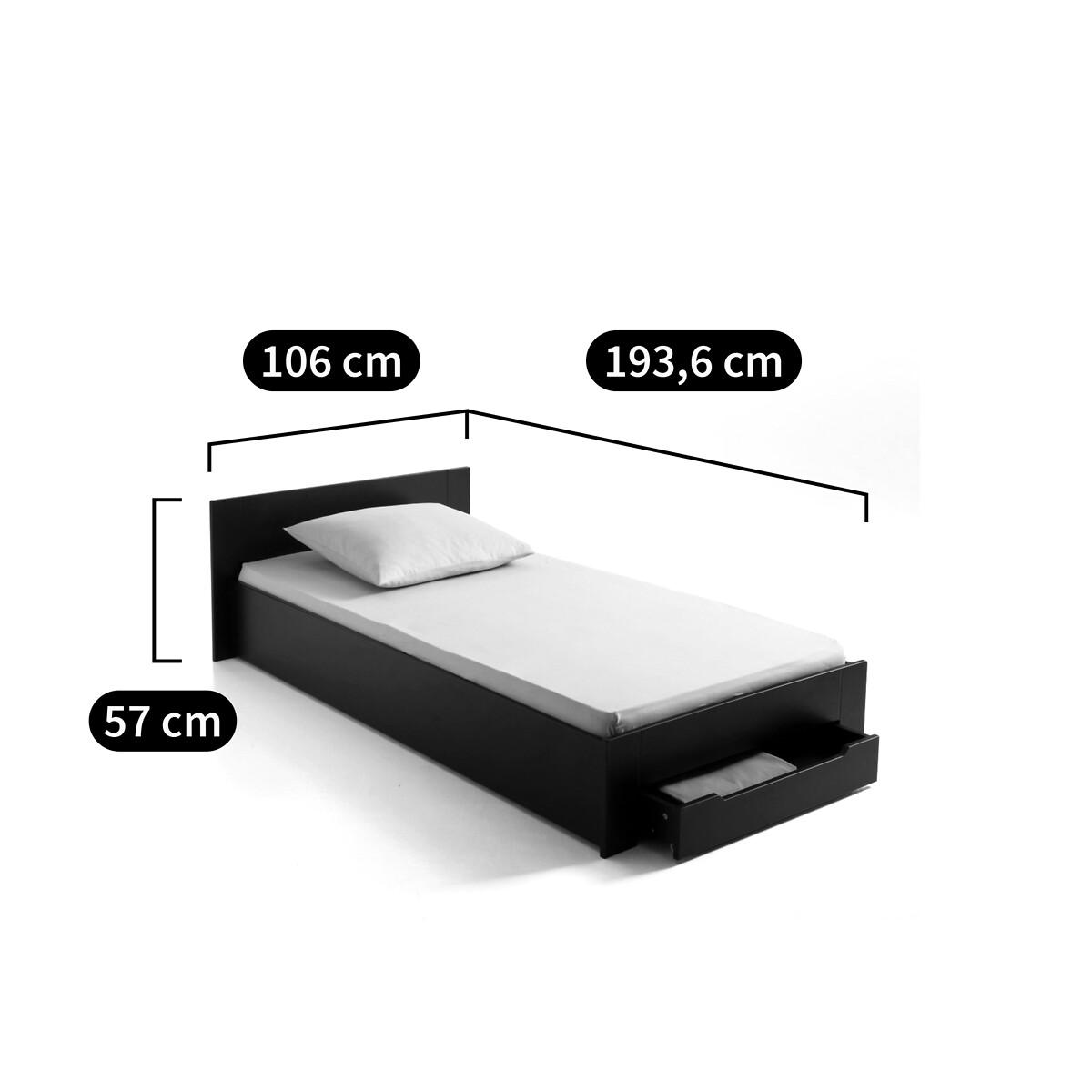 Crawley bed assembly + bed base + drawer. Enjoy a complete bed unit: This single bed is supplied with a slatted bed base and a storage drawer. Product Details • Supplied with a slats bundle • MDF structure • White lacquer finishDimensions. Total • Length: 193.6cm • Width: 106cm • Maximum height : 57cm. Usable dimensions: • W70.5 x D56cmDelivery:. Assembly required. Available for home delivery. Note! Please check that all access points are large enough to accommodate your delivery (doors, stairs, lifts). • WOOD FROM SUSTAINABLY MANAGED FORESTS. FSC® certified wood comes from forests that are environmentally, socially and economically well managed. Dimensions and weight of parcel2 parcels • L119 x H11 x D63cm - 29kg • L204 x H9.5 x D33.5cm - 18kg