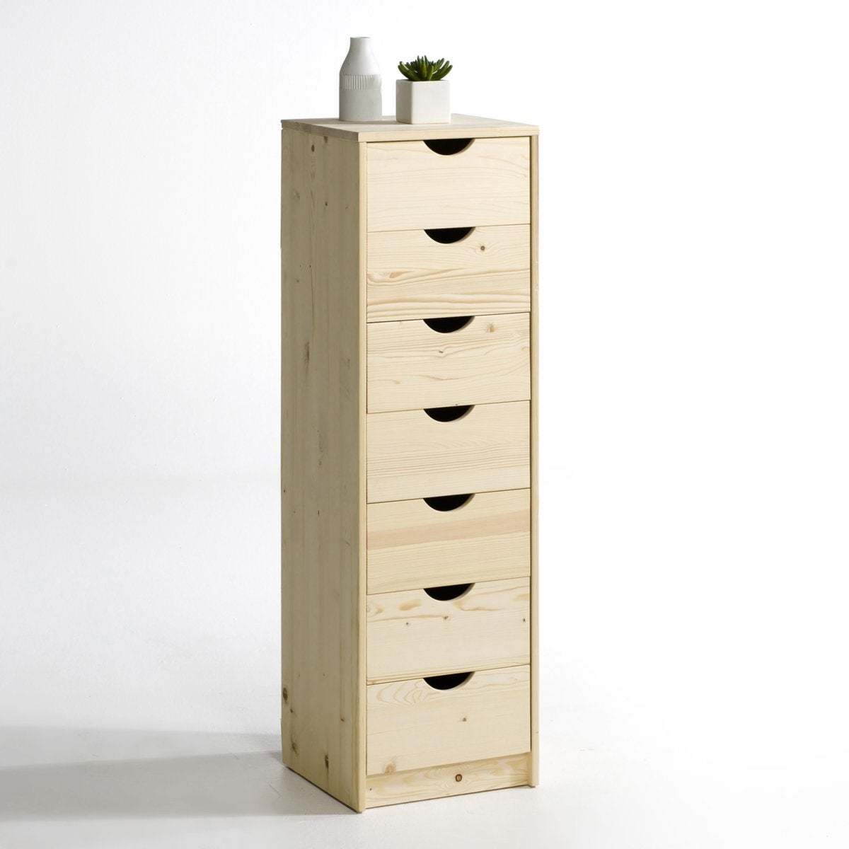 The Crawley 7-drawer tallboy. A practical tall design with narrow width, this dresser drawer set is perfect for gaining storage space. Available in a natural version, ready to paint!