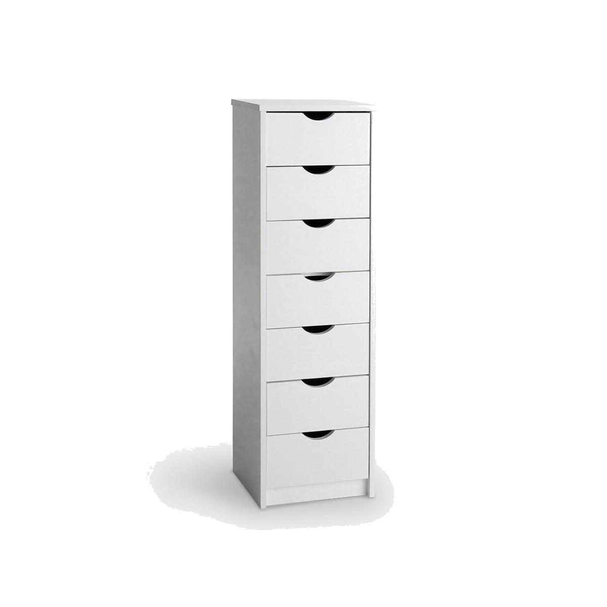 The Crawley 7-drawer tallboy. A practical tall design with narrow width, this dresser drawer set is perfect for gaining storage space. Available in a natural version, ready to paint!Product Details • Plinth feet • 7 drawers with cut-out handle. • Natural version in raw solid pine • White version in MDF acrylic paint finishDimensions. Total: • Width: 37.5cm. • Height: 122.3cm. • Depth: 34.7cm. Usable dimensions: • Drawer:L31.4 x H13 x D30cm. Delivery:This product is sold for self-assembly. It will be delivered to your door. Note! Please check that all access points are large enough to accommodate your delivery (doors, stairs, lifts). • Made in Europe. Parcel dimensions and weight: 1 parcel • 128 x 38 x 11cm • 22kg