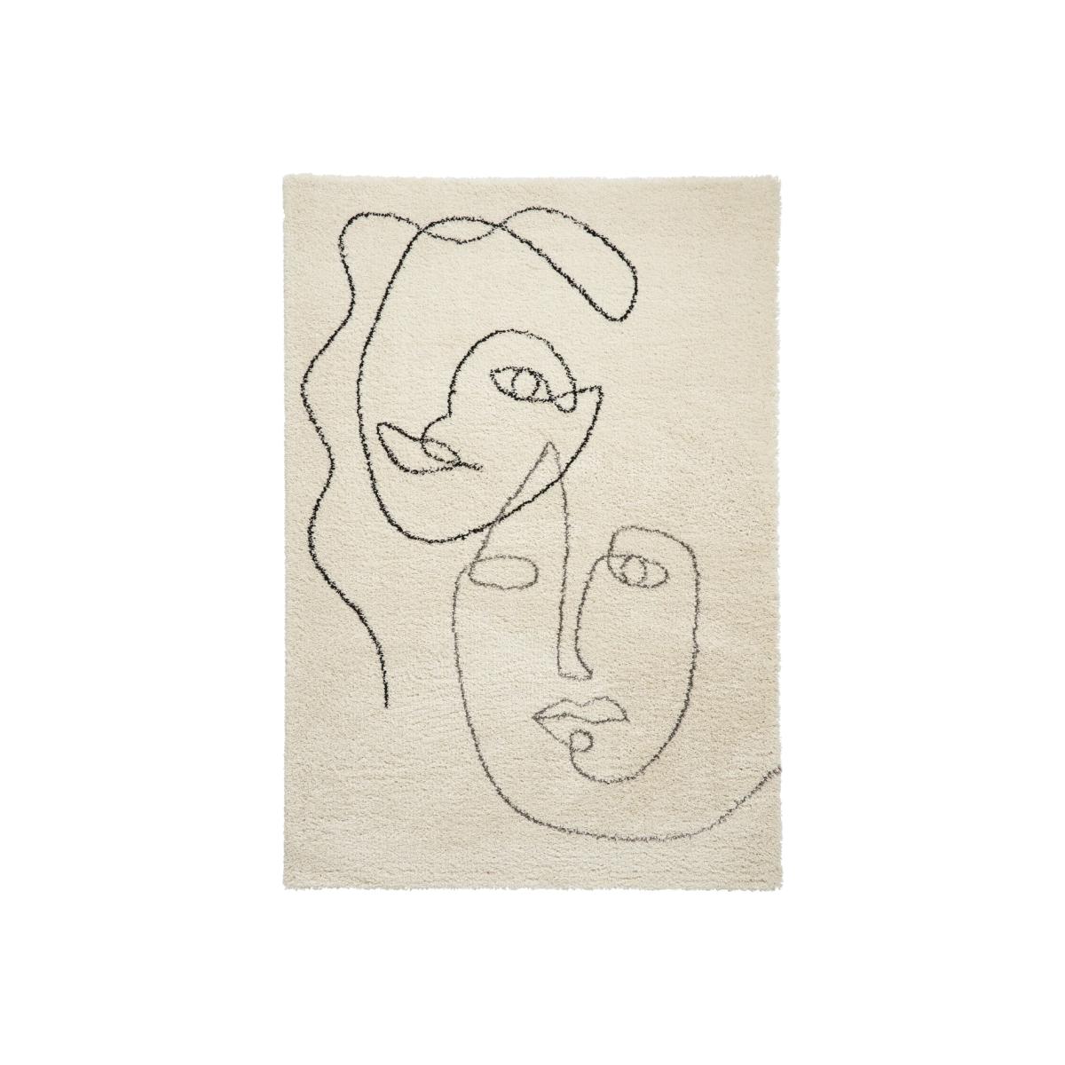Dimensions H170 x W120 cm. The Royal Nomadic rug in white features two abstract face designs one in black and one in grey. The thick high density shaggy pile is super soft while still being highly durable and hard-wearing. Features. Stunning with rug with abstract designs in black and grey Shaggy rug with a super cosy feeling. Bring some texture and depth to your space. Made from 100% polypropylene Perfect addition to your living room or bedroom..
