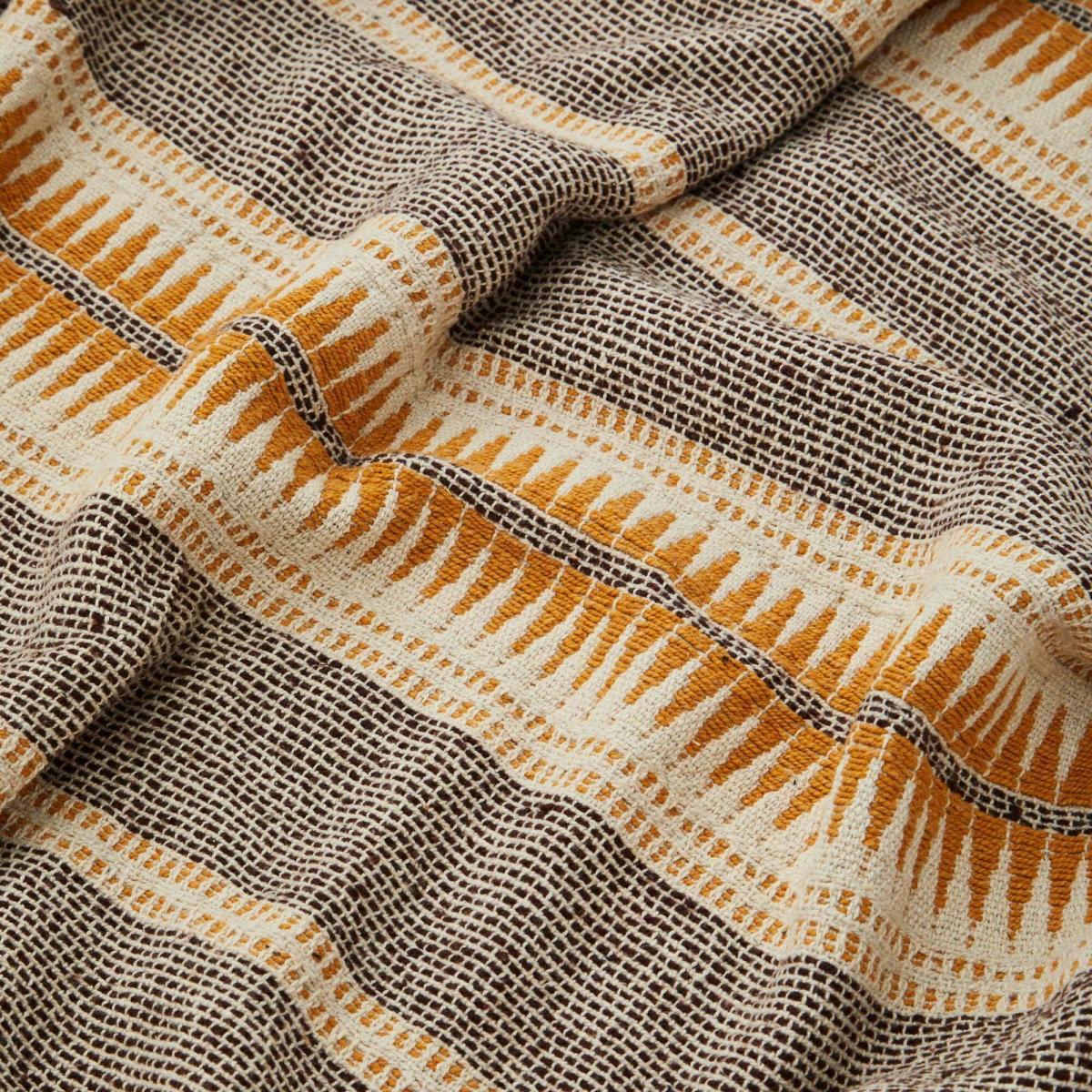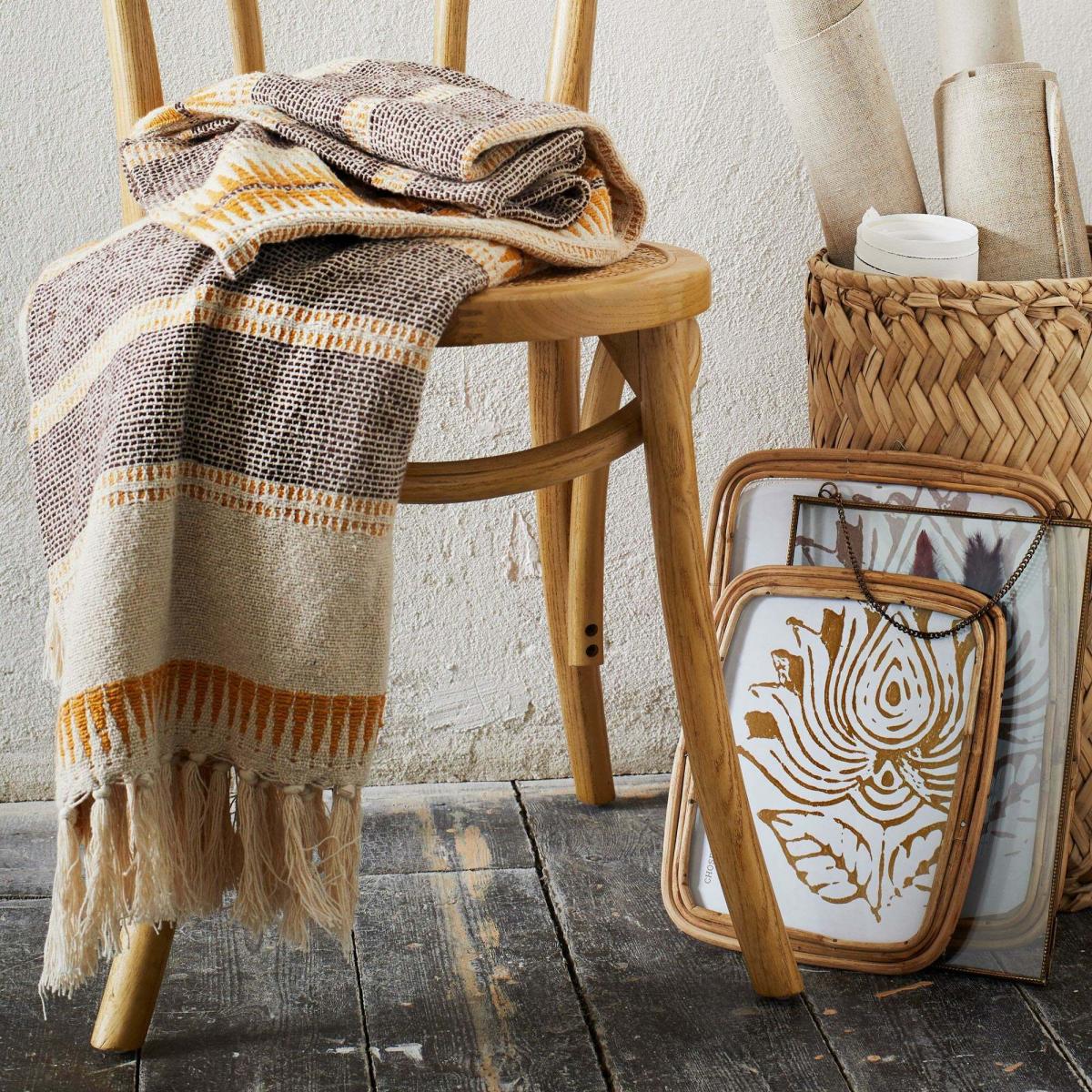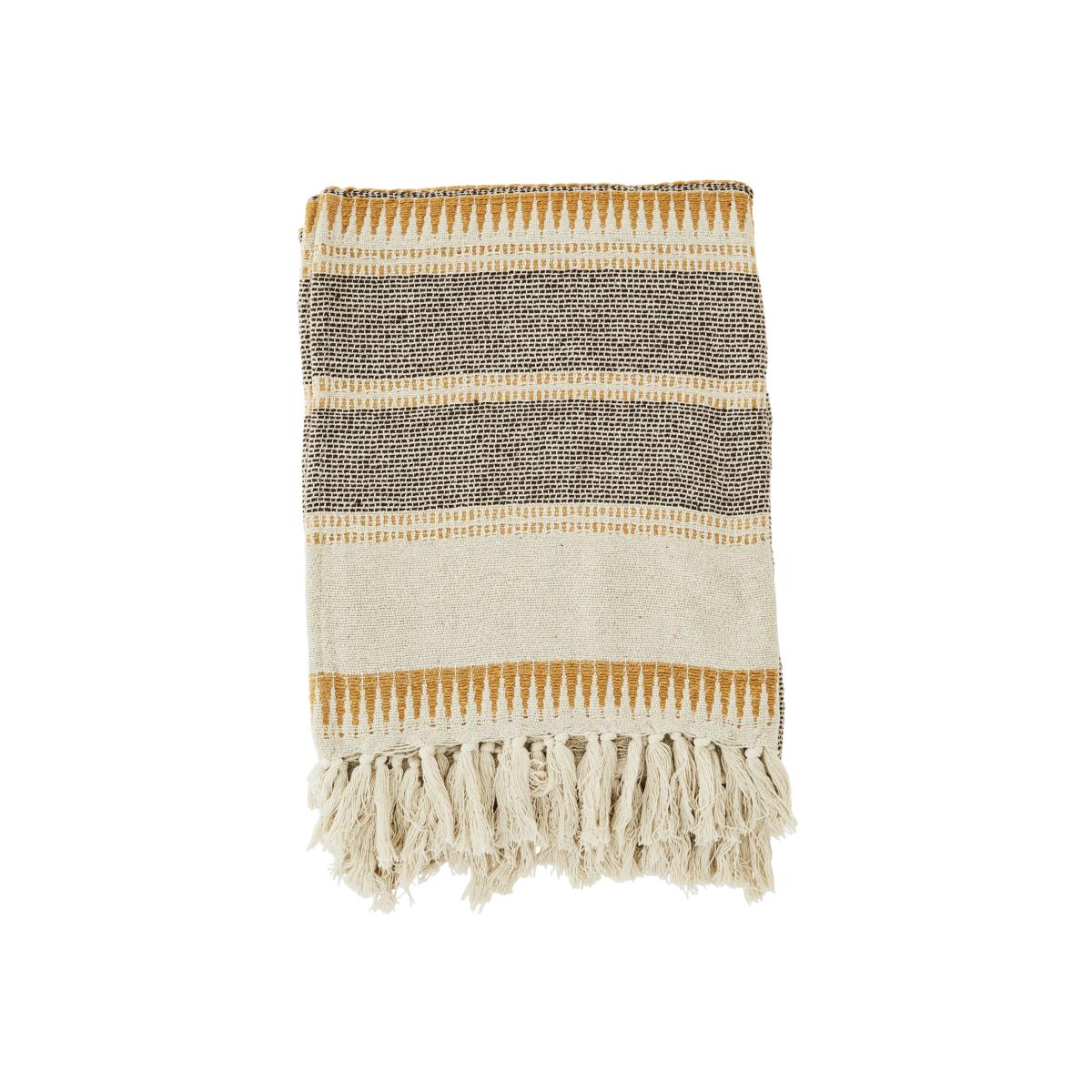 Woven from recycled cotton, brighten up your bed or favourite armchair with the mustard yellow, cream and grey stripes of this throw blanket.
