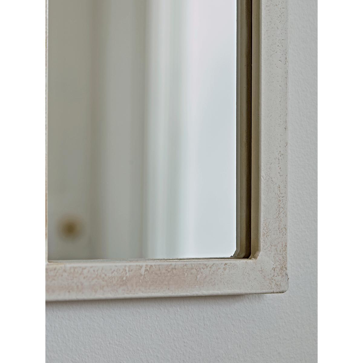 Add new dimension to your living space with our large window mirror. A delicately distressed soft-cream finish exudes natural charm. Hang in a hallway to enlarge and brighten up your space.