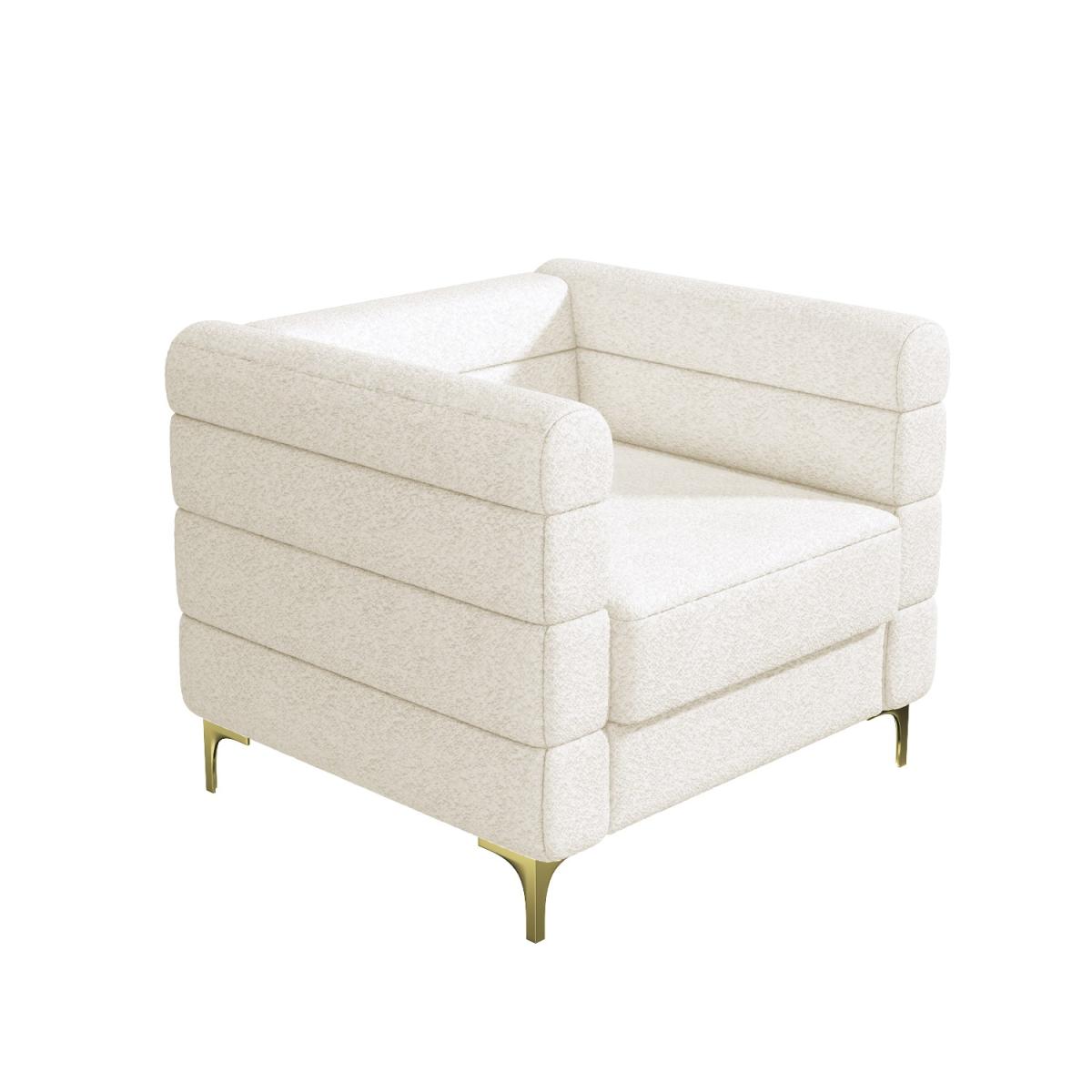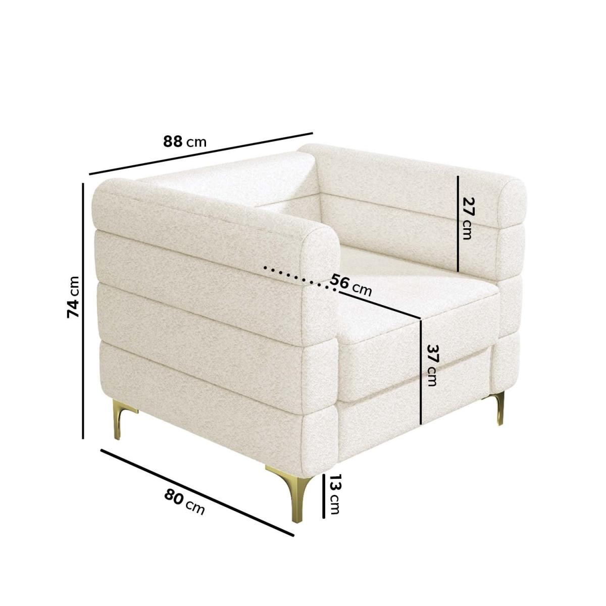 Add a cosy feel to your space with this boucle upholstered accent chair. Suitable for any room, why not use it as an extra arm chair in your living room or as an accent chair in your dressing room? The soft texture of the boucle fabric will bring a warm feel to your space. Attaching the gold L shaped legs will finish the piece off nicely and is the only bit of assembly needed.