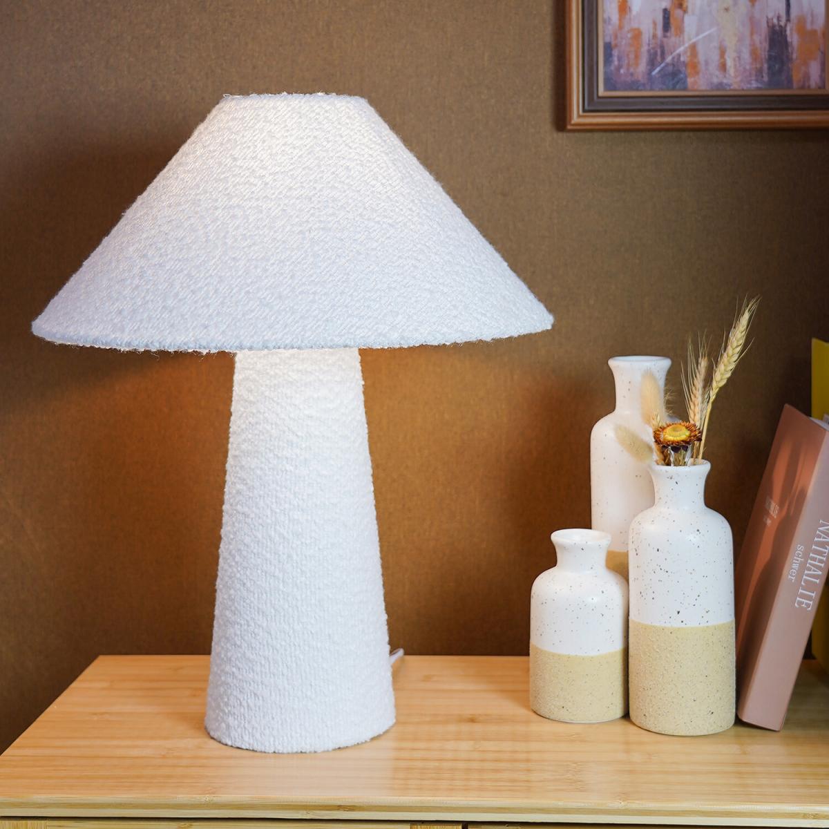 The Cream Boucle Effect Table Lamp brings a cosy touch to your space. Simple and understated, this charming lamp enhances any room with its unique design. Perfect for bedrooms and living rooms, this fabric table lamp illuminates your home in style and makes a statement.