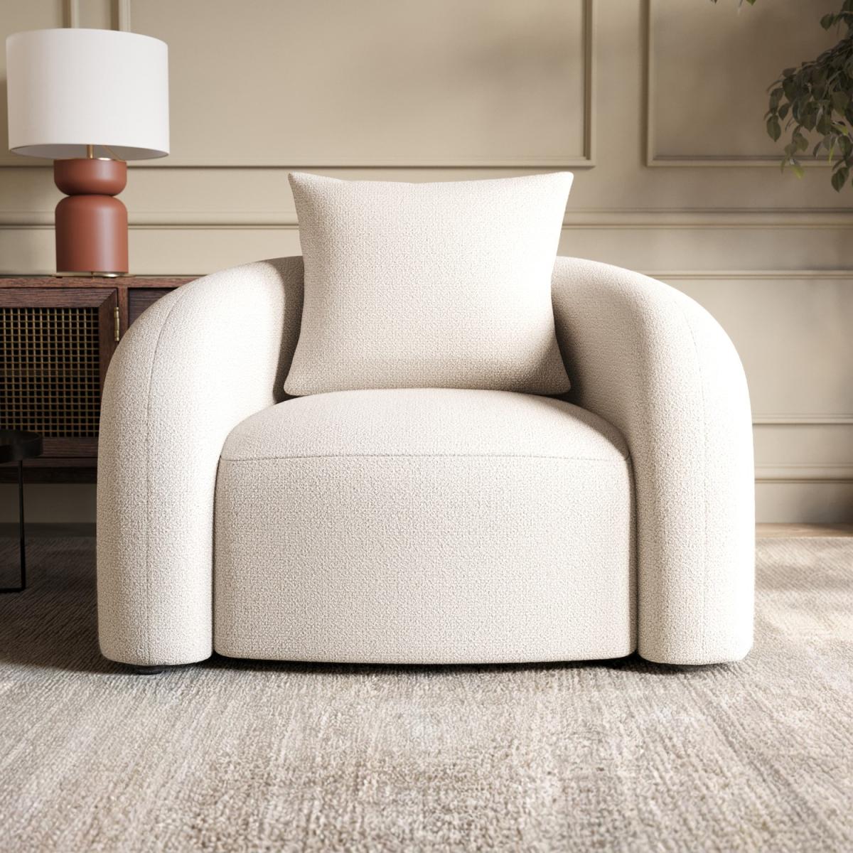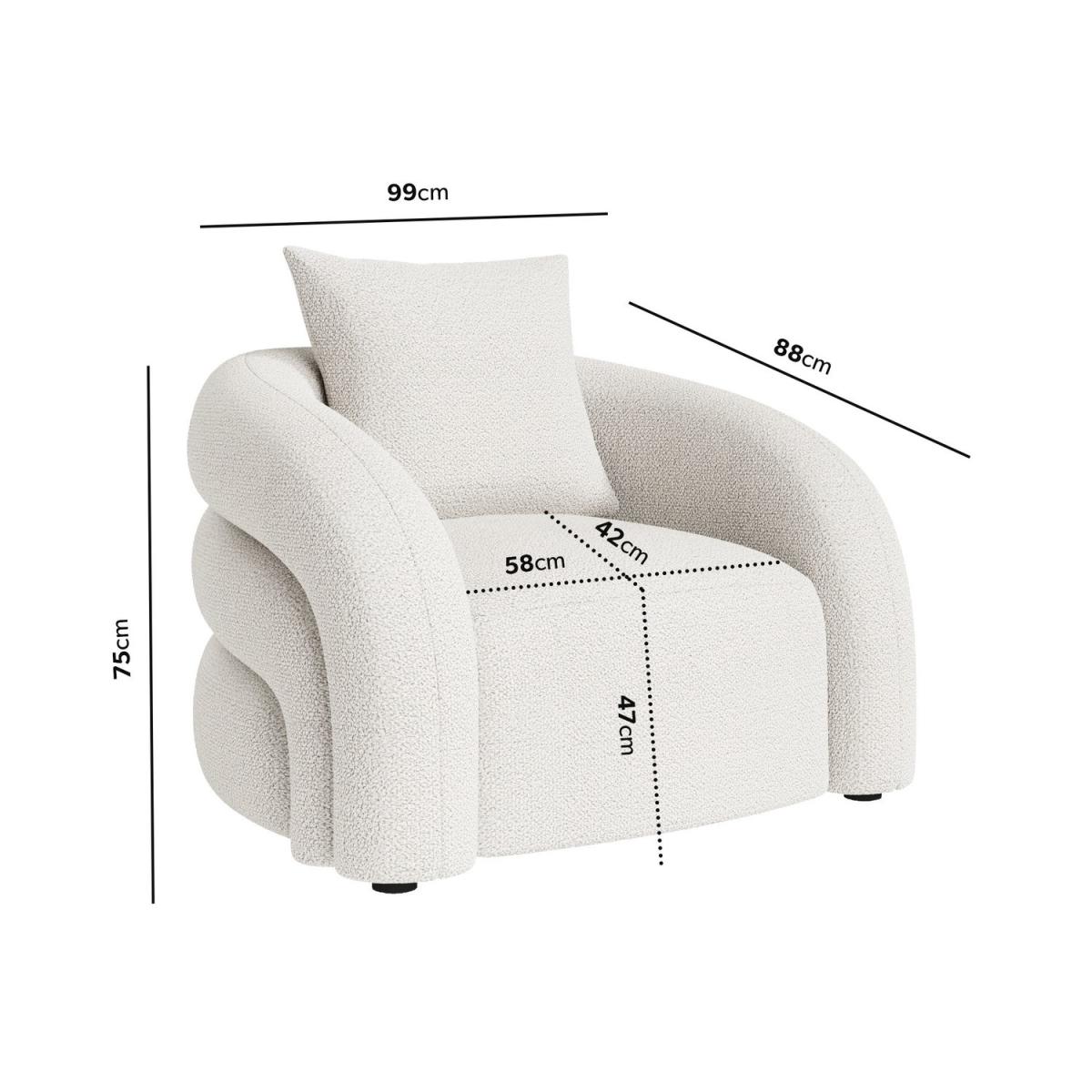 The elegant curved silhouette brings a modern touch to any nursery or living space, while the thick padding ensures exceptional comfort for nursing or relaxing. Finished in textured chenille with a soft boucle-like feel, offering warmth, style, and durability—perfect for creating a cosy, sophisticated atmosphere. Generous cushioning with an additional matching back cushion provides optimal support for long feeding sessions and lounging. Crafted with a durable frame to withstand daily use, ensuring this chair stays a reliable favourite for years to come. Simply avoid direct sunlight to prevent fading, and lightly vacuum or brush the fabric to maintain its fresh look. Elevate your home with the Zuri Nursing Chair, a perfect blend of modern design and supreme comfort. Upholstered in soft, cream chenille boucle, its smooth curves and layered padding make it ideal for feeding, soothing, or simply unwinding. Paired with sleek black legs, this statement piece complements any nursery, bedroom, or living space.