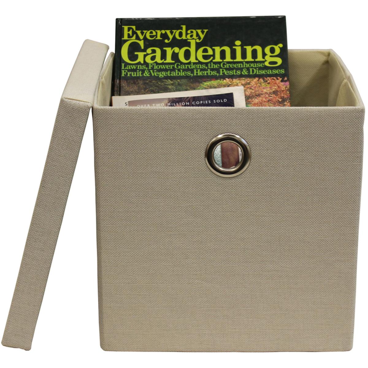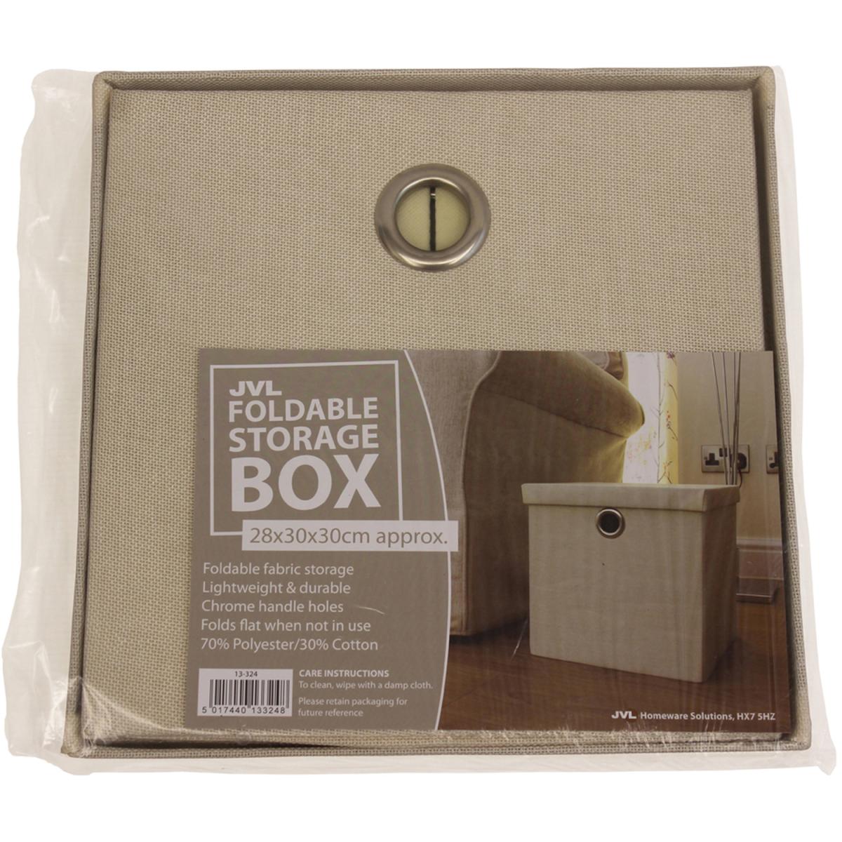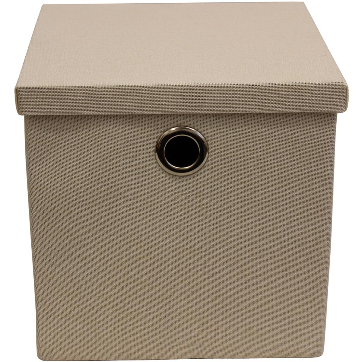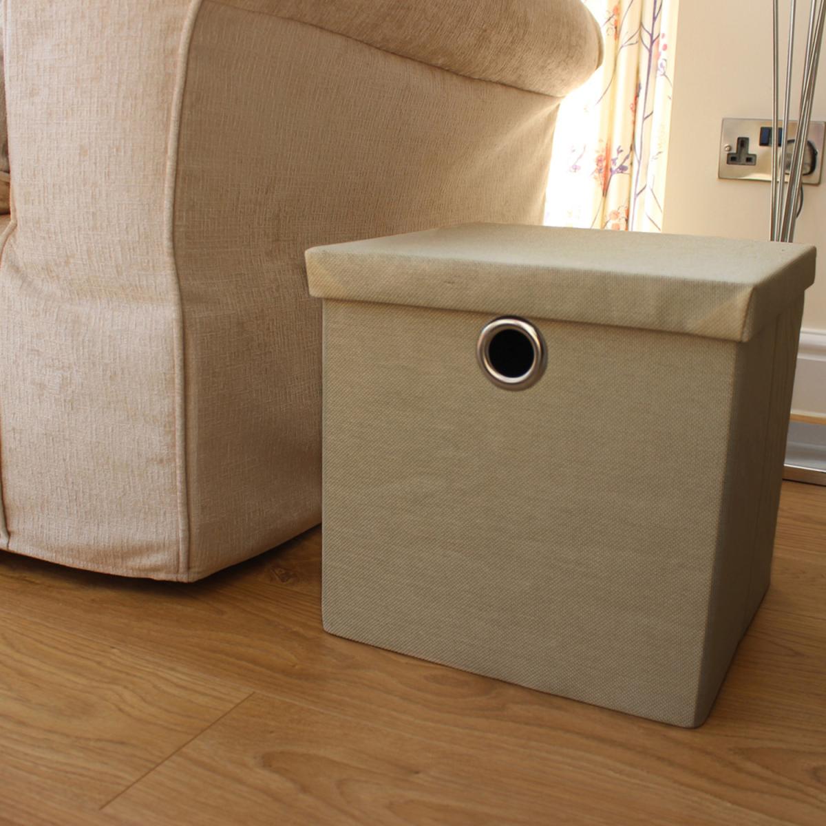 Cream Collapsible Lidded Fabric Storage Box with Chrome Handles