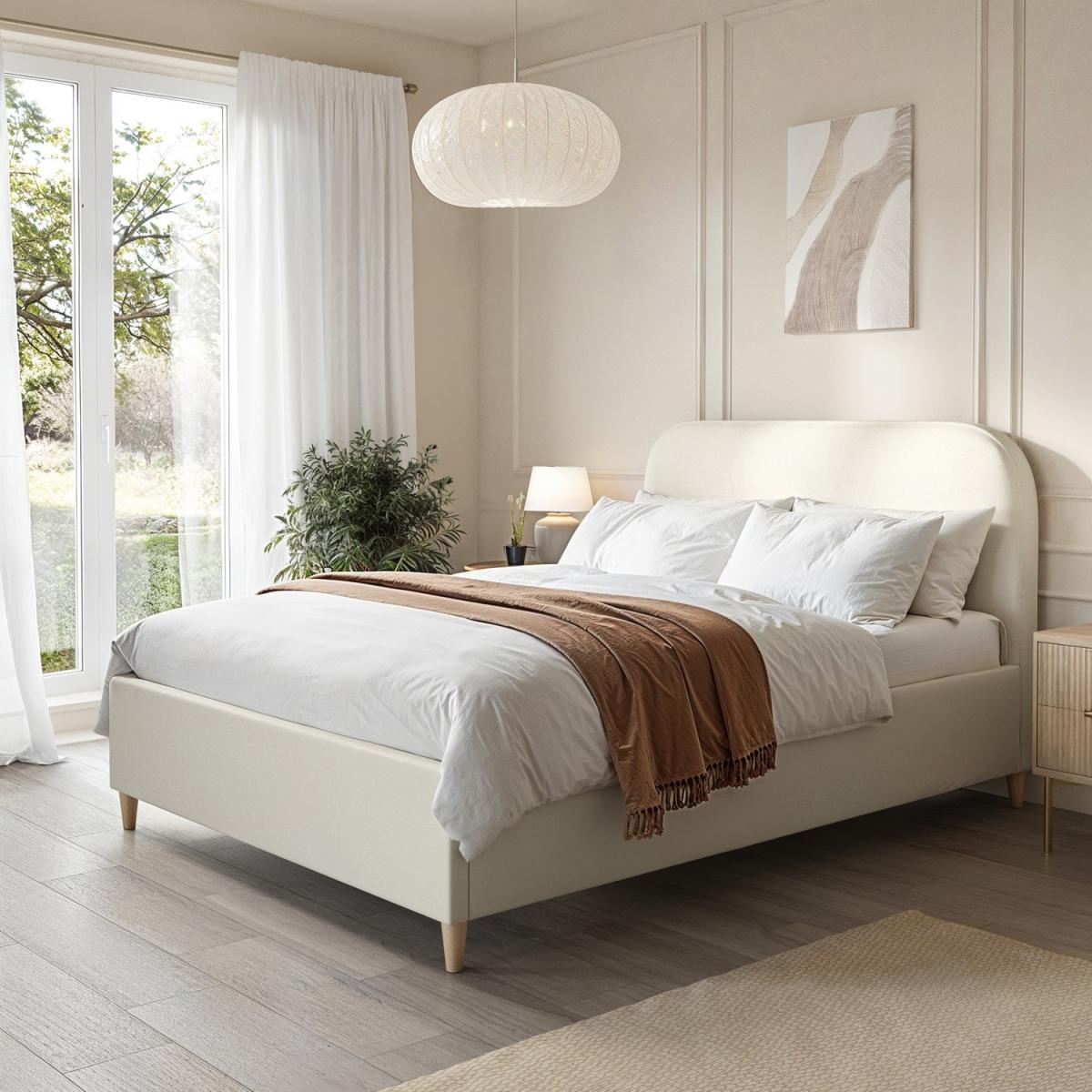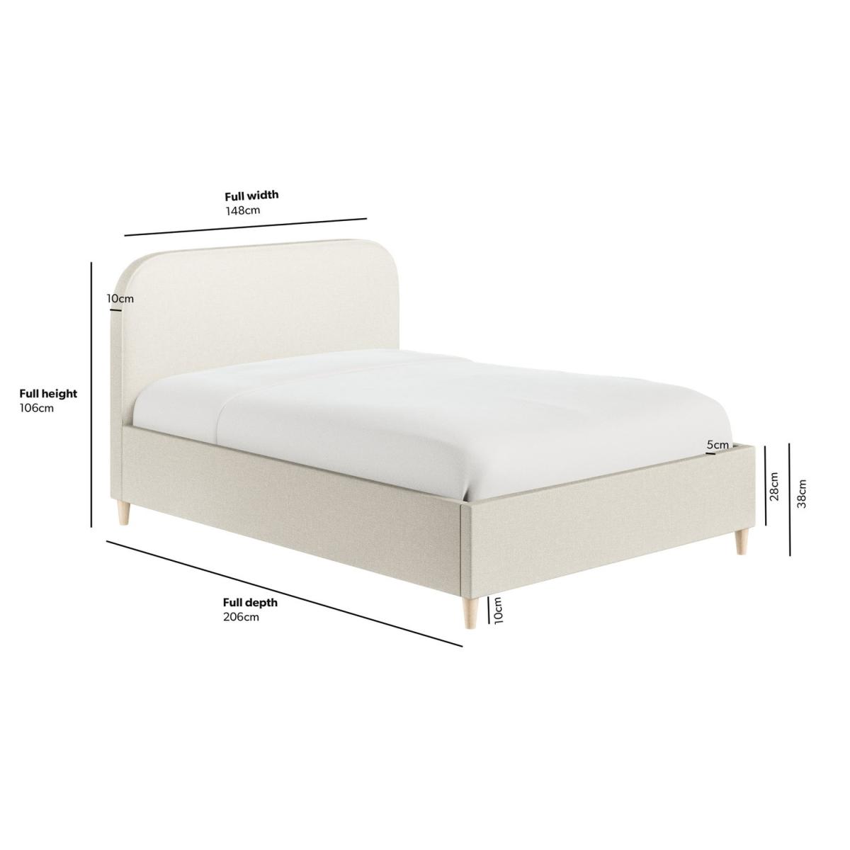 Adds a touch of sophistication and style to your bedroom. Provides strong support and stability while adding a touch of elegance to the overall design. Provides excellent support for the mattress, promoting airflow for added comfort and longevity. Soft and durable fabric in a versatile cream shade complements various interior styles. Crafted with a hardwood and metal internal frame for long-lasting durability. The Zara bed frame is perfect for lovers of minimalist style. This modern bed combines simplicity and comfort in one contemporary design. Featuring a thick padded headboard upholstered in durable, soft to touch cream fabric and stylish tapered legs. Built with a sturdy wooden frame and a sprung-slatted base supported by central legs, this bed ensures long-lasting durability and stability. This bed fits a UK standard double-size mattress.