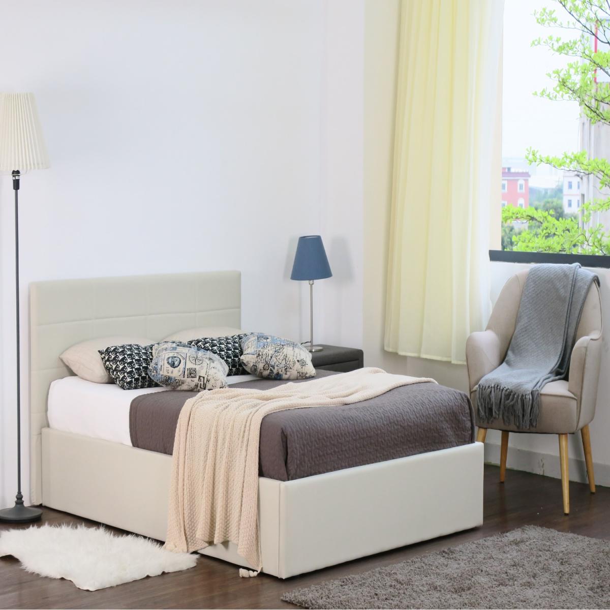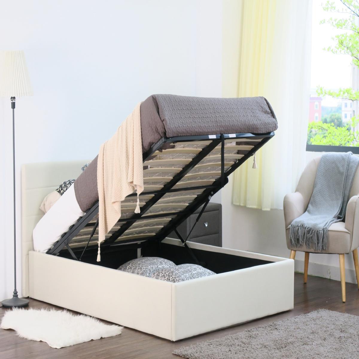 These stylish and modern linen upholstered Ottoman's add a modern presence to any bedroom. They feature a stylish square block upholstered headboard and with padded side rails and footboard. The headboard features colour coordinated modern buttoning detail. Available to purchase in Cream this fabric ottoman will suit any modern interior. The great aspect of these bed frames is they feature a gas lift mechanism, that lifts the mattress easily to reveal ample space for storage under the bed. The mattress is supported on a solid beech slats framework.