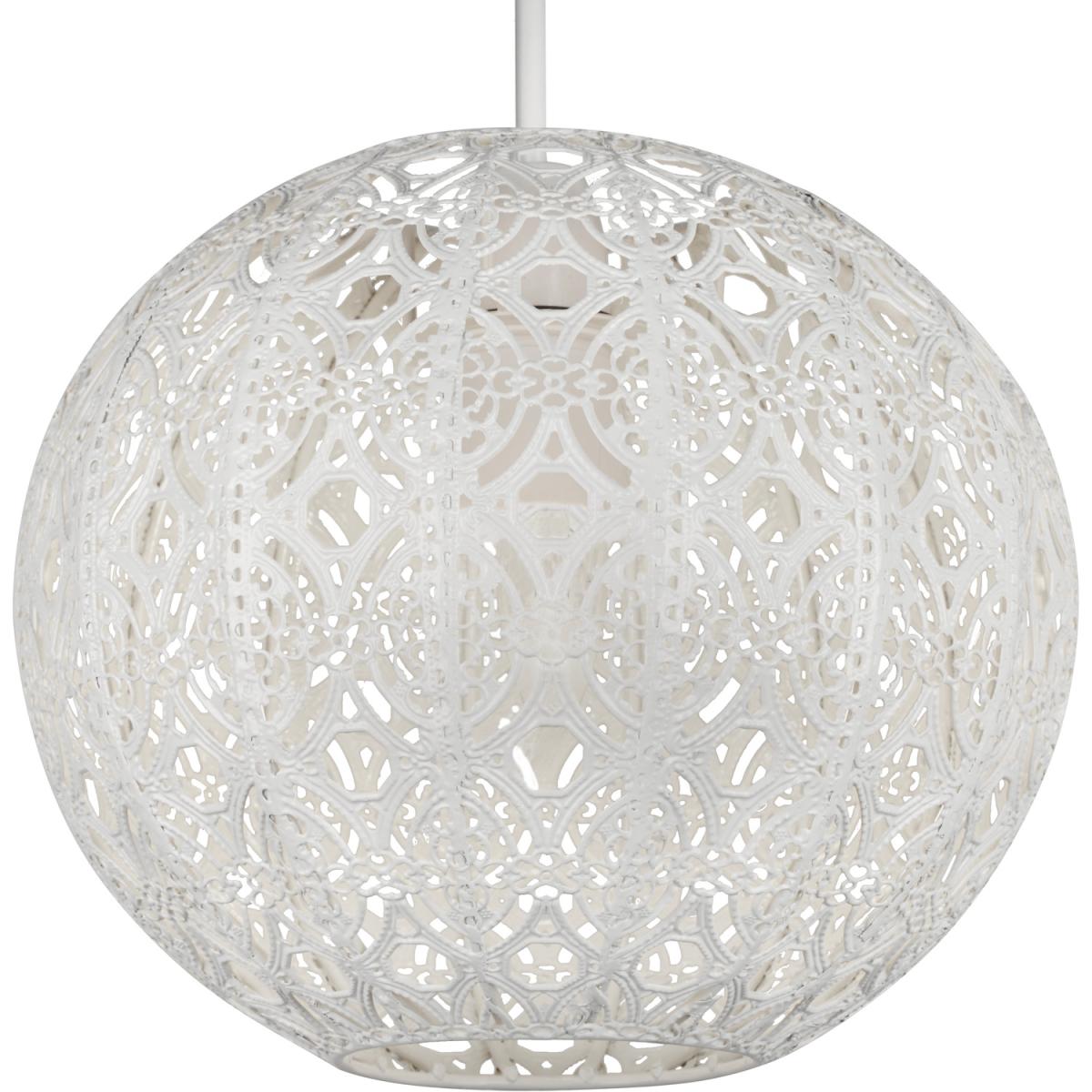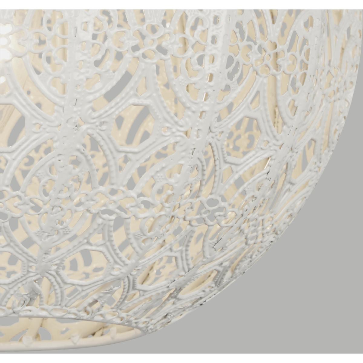 The beautiful Fretwork globe shade has a cream mild steel finish that gives off a warm and inviting look in your home. Use this decorative piece in a bedroom or living room.