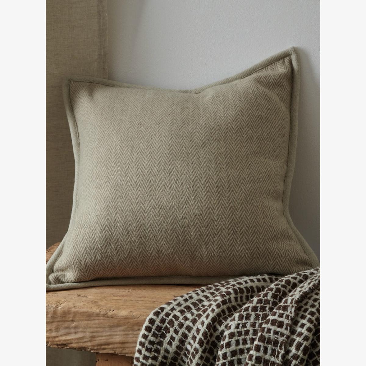 I love this cushion for its classic herringbone pattern and versatile neutral tone, making it easy to blend into a range of interiors. It works particularly well in cosy living rooms or understated bedroom schemes, adding texture without overwhelming the space. When styling, try mixing it with other tactile fabrics like linen or velvet for layered depth, or pair it with darker or richer tones to create contrast. Its 50x50cm size keeps it adaptable, whether on a sofa or bed, and the wool blend adds a bit of warmth and durability, making it a practical choice for everyday use.