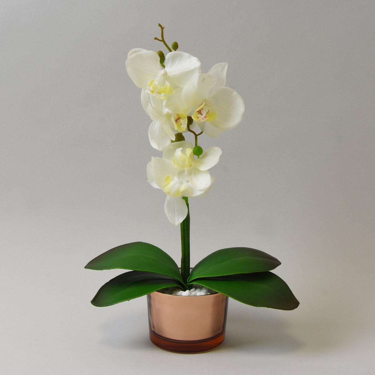 Cream Orchid in Gold Glass Pot 28cm Cream